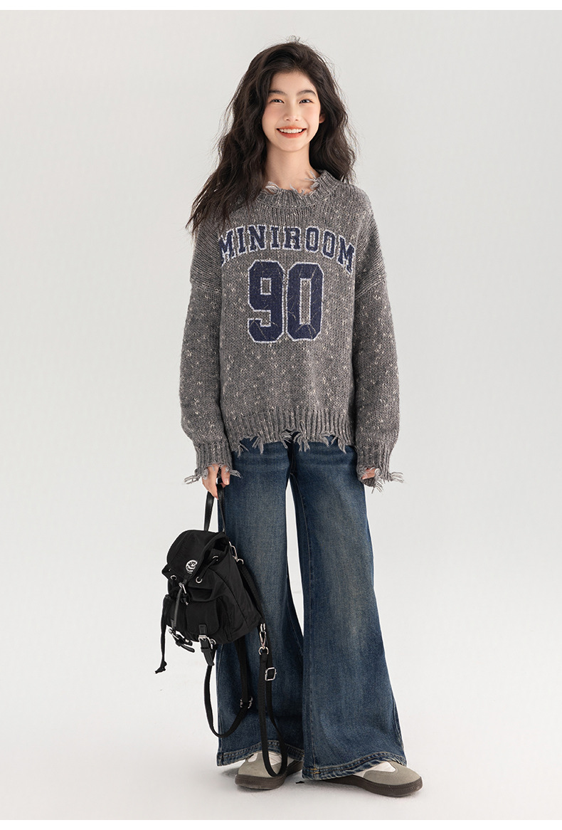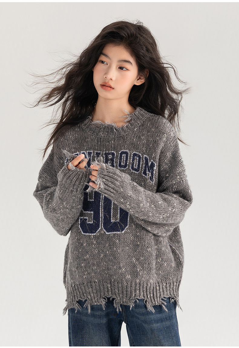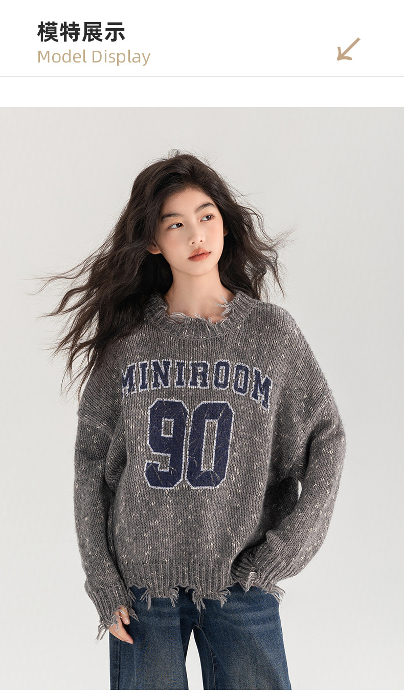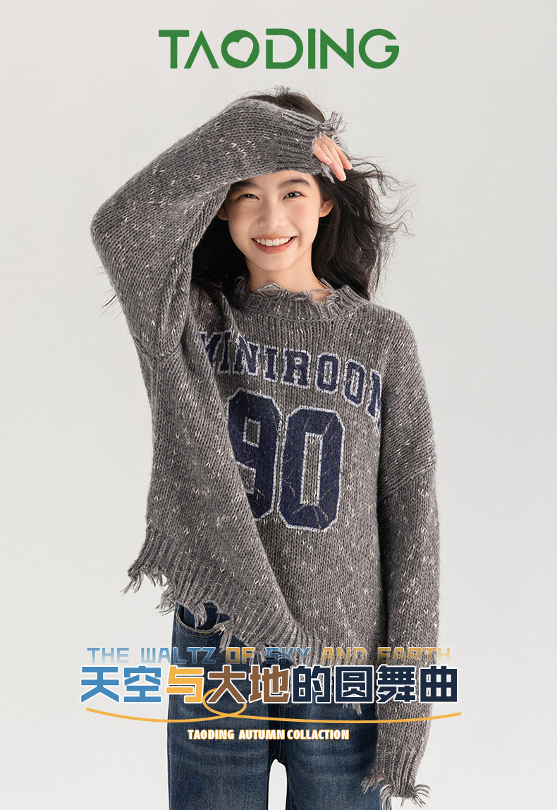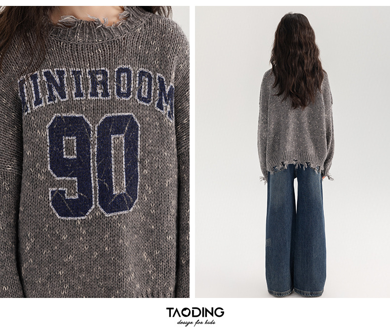 Amoy 여성 스웨터 가을과 겨울 새로운 패션 디지털 스웨터 큰 어린이 가장자리 깨진 양모 외국 스타일스토어 가기