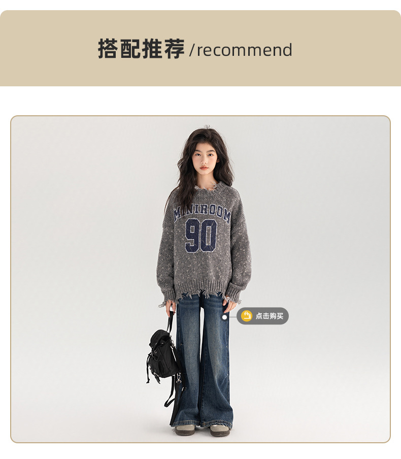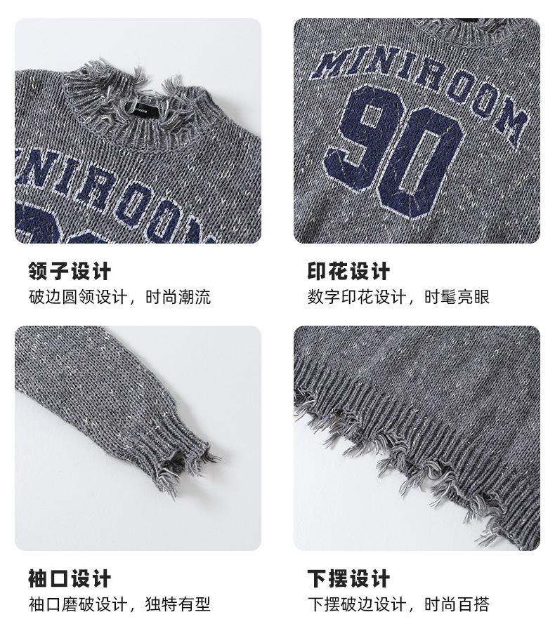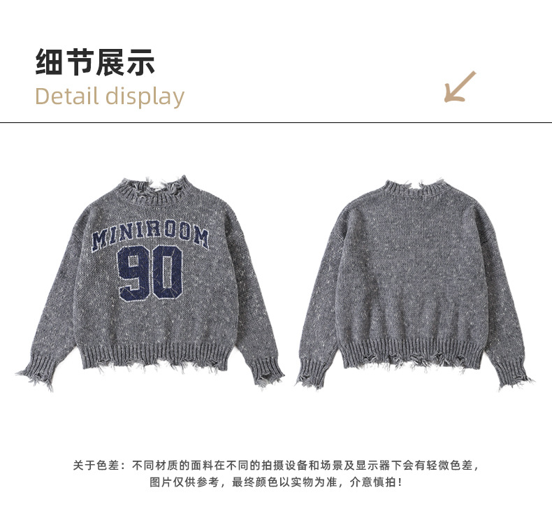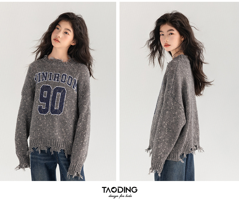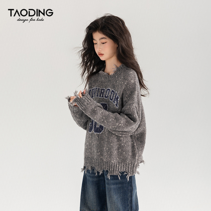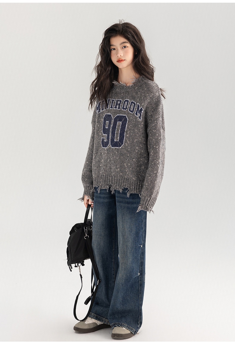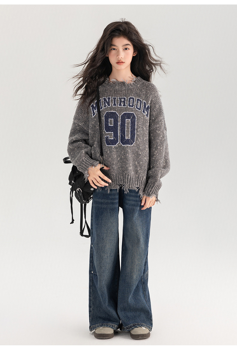 Amoy 여성 스웨터 가을과 겨울 새로운 패션 디지털 스웨터 큰 어린이 가장자리 깨진 양모 외국 스타일스토어 가기