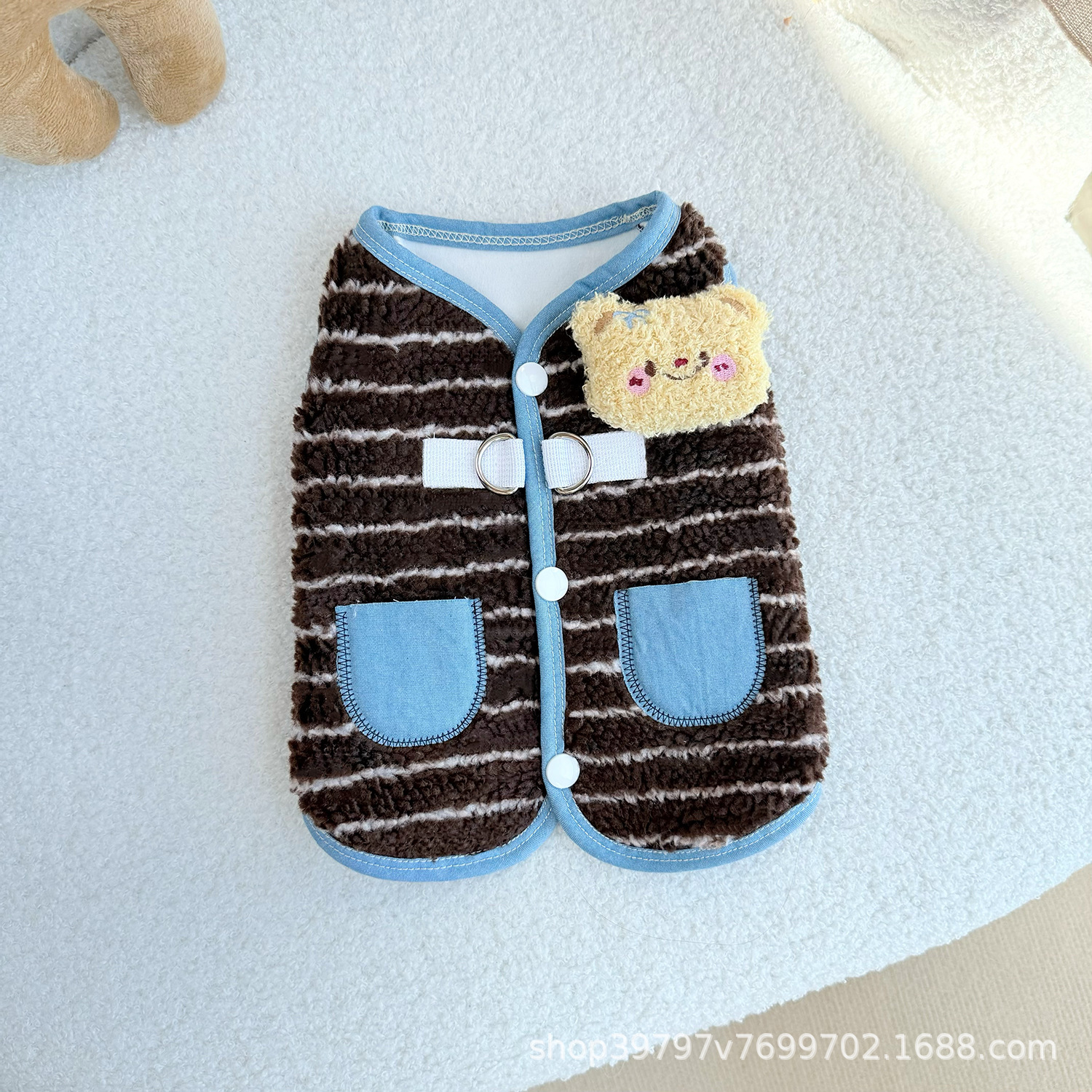 가을/겨울 애완 동물 고양이 개 개 옷 3 차원 곰 견인 조끼 기모 Fadou 두꺼운 따뜻한 테디 베어