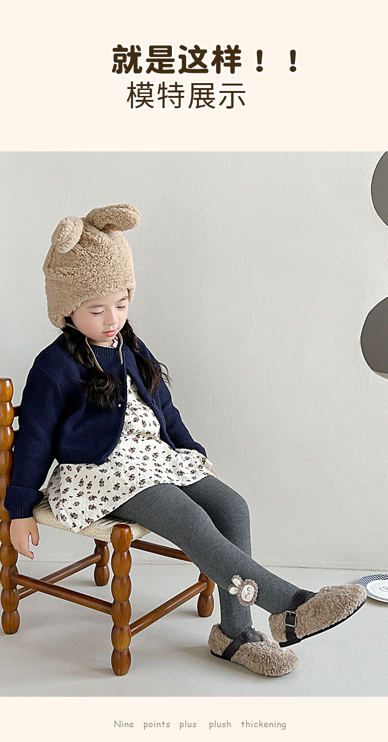 겨울 새 기모 두꺼운 어린이 팬티 스타킹 토끼 수직 줄무늬 소녀 레깅스 오픈 파일 아기 따뜻한 양말스토어 가기