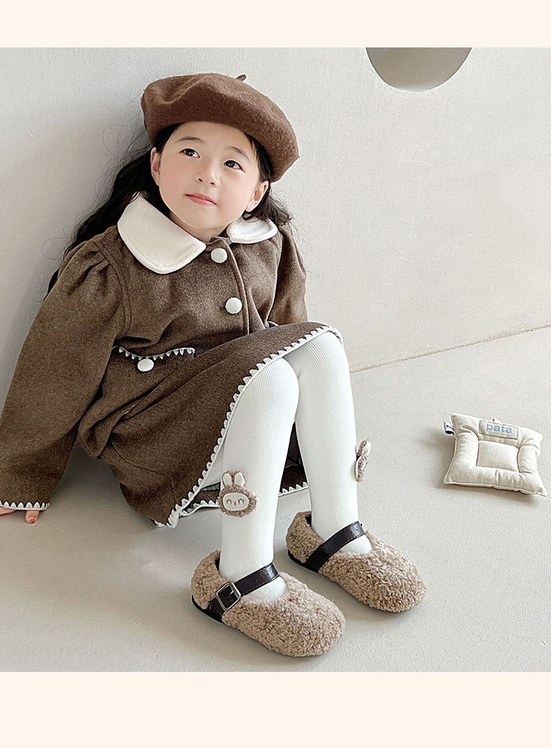겨울 새 기모 두꺼운 어린이 팬티 스타킹 토끼 수직 줄무늬 소녀 레깅스 오픈 파일 아기 따뜻한 양말