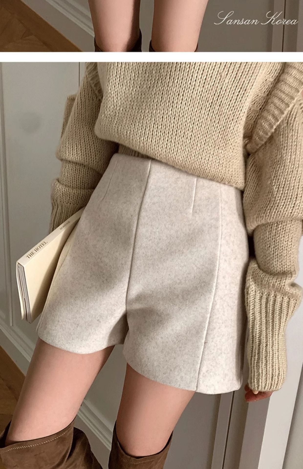 겨울 모직 반바지 여성용 가을 겨울 2025 신상 하이웨이스트 루즈핏 A라인 팬츠 작은 키 여성을 위한 루즈핏 캐주얼 와이드 팬츠스토어 가기