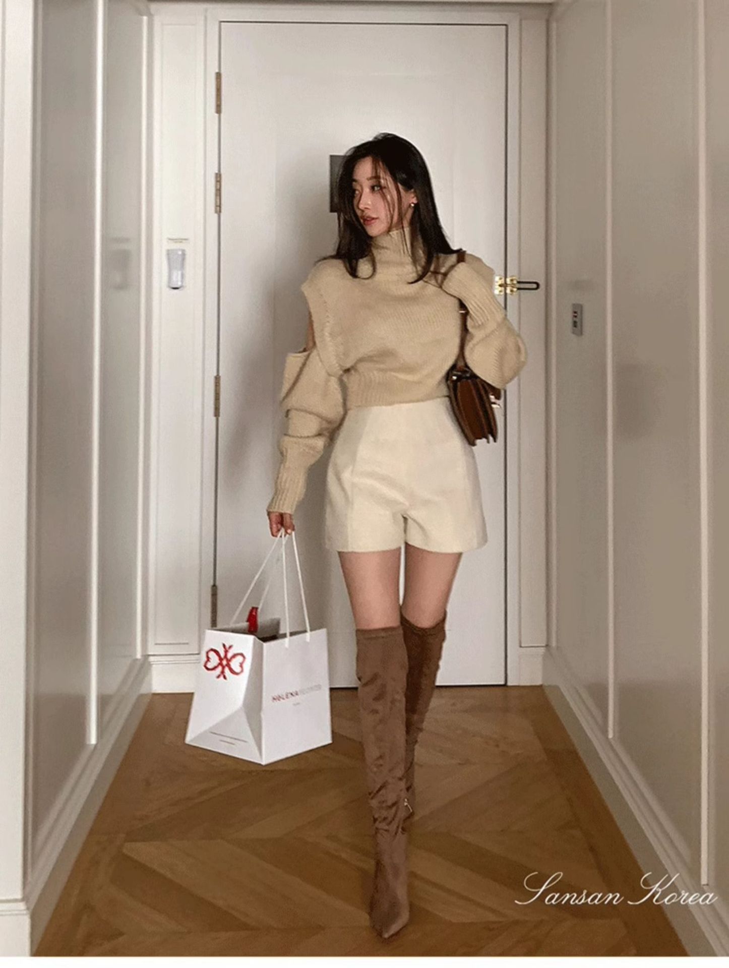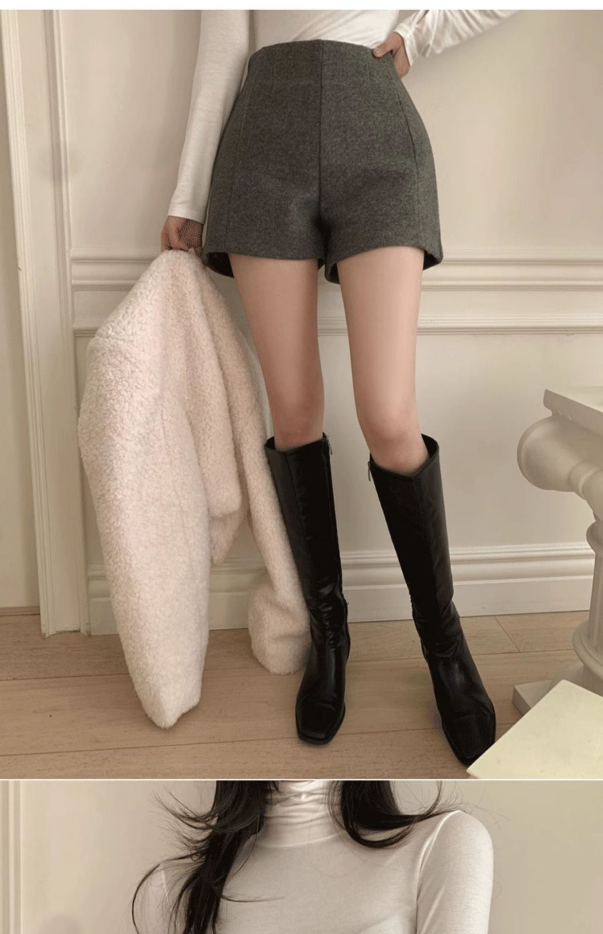 겨울 모직 반바지 여성용 가을 겨울 2025 신상 하이웨이스트 루즈핏 A라인 팬츠 작은 키 여성을 위한 루즈핏 캐주얼 와이드 팬츠