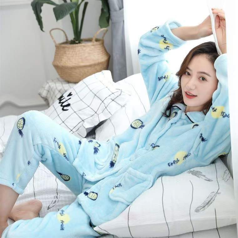 가을과 겨울 플란넬 파자마 여성의 기모 따뜻한 잠옷 여성의 겨울 긴 소매 산호 양털 여성용 홈 의류 세트스토어 가기