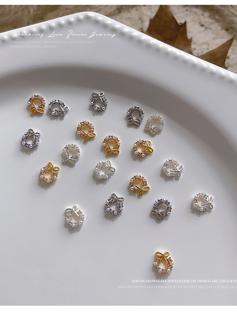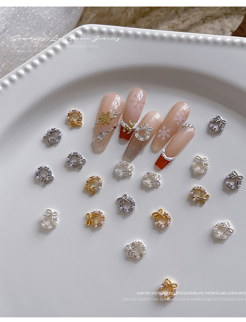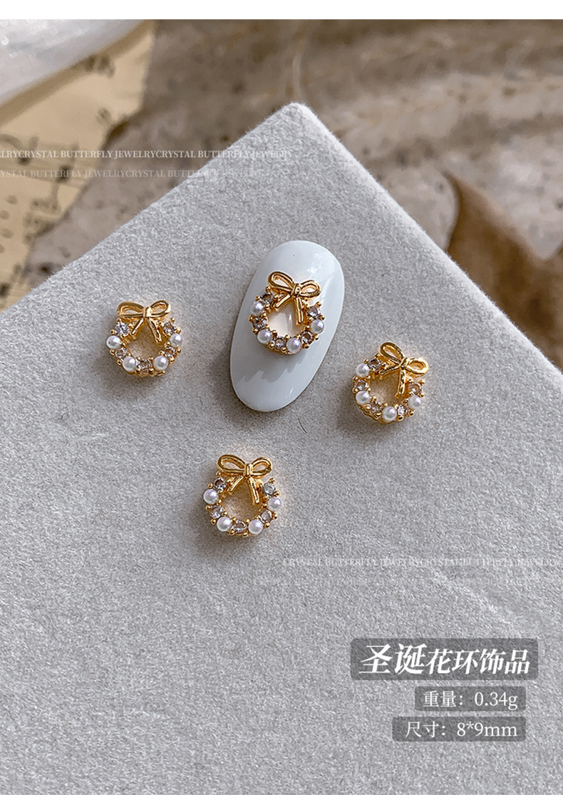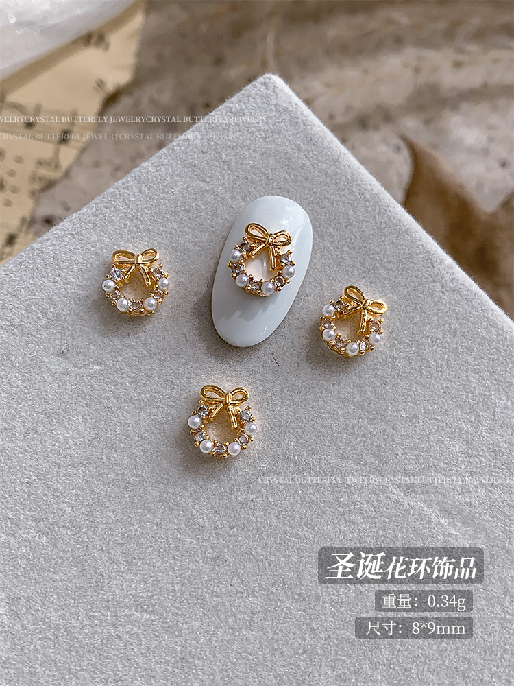 사이버 연예인 크리스마스 화환 네일 아트 쥬얼리 진주 활 절묘한 달콤한 빛 럭셔리 착용 갑옷 장식 도매스토어 가기
