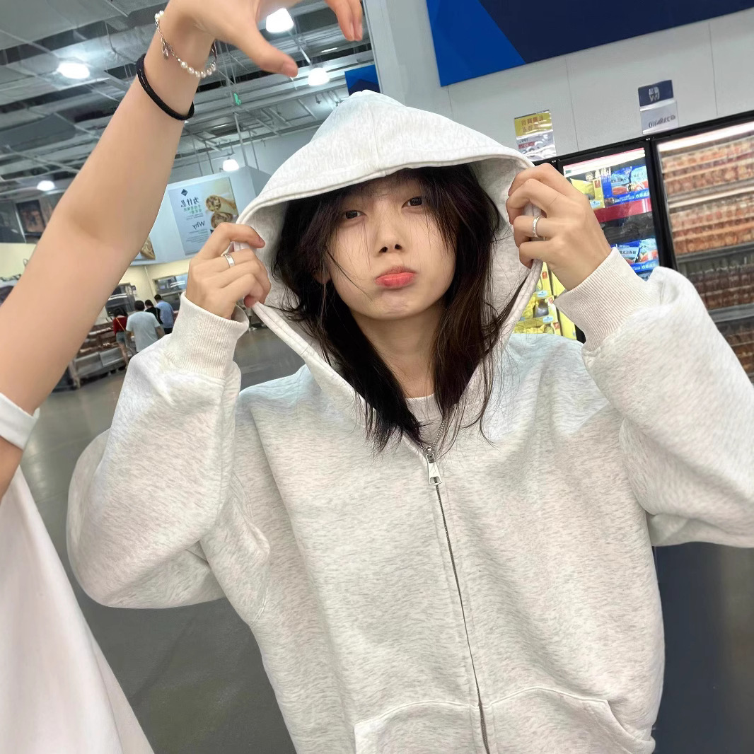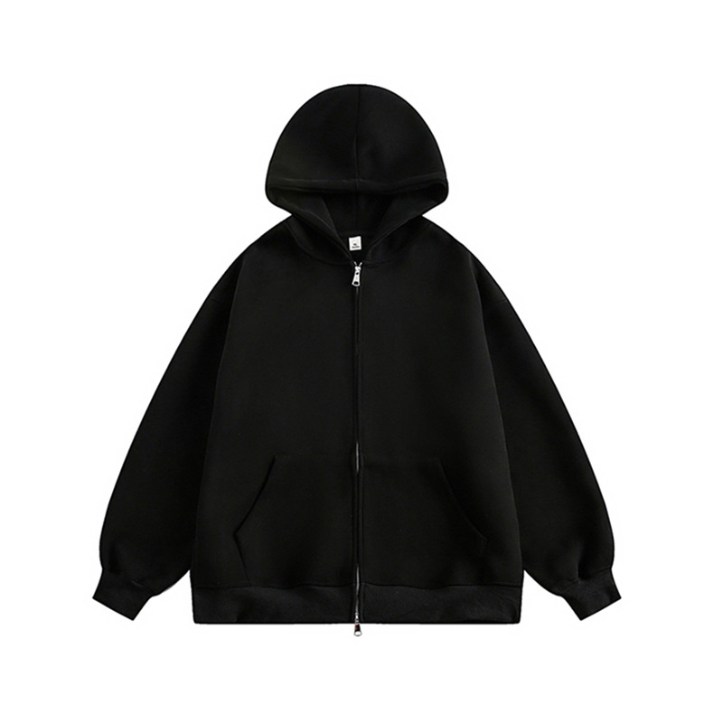헤비 솔리드 컬러 후드 스웨터 남성과 여성의 겨울 기모 하이 스트리트 커플의 카디건 자켓 루즈 더블 지퍼 탑스토어 가기