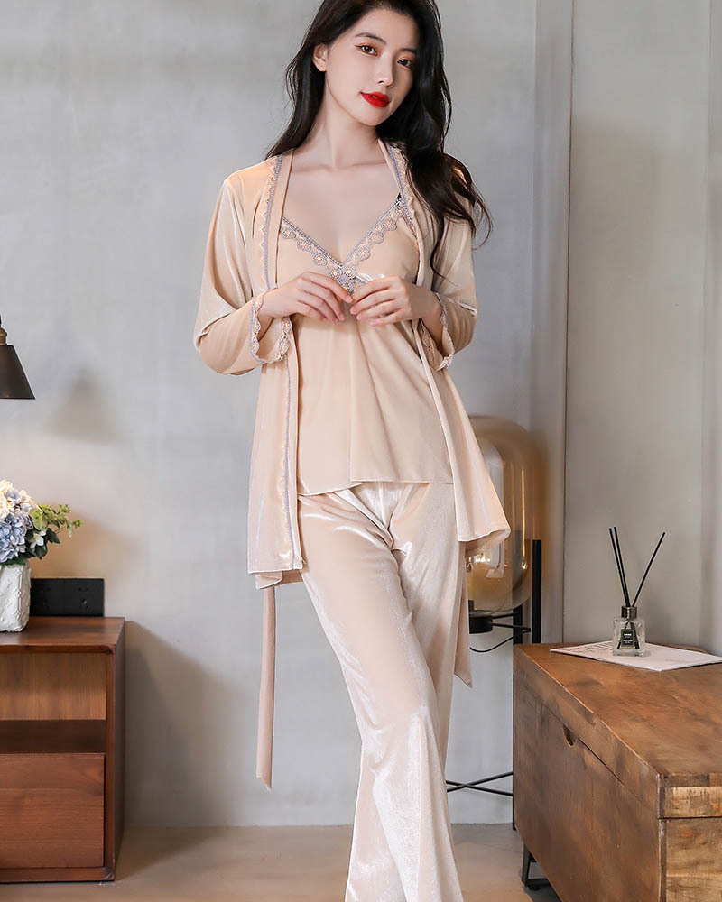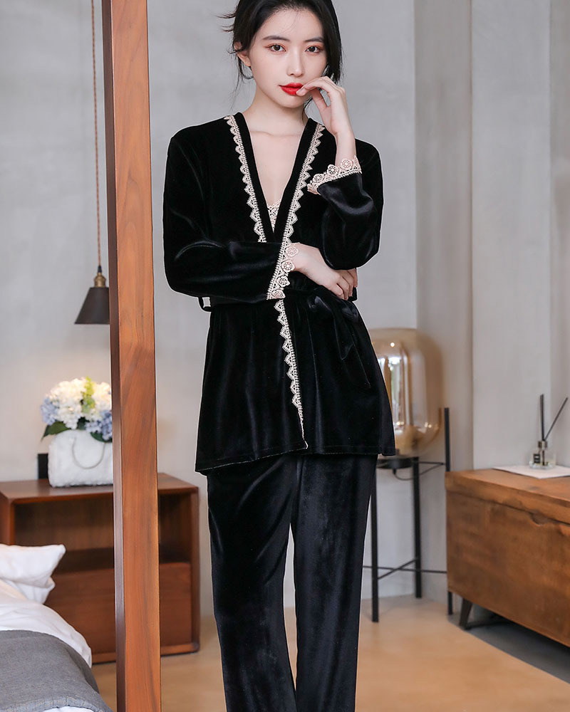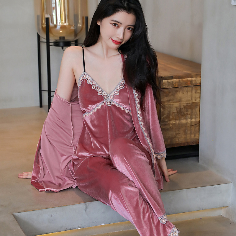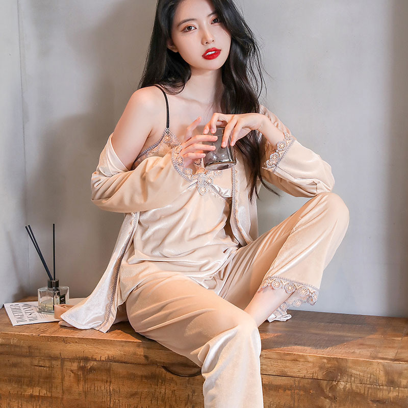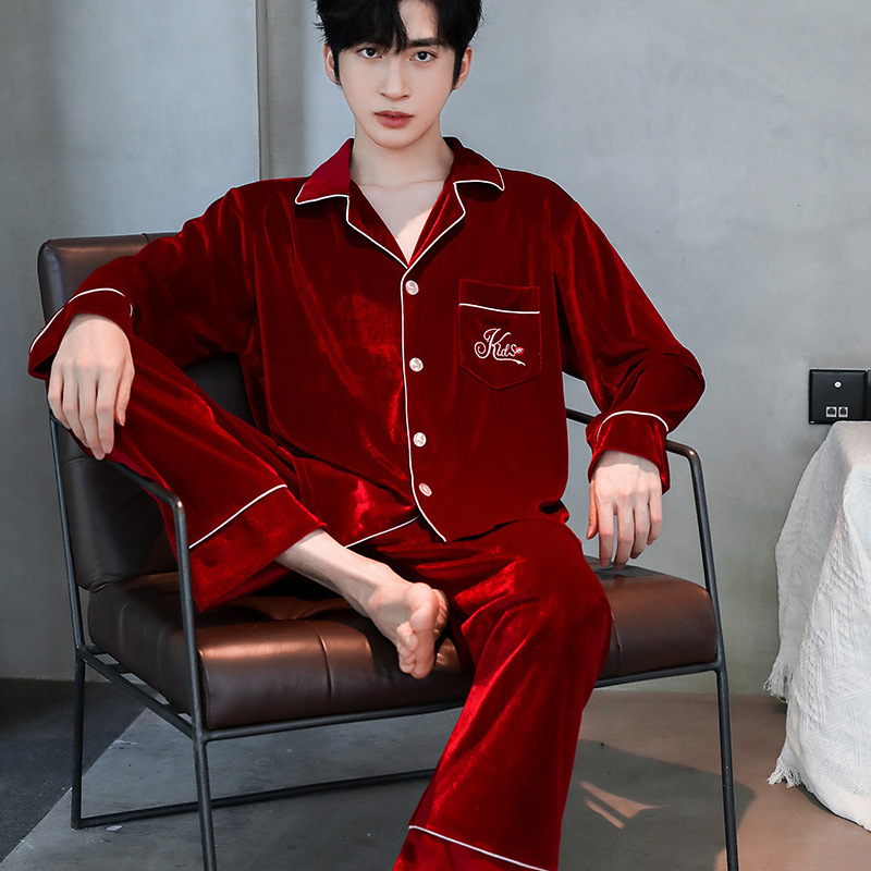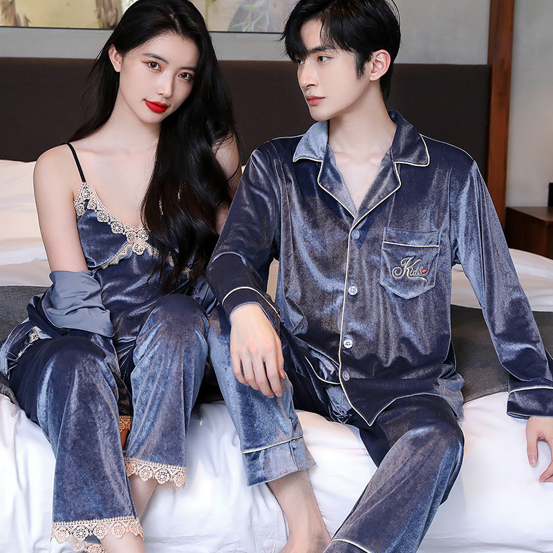 2025년 신상 가을 겨울 커플 잠옷 여성 긴팔 골드 벨벳 캐주얼 남성 빅사이즈 홈웨어 세트 외출 가능스토어 가기