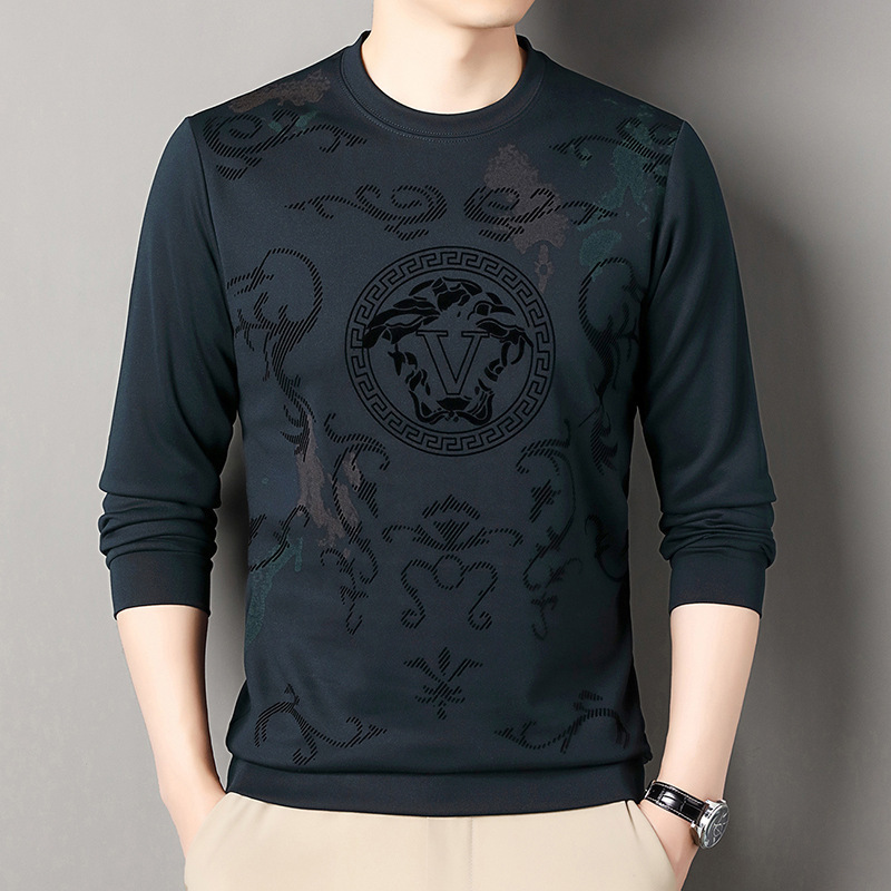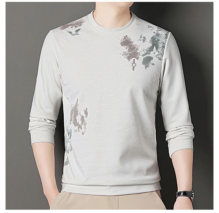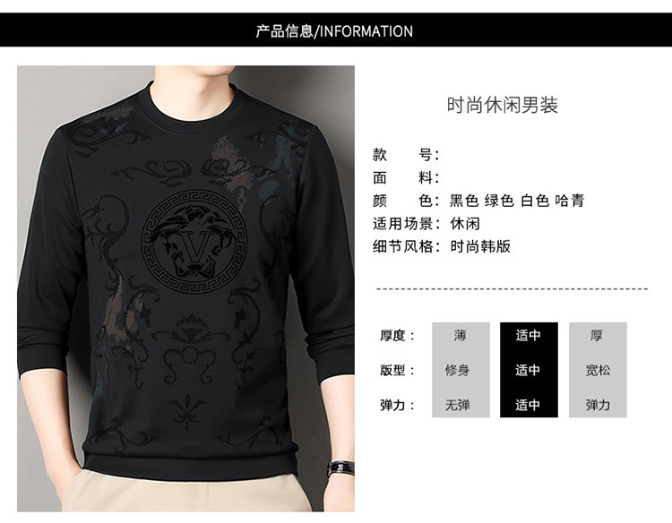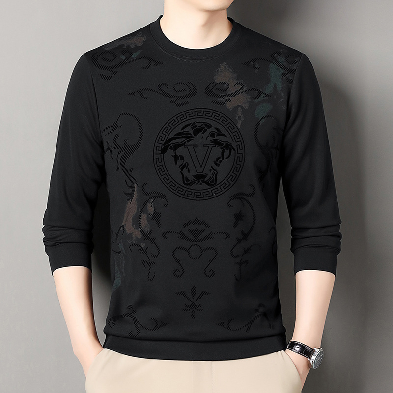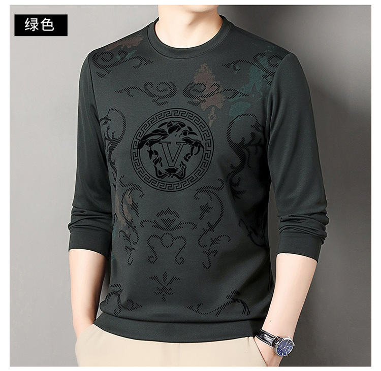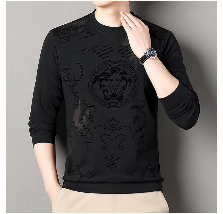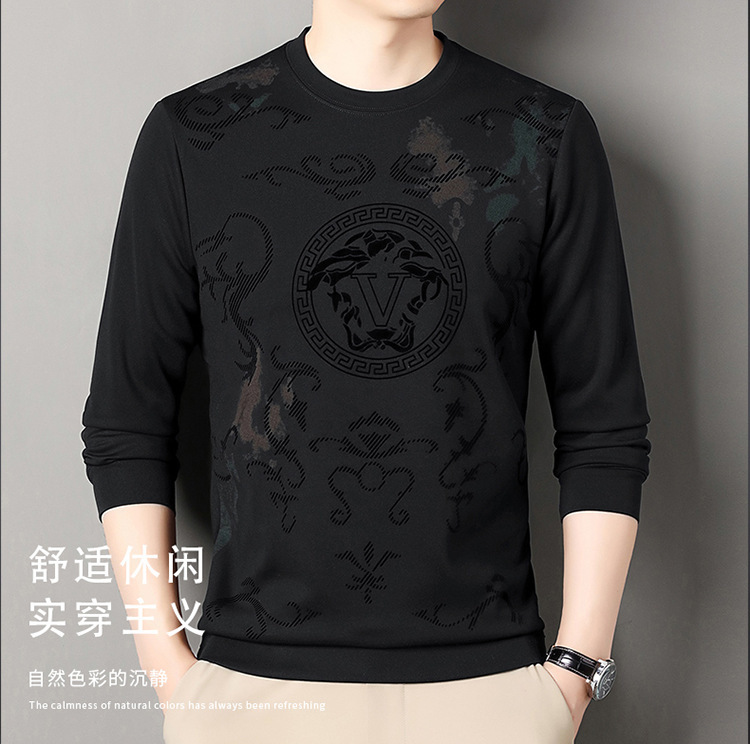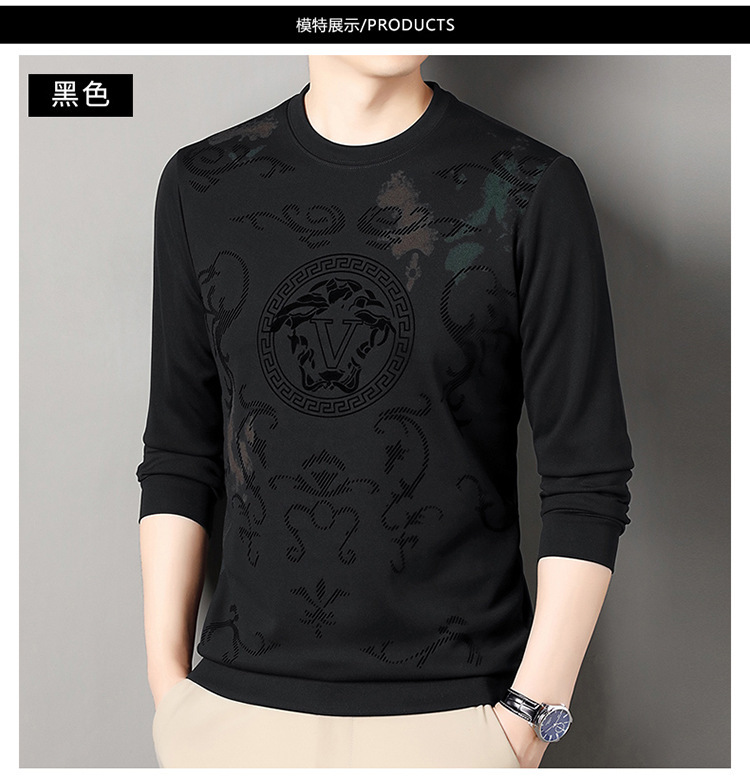 男士大牌高档桑蚕丝圆领长袖卫衣男士秋季新款含羊毛打底衫休闲T