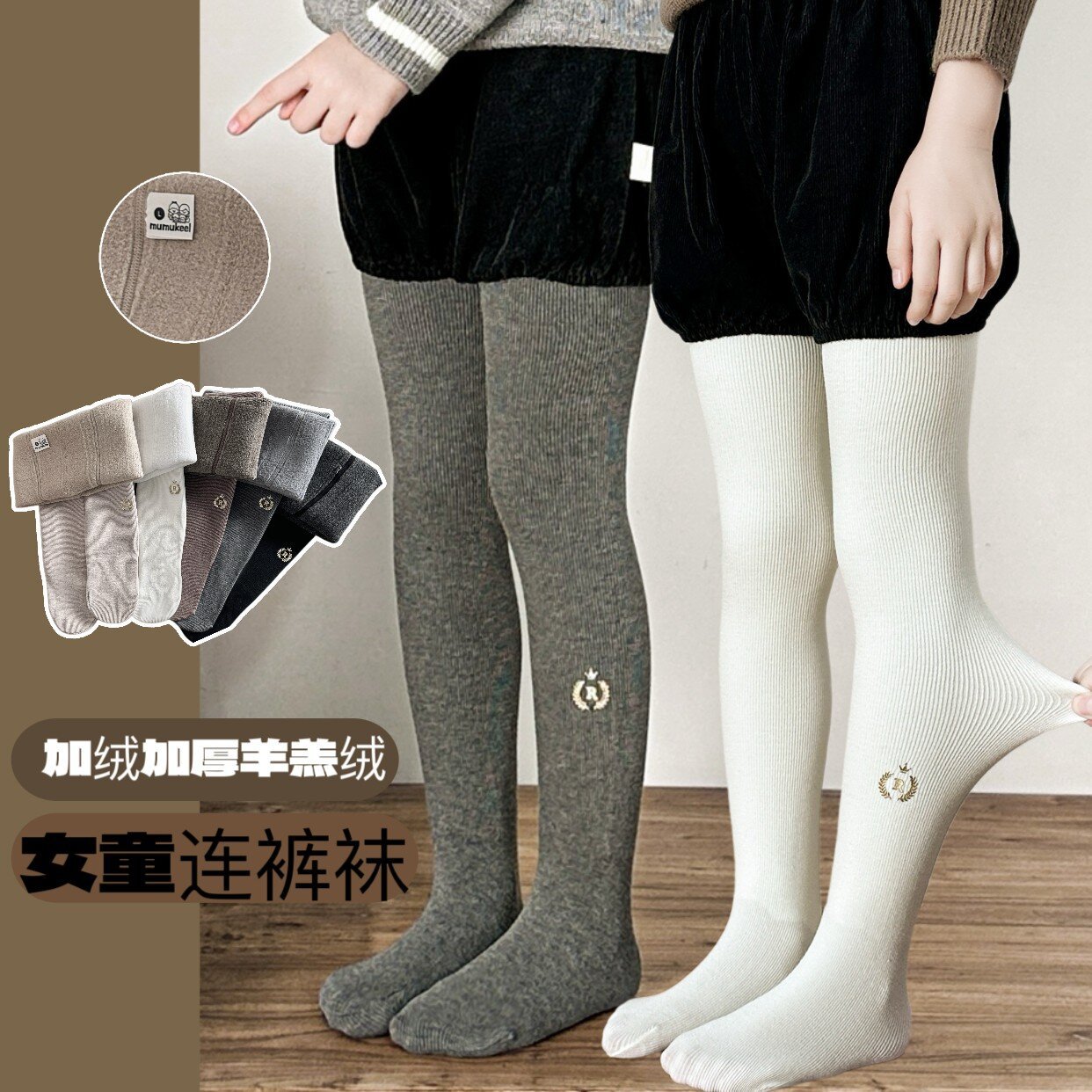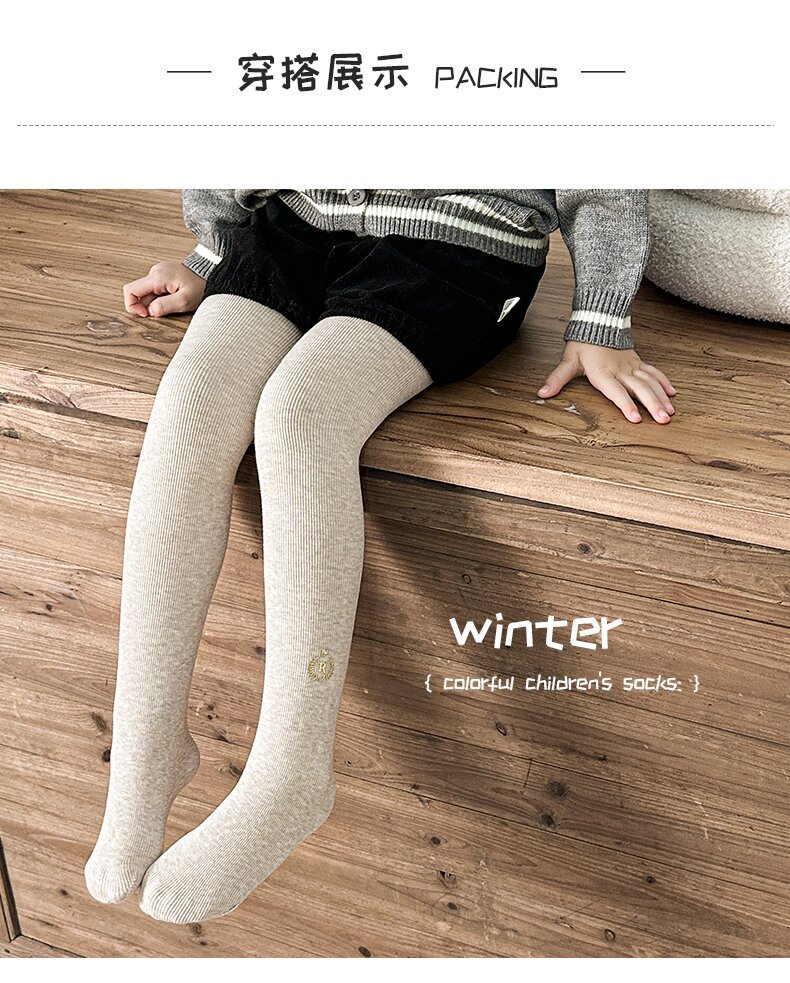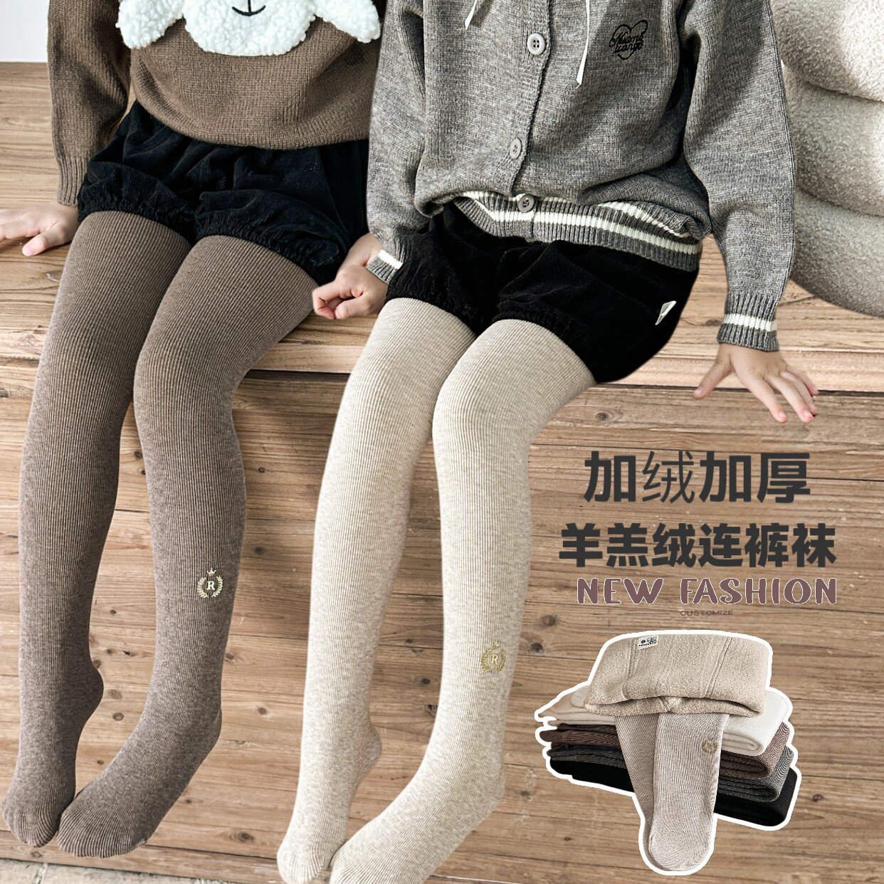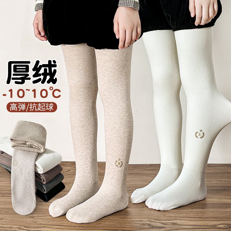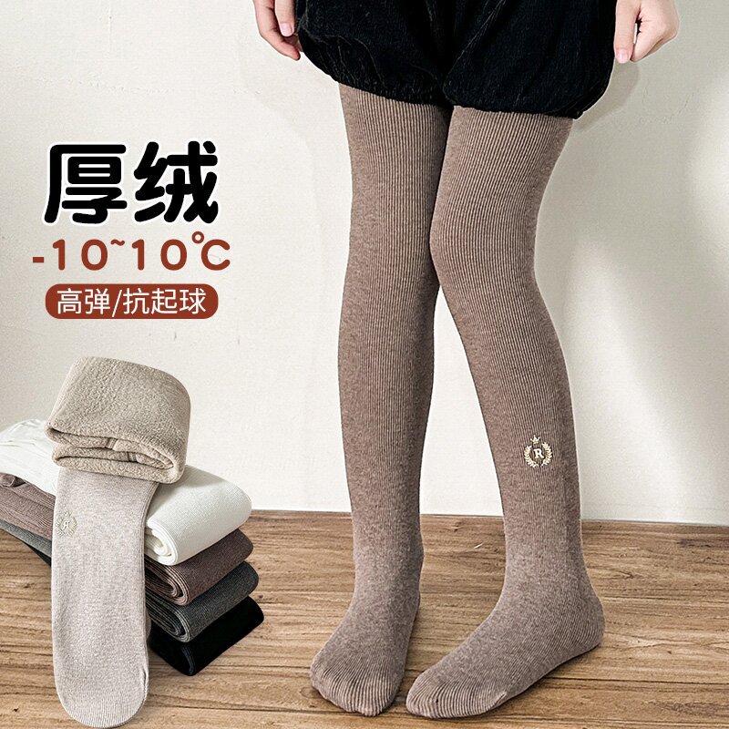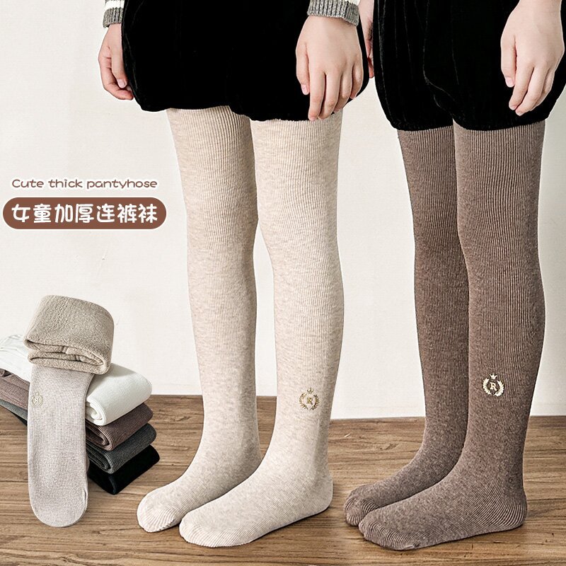 겨울 어린이의 새로운 업그레이드 된 안티 필링 기모 두꺼운 레깅스 걸스 얇은 수직 스트립 크라운 B-라벨 바지
