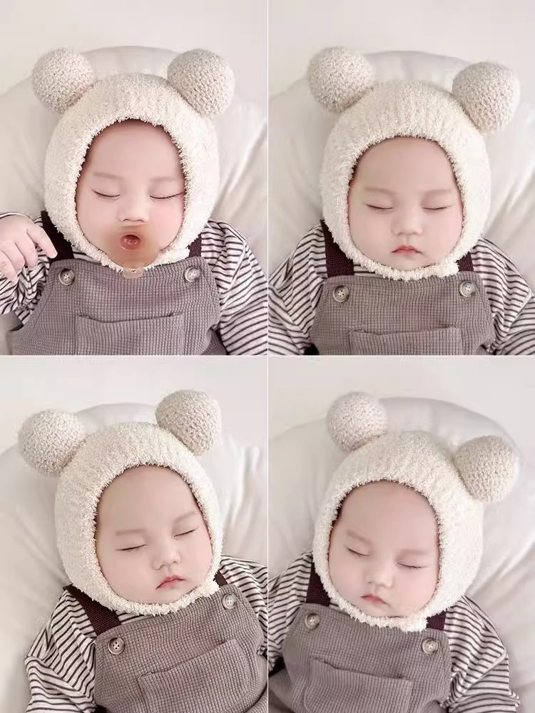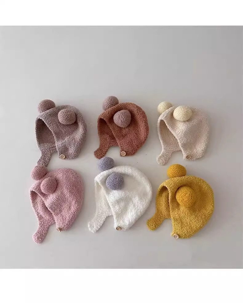아기 모자 가을과 겨울 신생아 아기 귀 보호 모자 면 귀여운 소년과 소녀 아기 니트 봉제 모자 큰 아이들