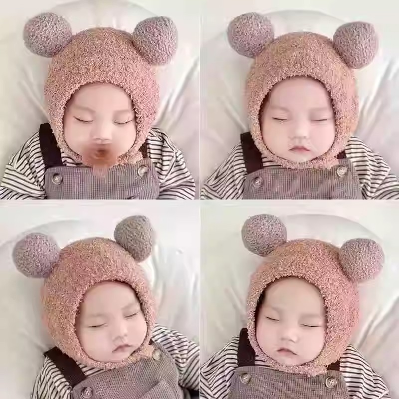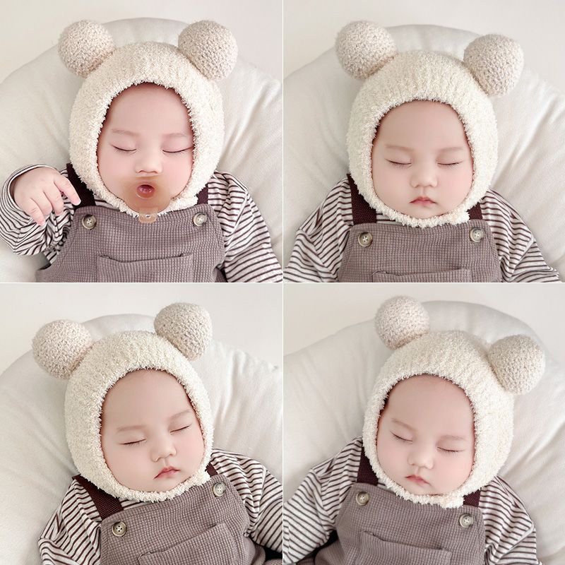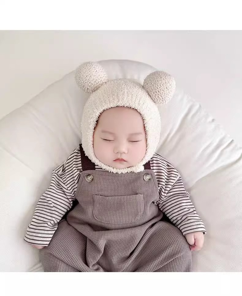 아기 모자 가을과 겨울 신생아 아기 귀 보호 모자 면 귀여운 소년과 소녀 아기 니트 봉제 모자 큰 아이들스토어 가기