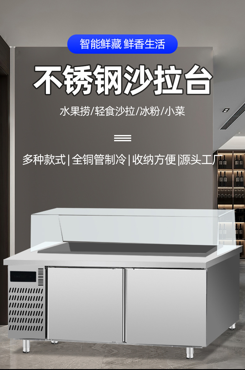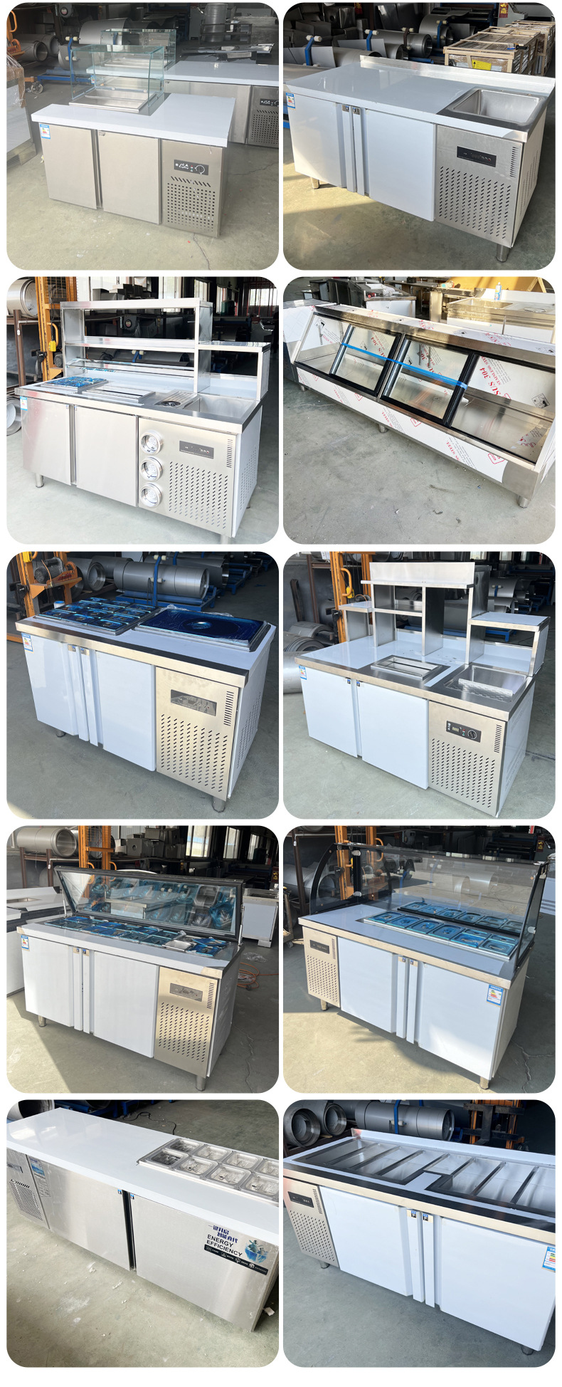 유리 커버 스테인레스 스틸 샐러드 테이블 냉동 냉장고 일품 캐비닛 과일 생선 야채 디저트 샐러드 테이블 디스플레이 캐비닛