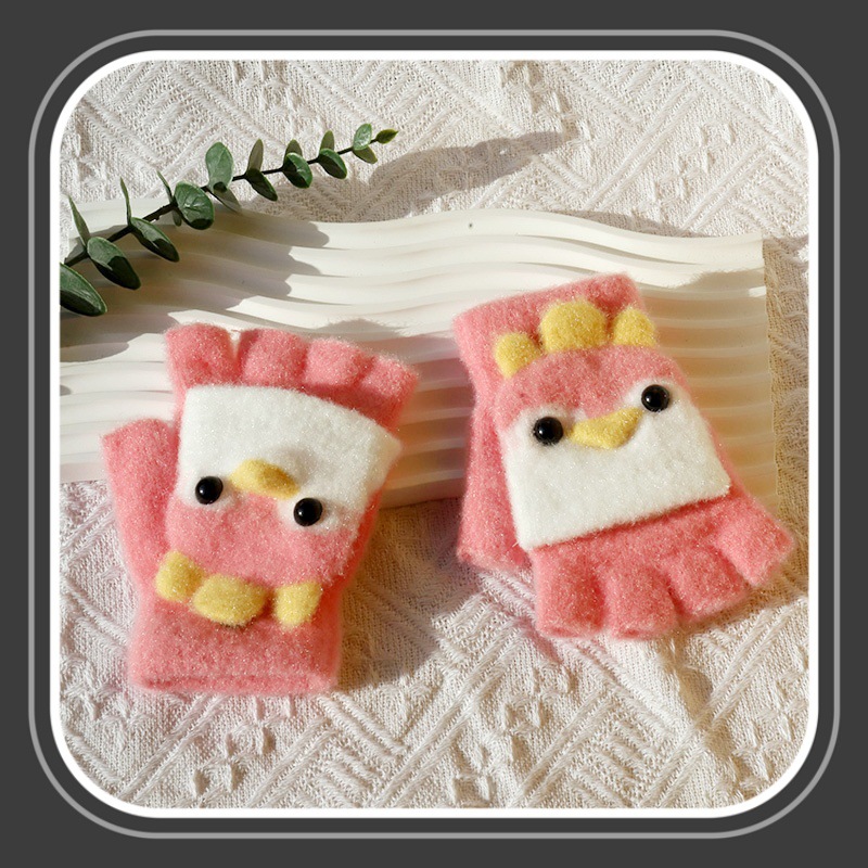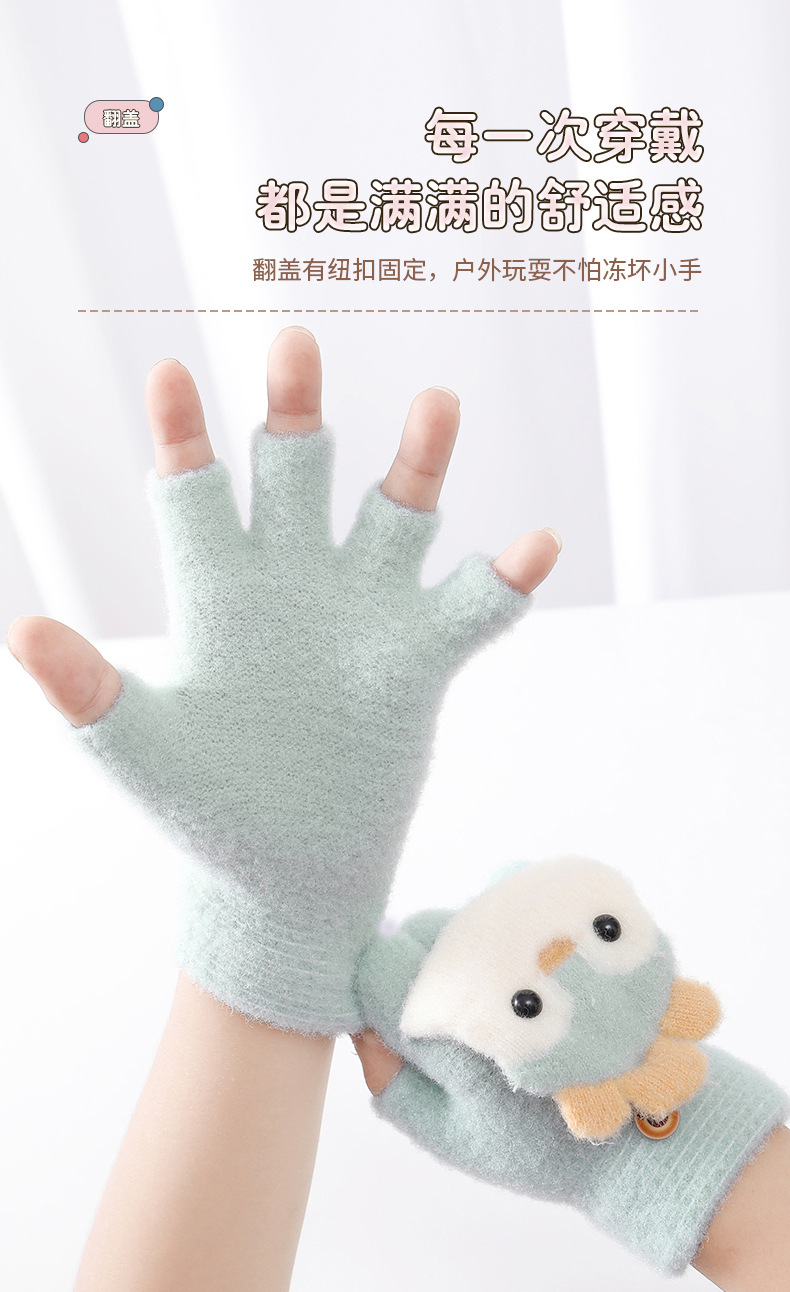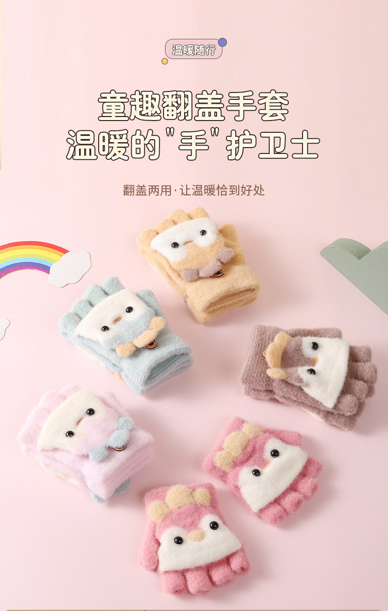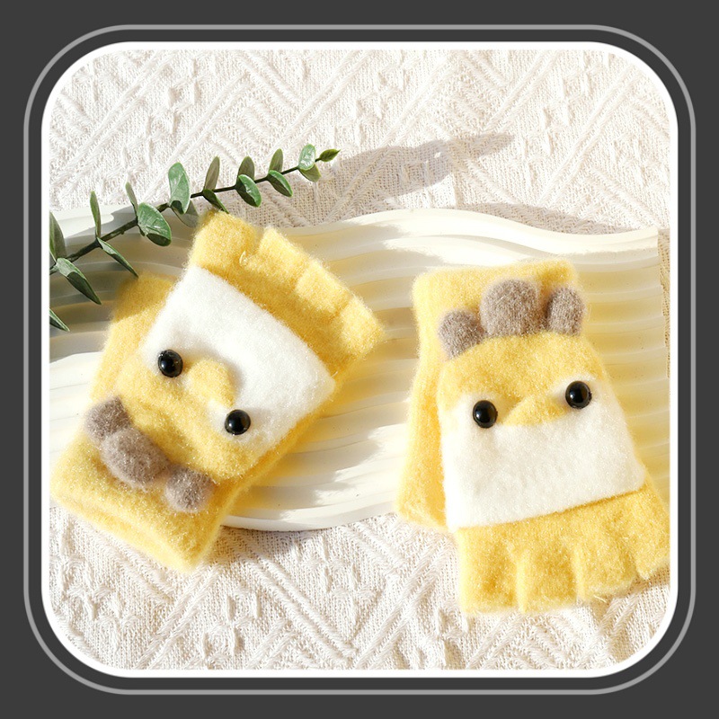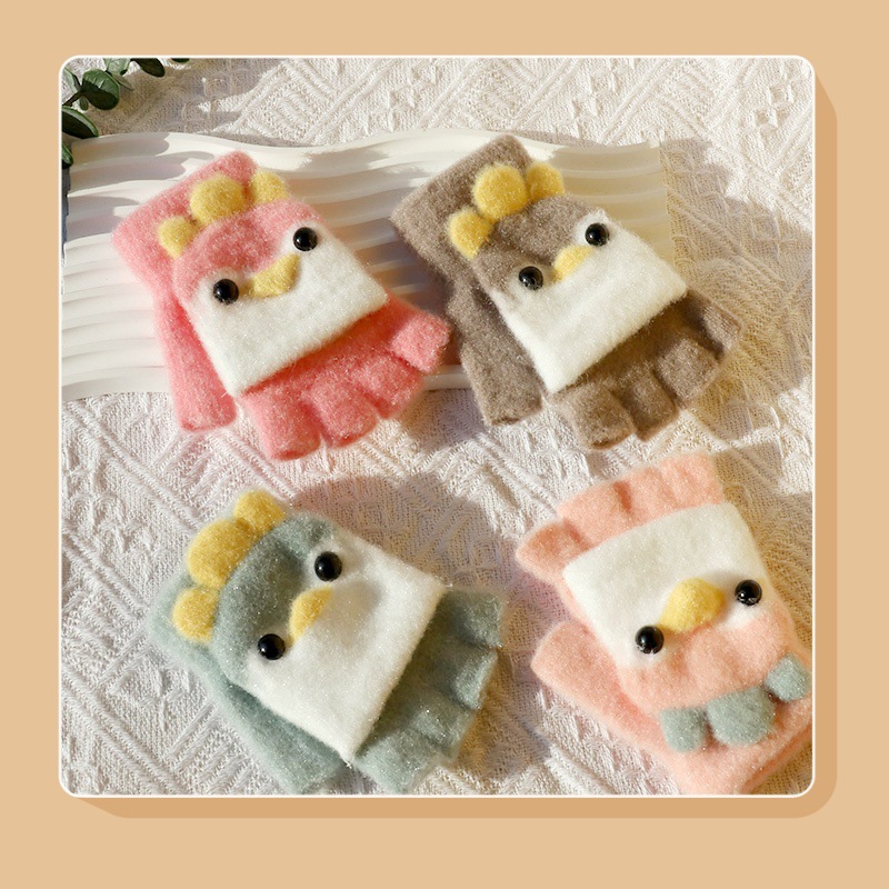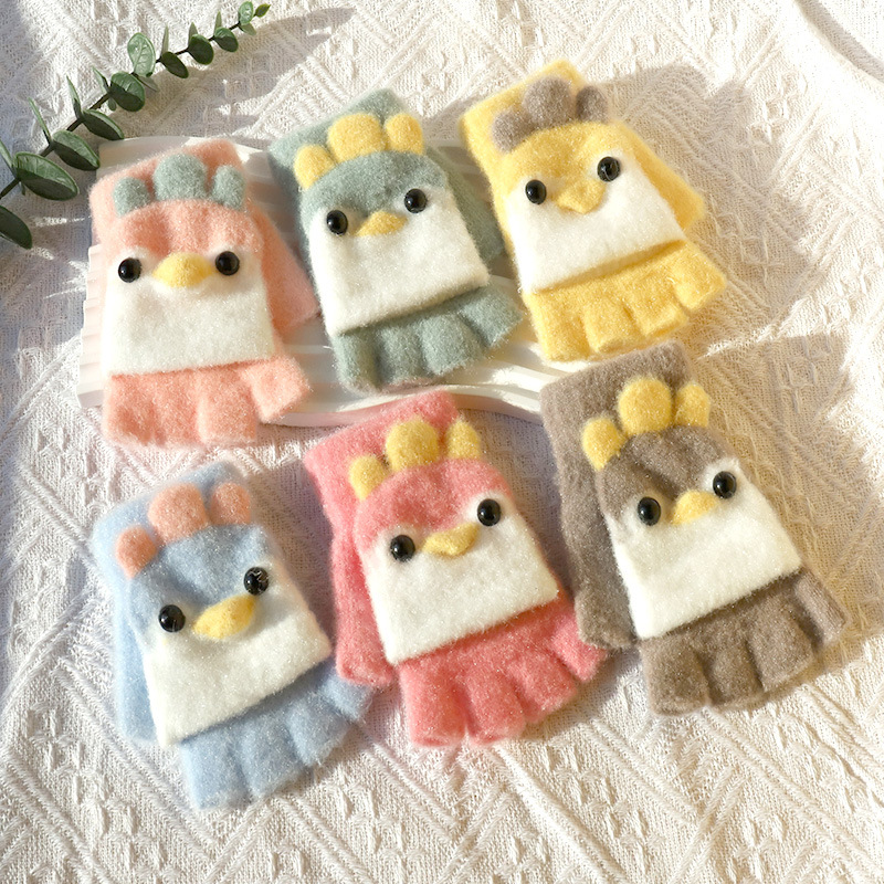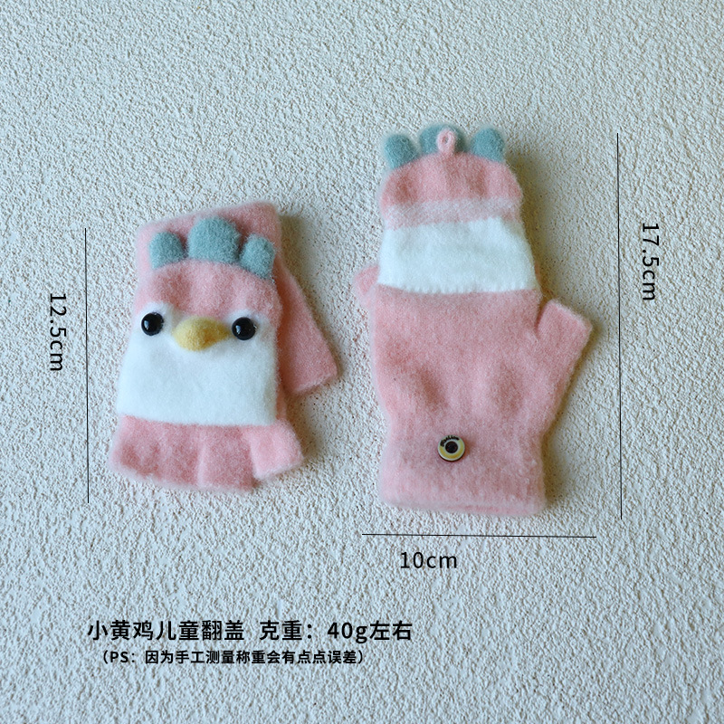 어린이 작은 노란색 치킨 플립 장갑 가을과 겨울 반 손가락 따뜻한 소년 소녀 니트 이중 사용 장갑 도매