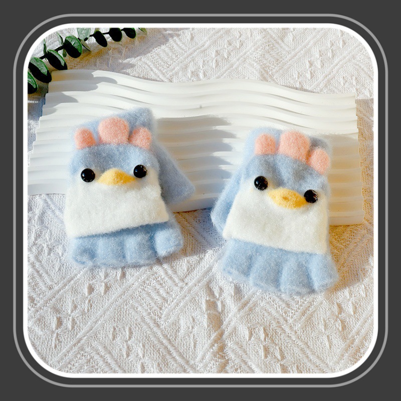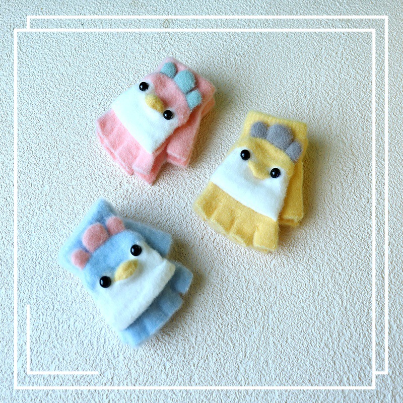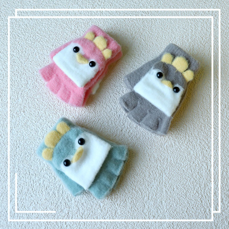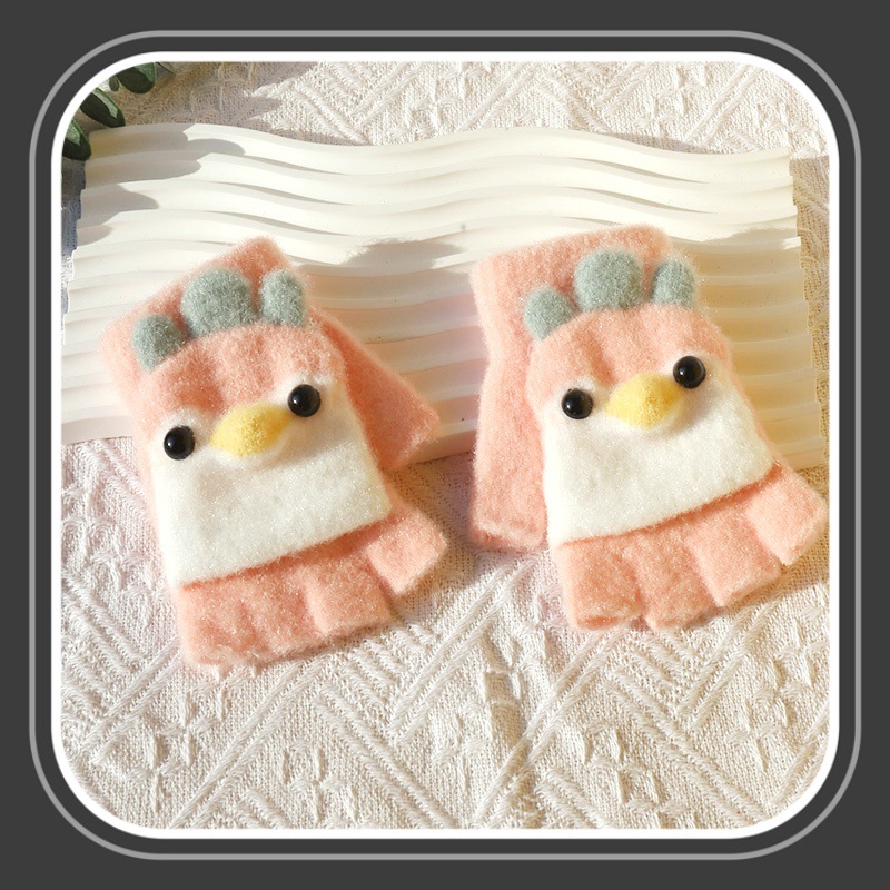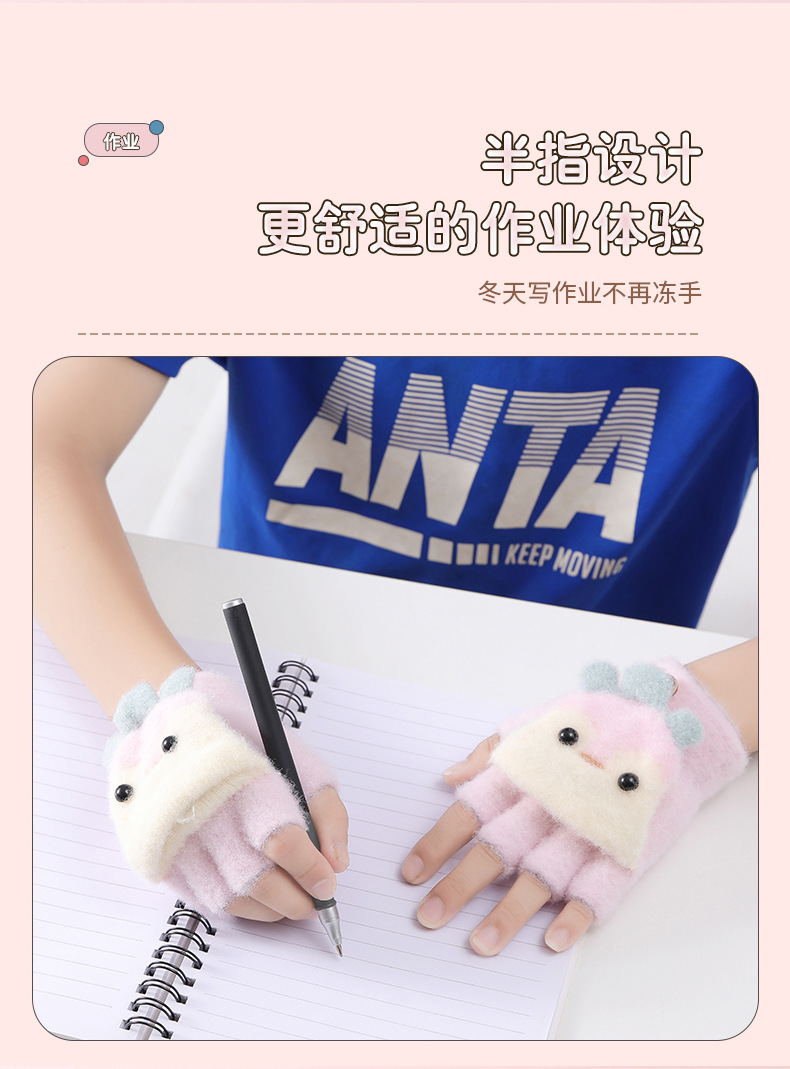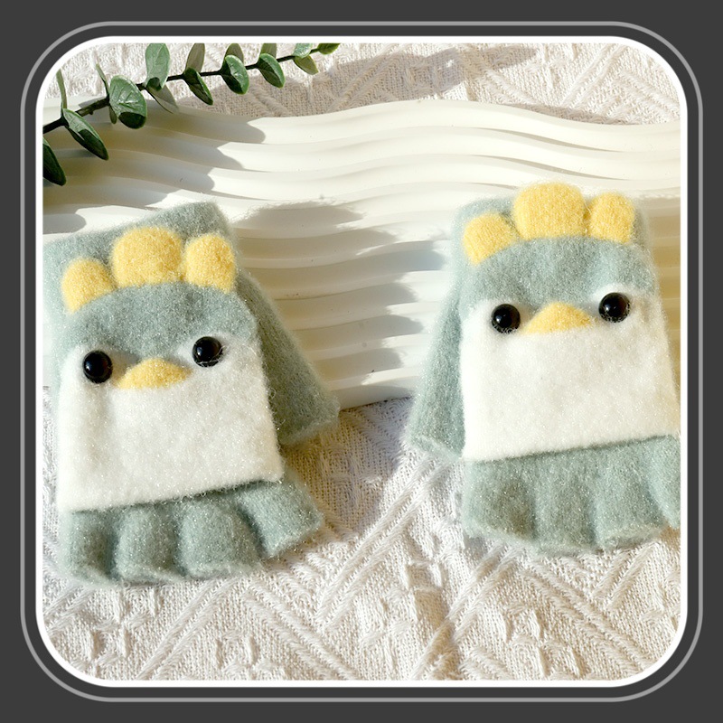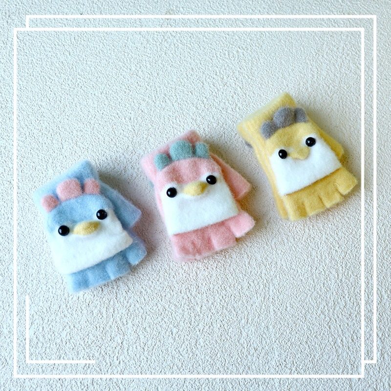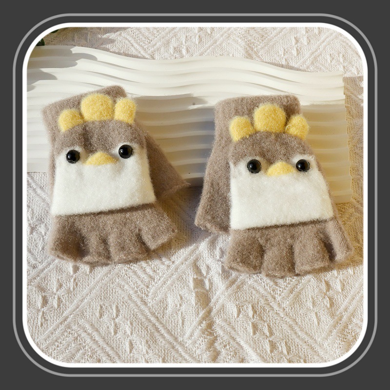 어린이 작은 노란색 치킨 플립 장갑 가을과 겨울 반 손가락 따뜻한 소년 소녀 니트 이중 사용 장갑 도매