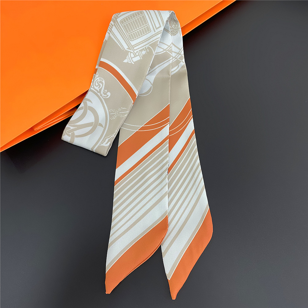 새로운 호박 마차 인쇄 실크 스카프 고급 센스 타이 백 핸들 리본 우아한 실크 스카프 작은 리본스토어 가기