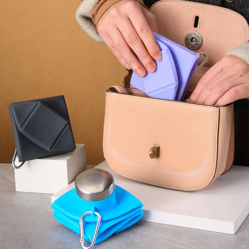 야외용 창의적인 식품 등급 실리콘 휴대용 물병 스포츠 물병 다이아몬드형 접이식 실리콘 물병스토어 가기