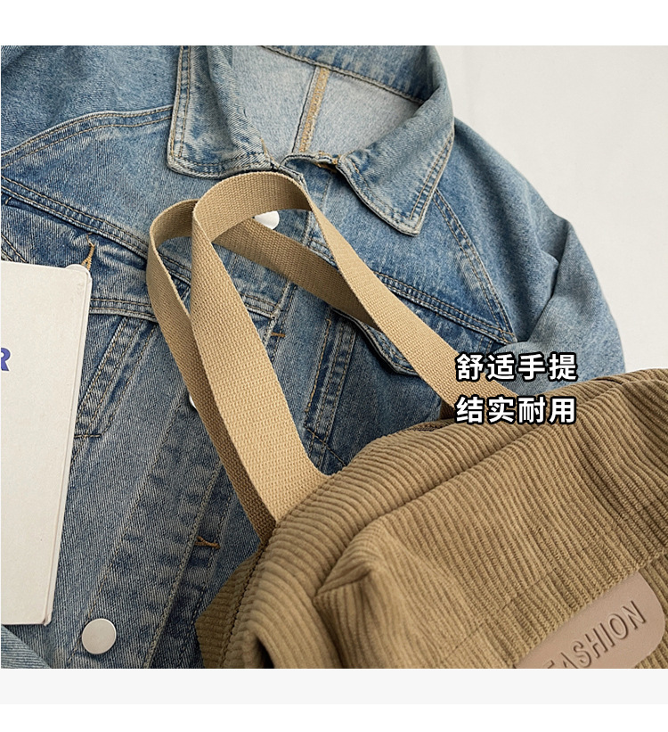 한국 스타일 코듀로이 대용량 핸드백 2024 가을 통근 어깨 가방 여성 패션 캐주얼 여행 가방스토어 가기