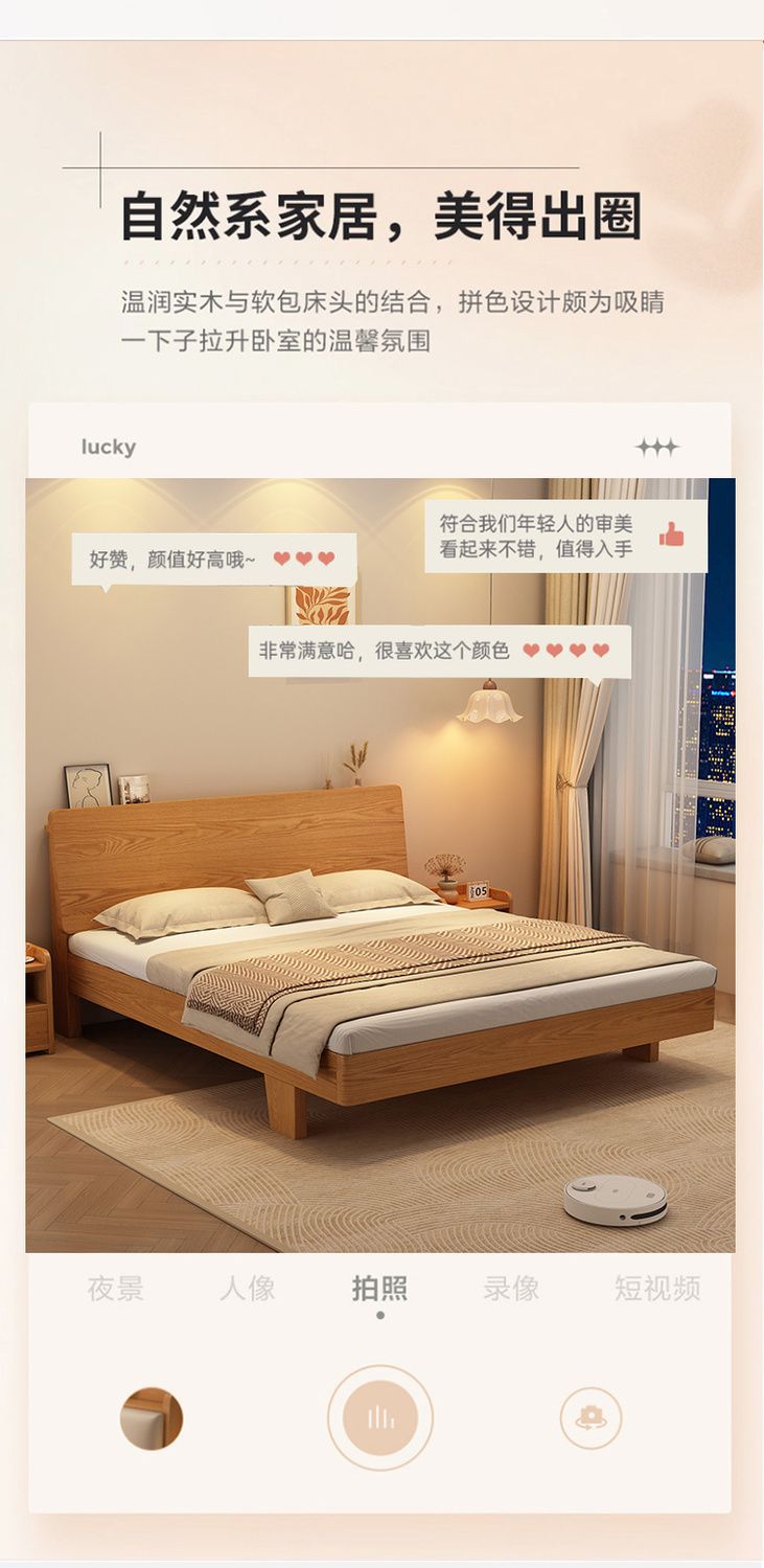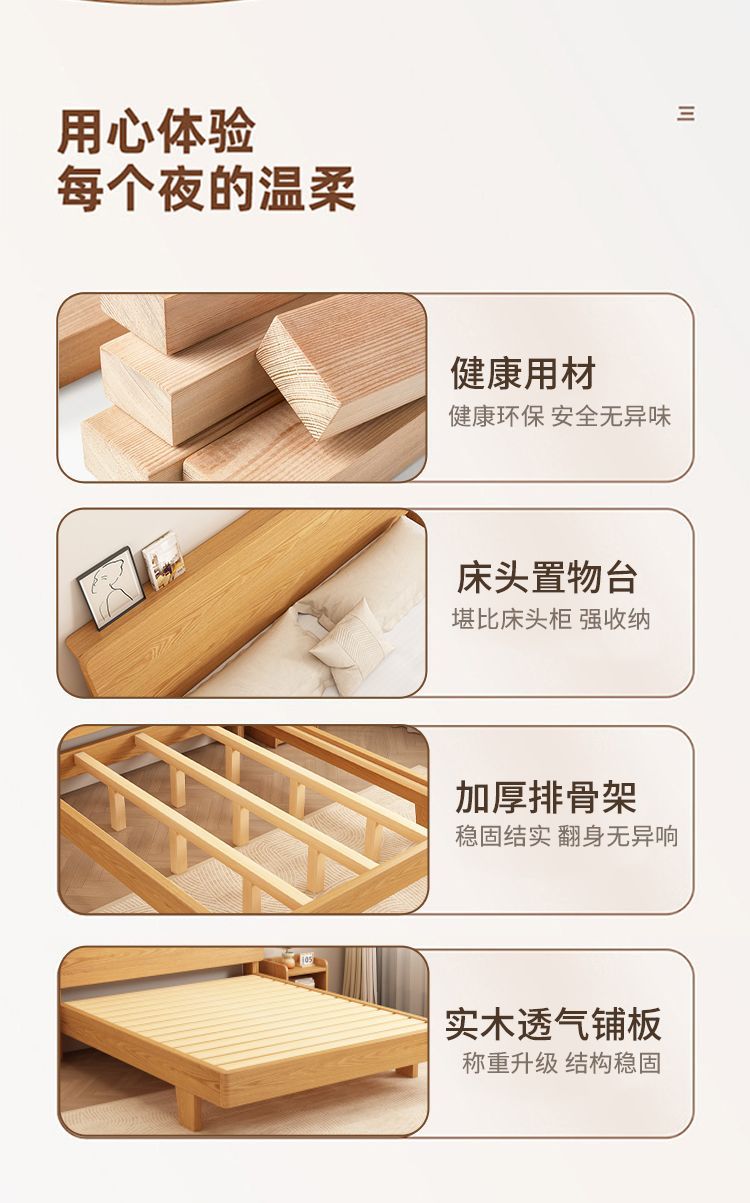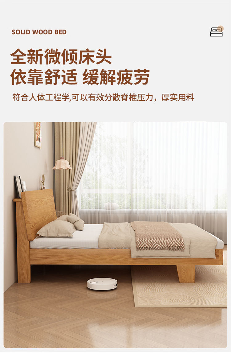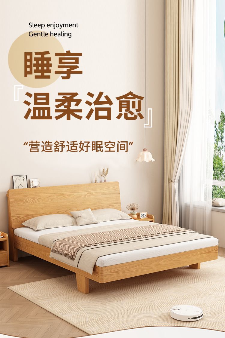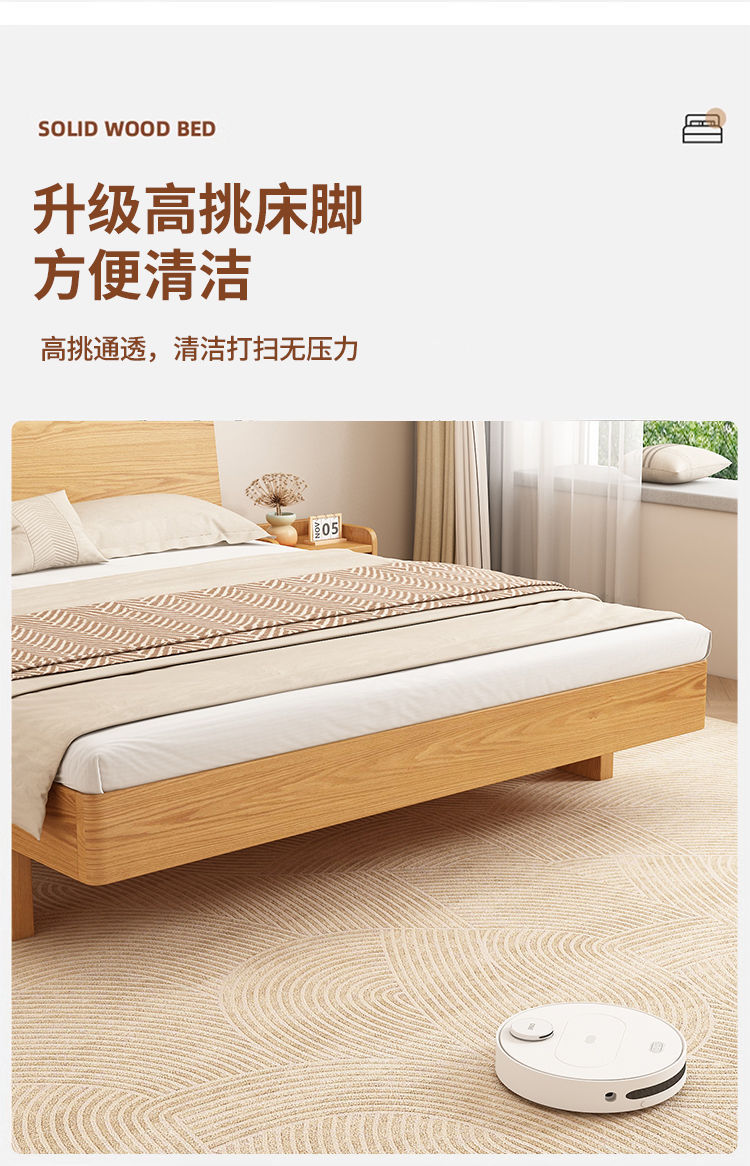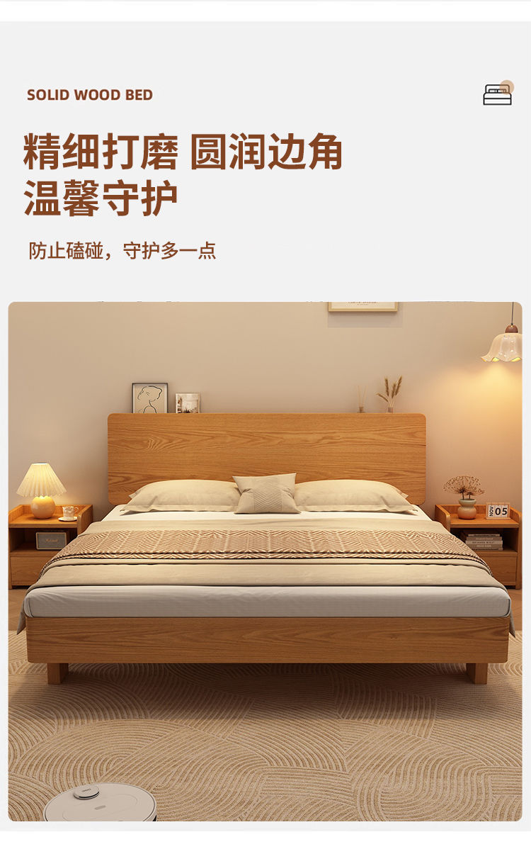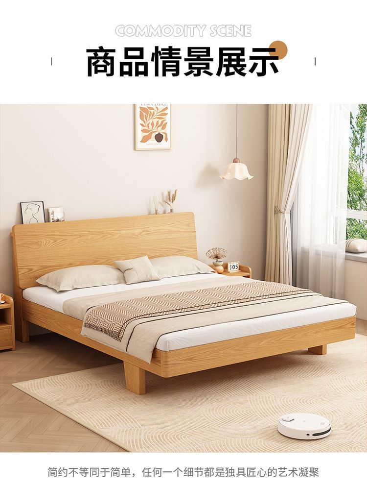 원목 침대 1.5m 가정용 1.8m 마스터 침실 더블 침대 현대적인 미니멀리스트 임대용 1.2m 싱글 침대스토어 가기