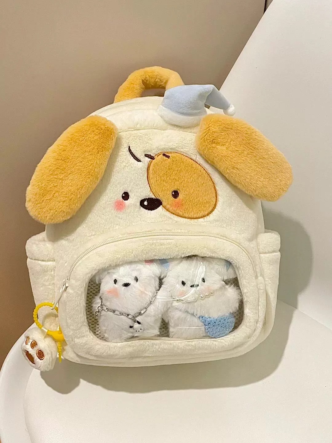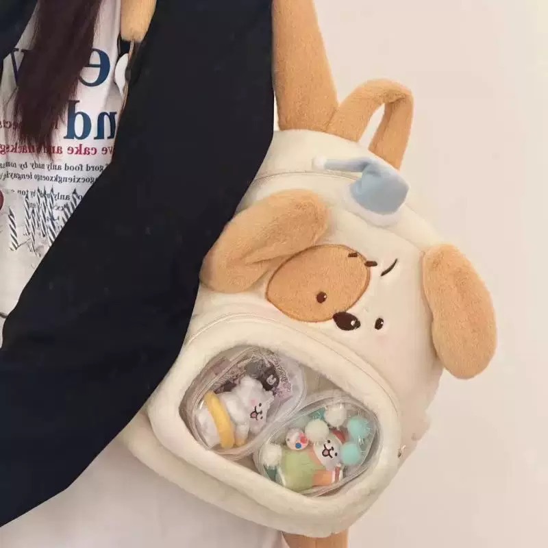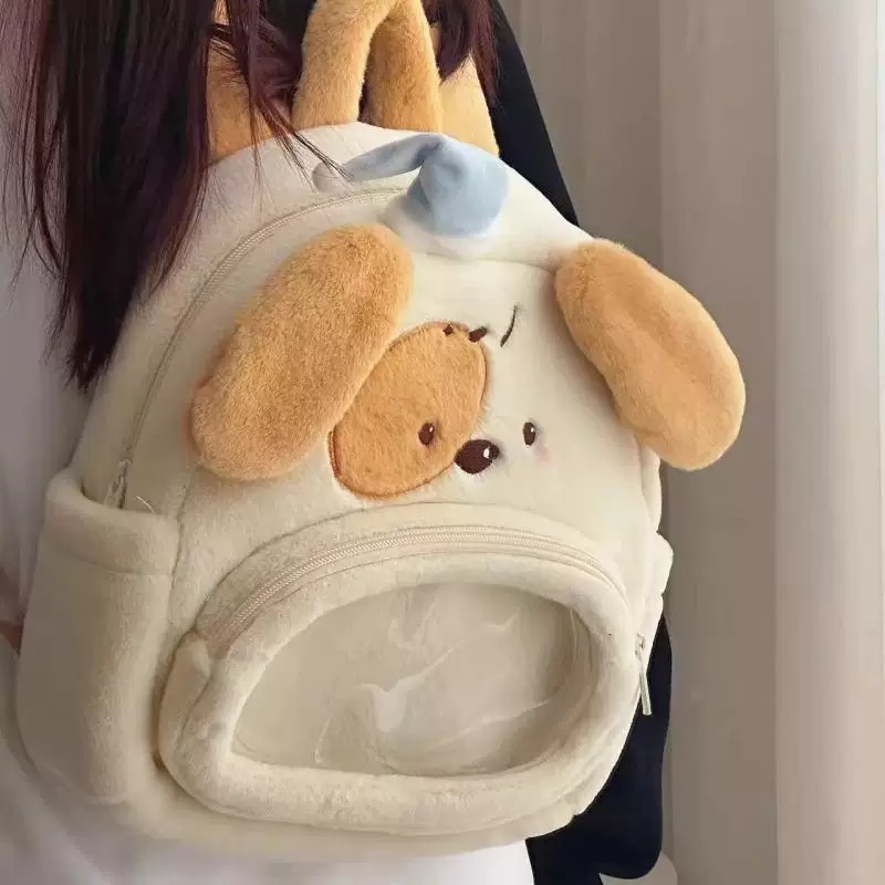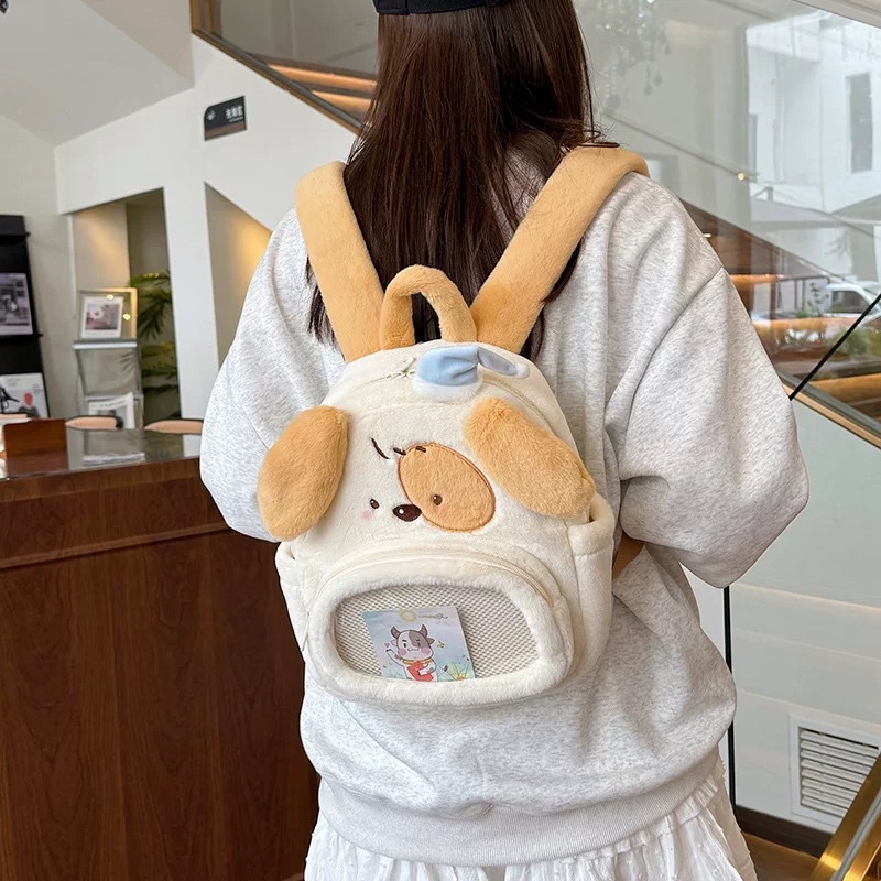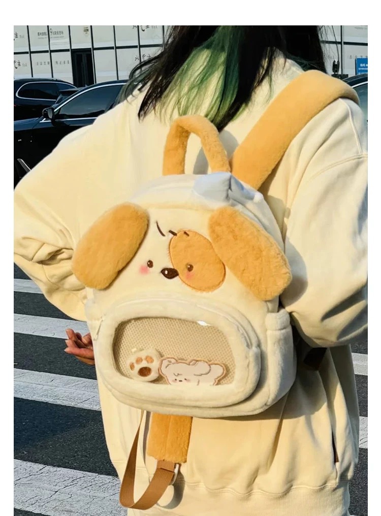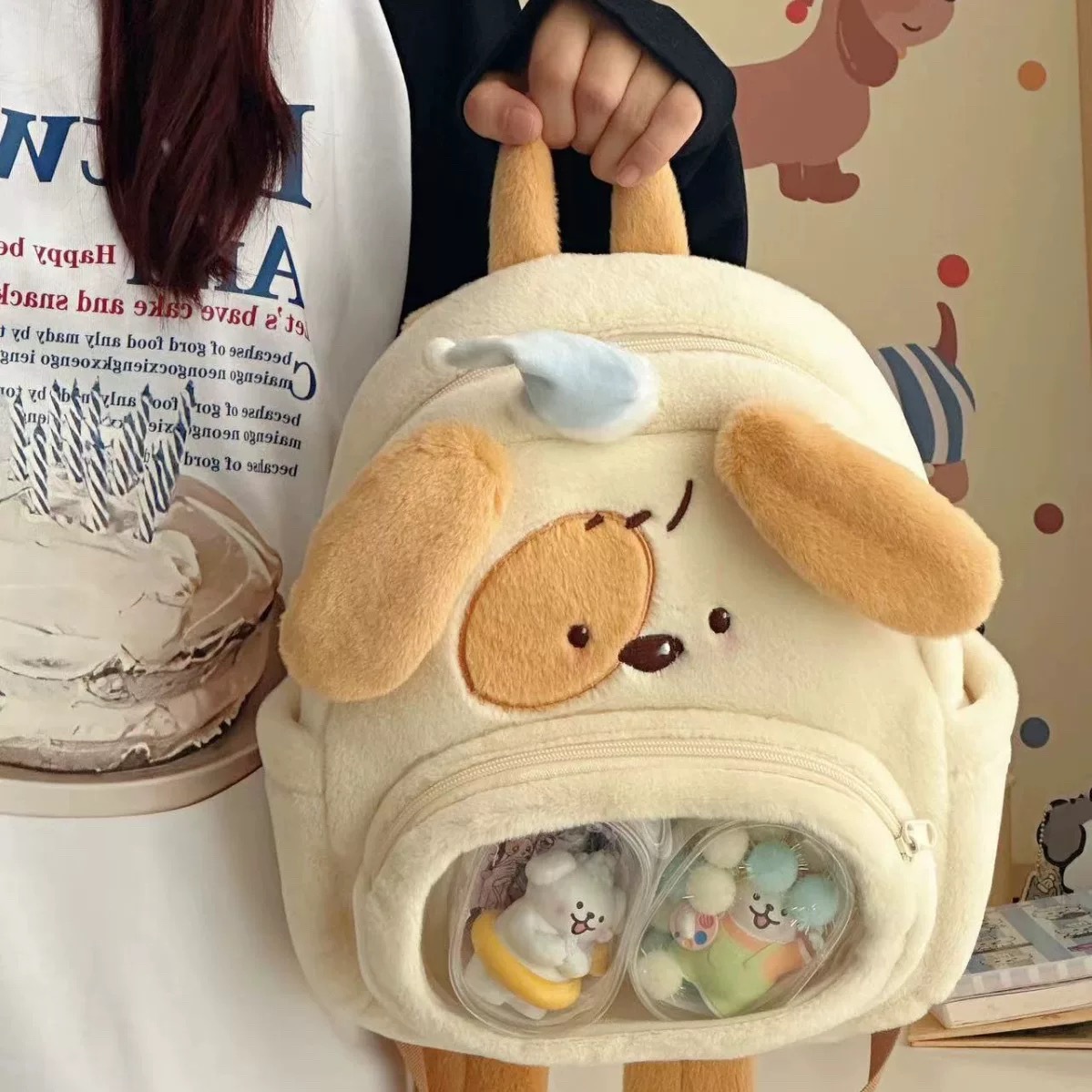 2024년 신상 만화 귀여운 봉제 강아지 가방 가을 겨울 부드럽고 귀여운 소녀 여행용 백팩 캠퍼스 스타일 책가방스토어 가기