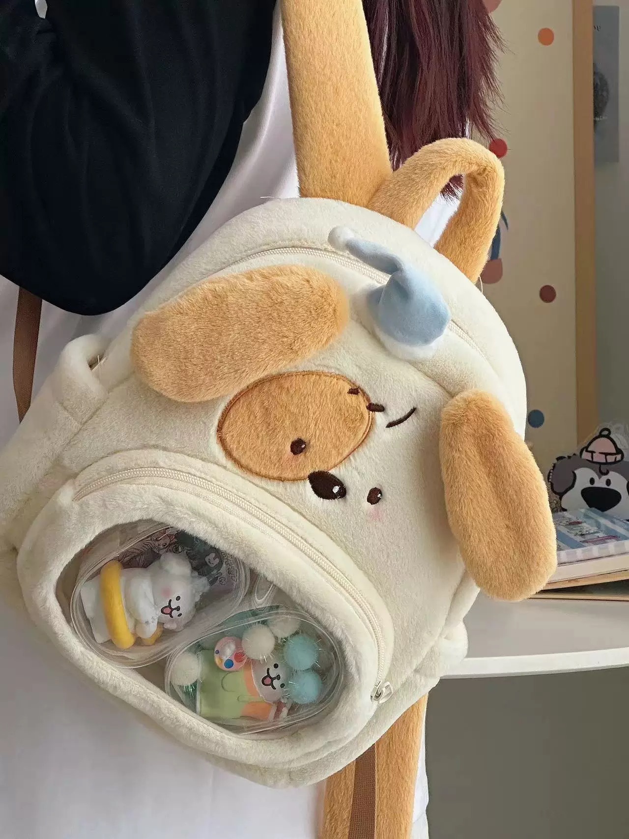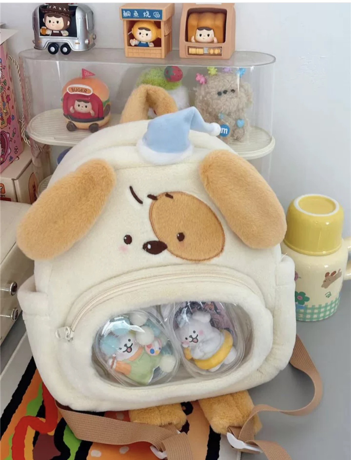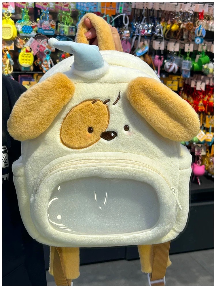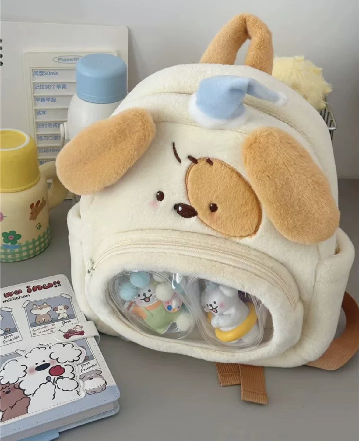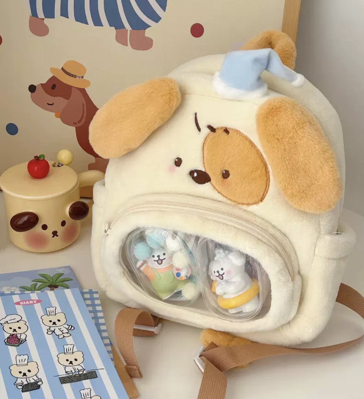 2024년 신상 만화 귀여운 봉제 강아지 가방 가을 겨울 부드럽고 귀여운 소녀 여행용 백팩 캠퍼스 스타일 책가방스토어 가기