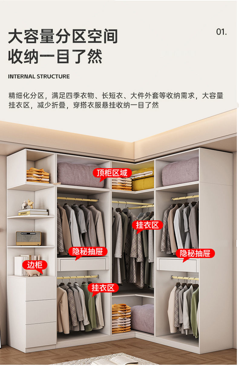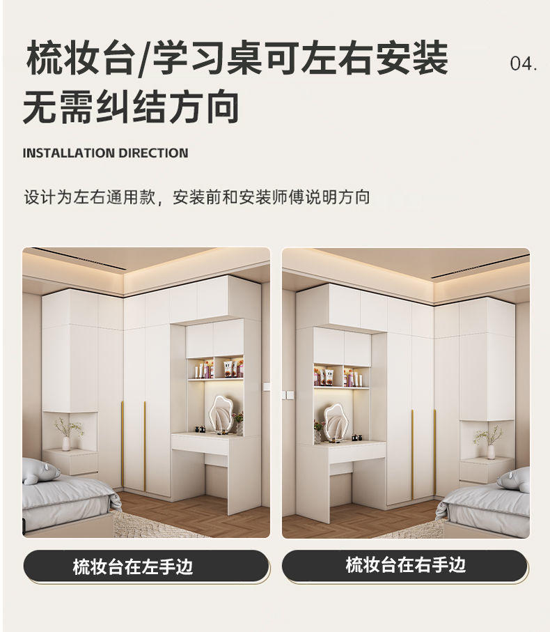 • 사이드 캐비닛 + 양문 코너 + 단일 도어 캐비닛 + 화장대 + 상단 캐비닛