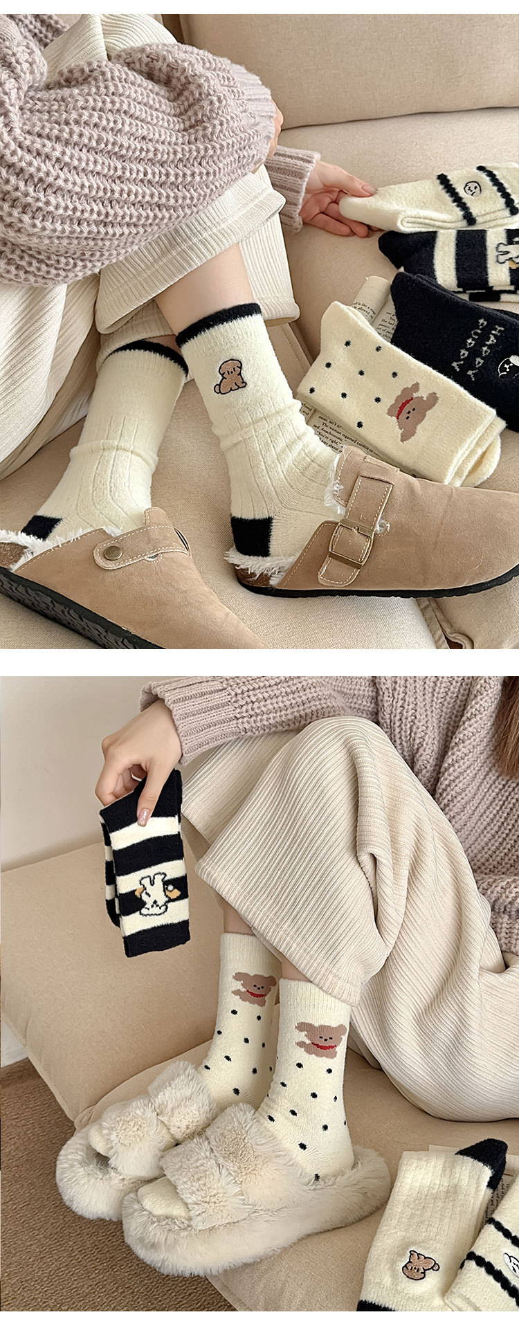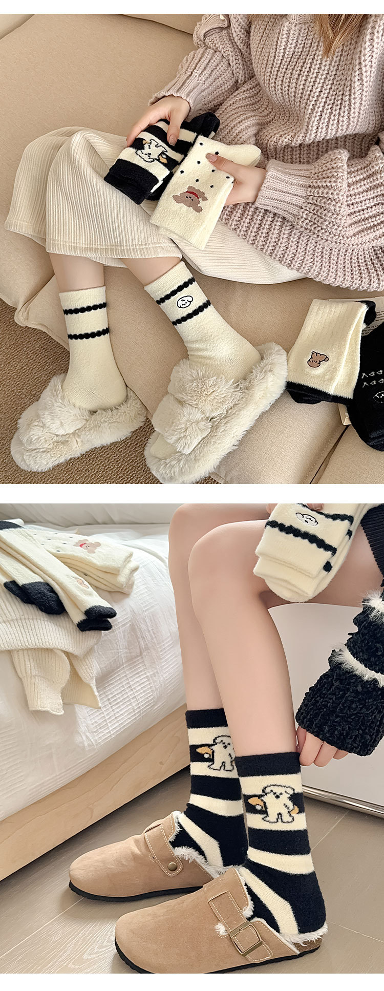 호주 벨벳 양말 여성의 가을 및 겨울 중간 길이 양말 따뜻한 양말에 기모 두꺼운 플러시 수면 바닥 양말 내한성 여성용 스타킹