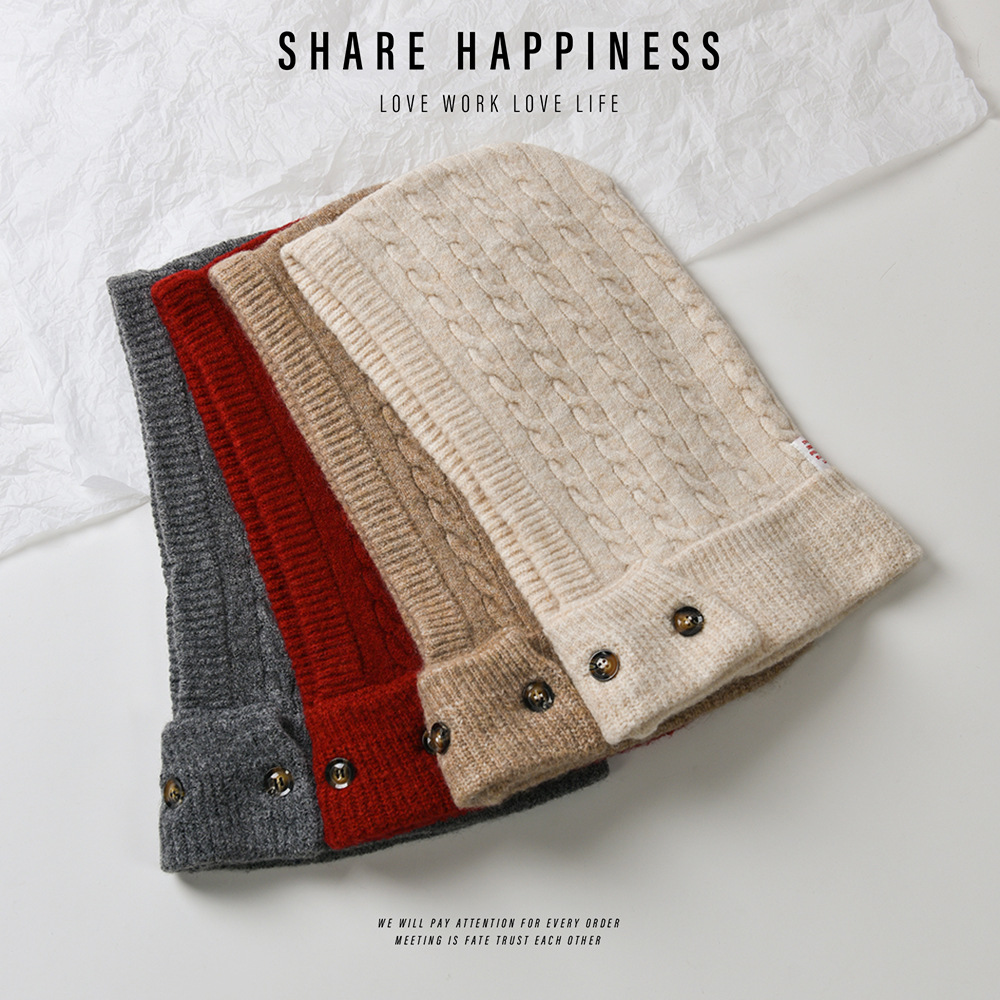 15 Pcl 울 Balaclava 모자 여성 버튼 복고풍 모자 스카프 한 가을과 겨울 새로운 귀 보호 양모 모자스토어 가기