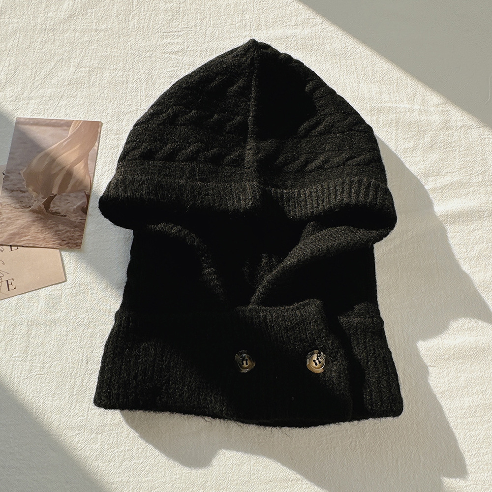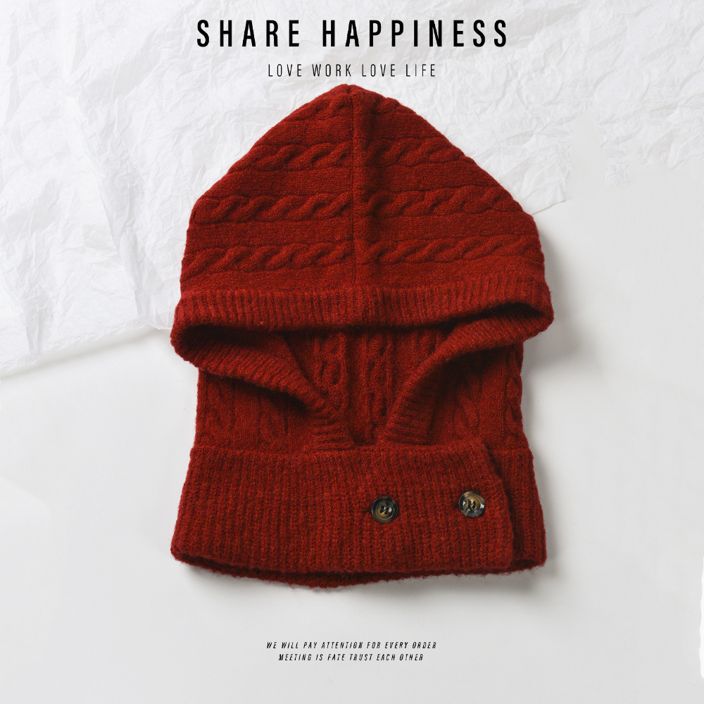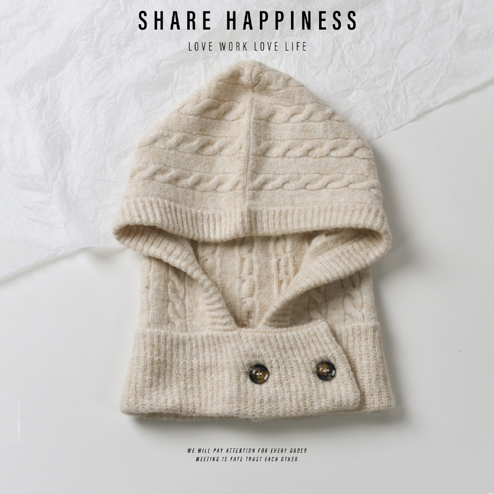 15 Pcl 울 Balaclava 모자 여성 버튼 복고풍 모자 스카프 한 가을과 겨울 새로운 귀 보호 양모 모자