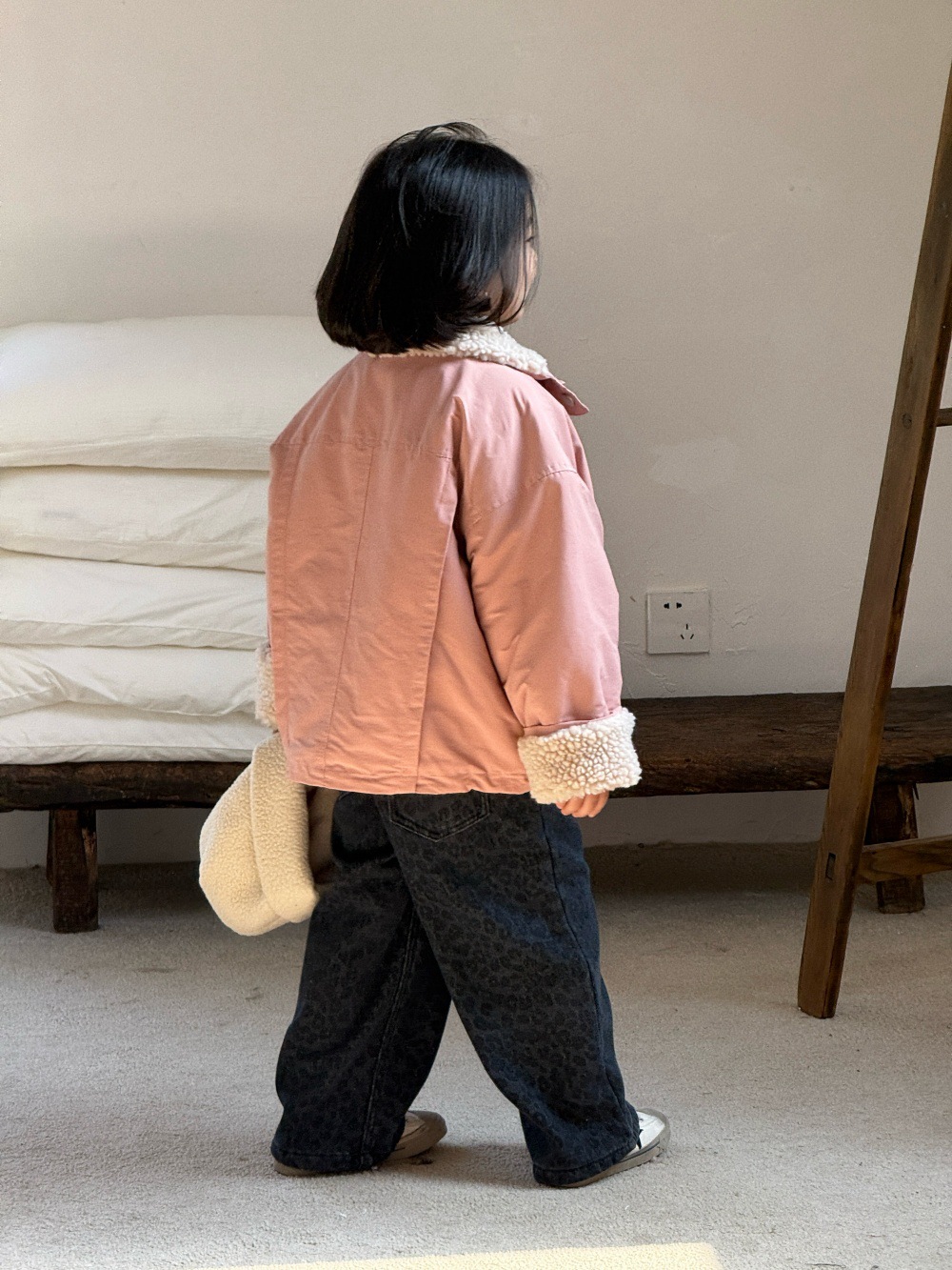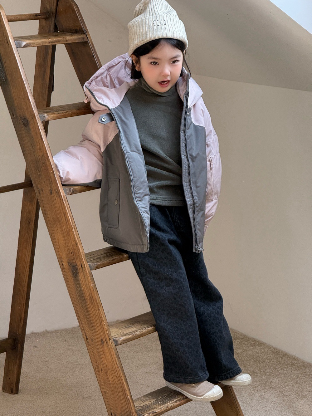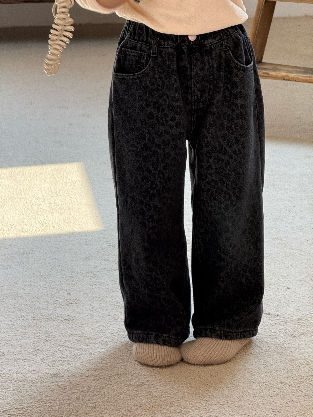 여아 2025 가을 신상 중학생 레오파드 프린트 데님 팬츠, 스타일리시한 한국 스타일 와이드 팬츠, 스트레이트 팬츠, 틈새시장, 기모 처리된 트렌디한 팬츠스토어 가기
