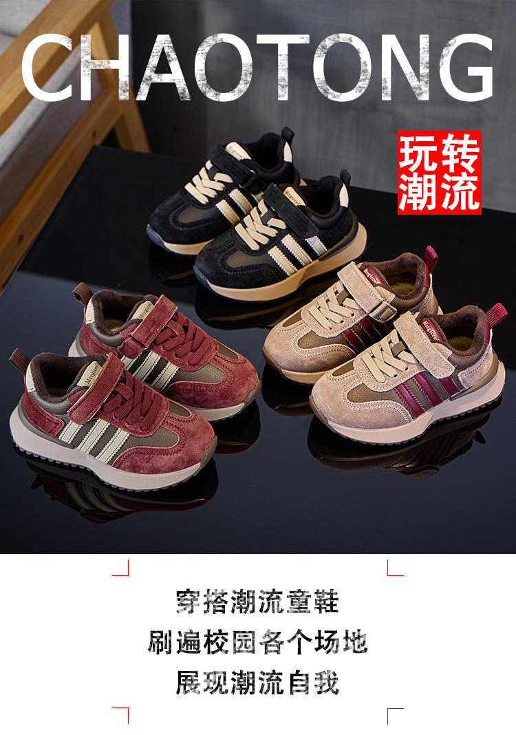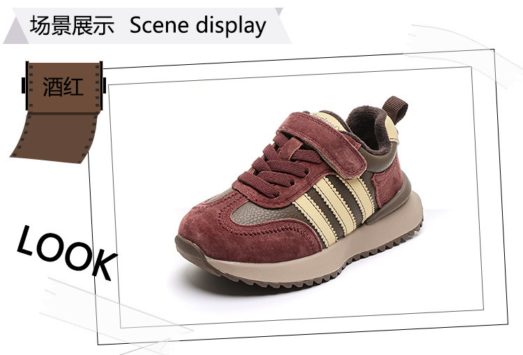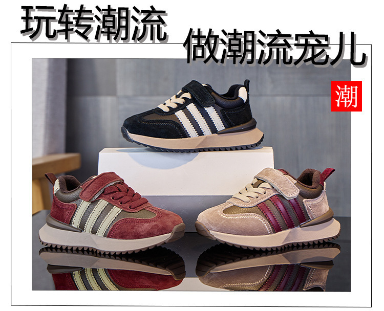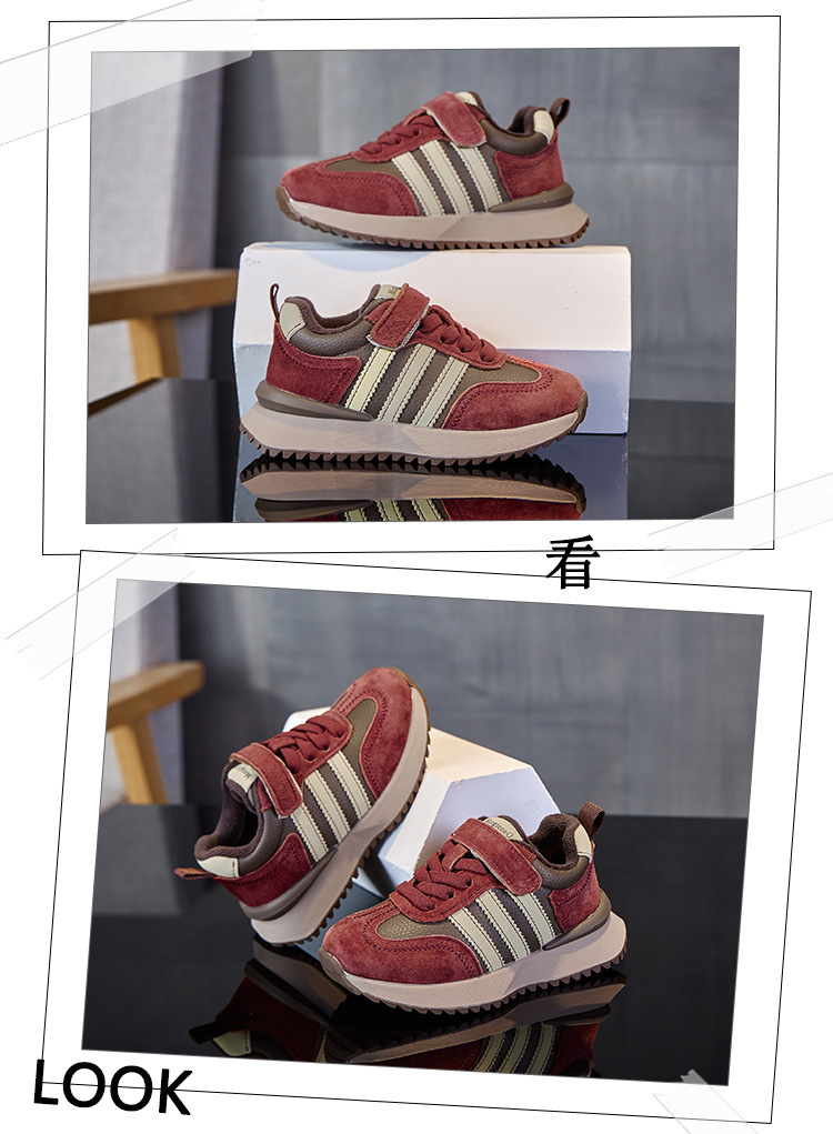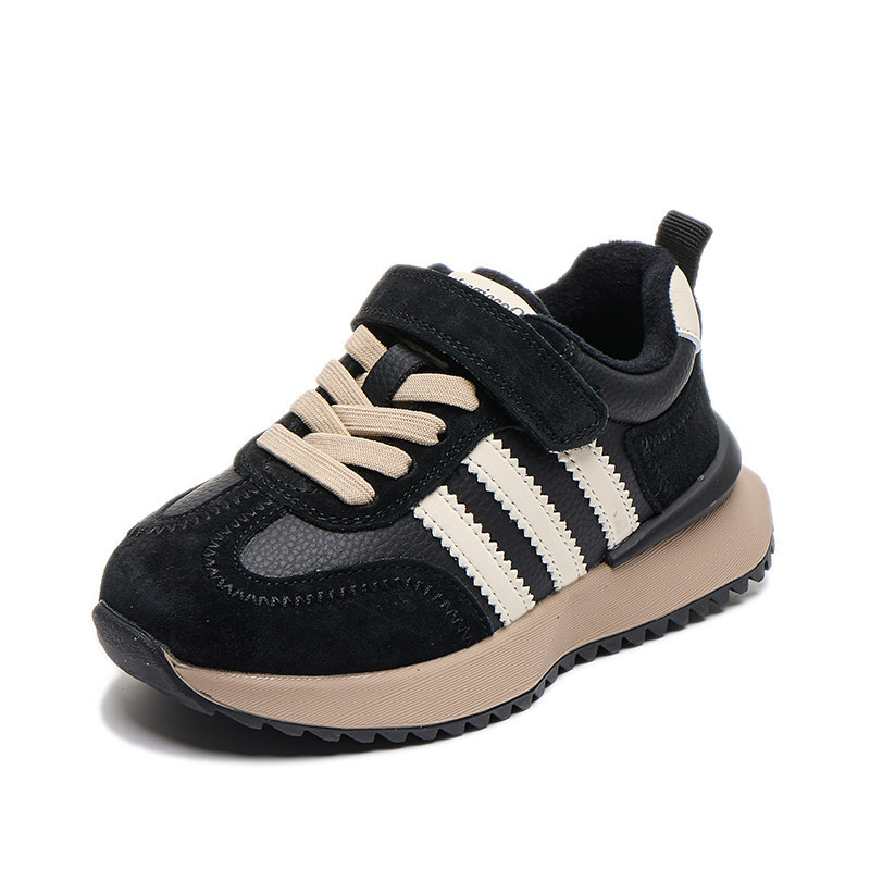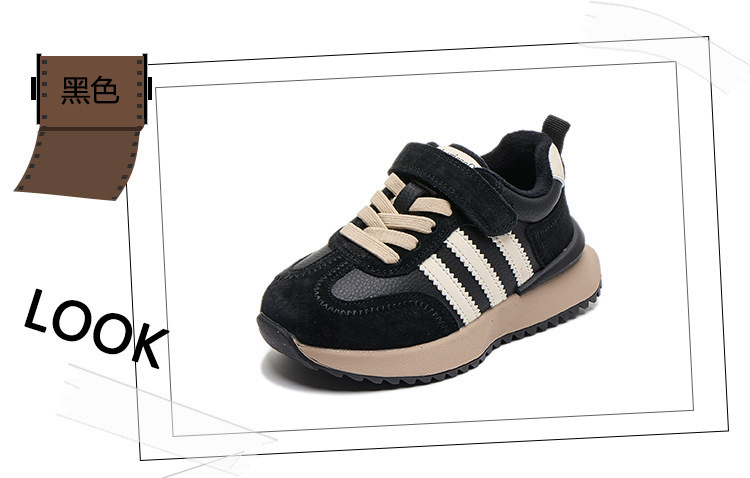 女童加绒德训鞋2024秋冬季新款二棉男童跑步鞋儿童韩版真皮运动鞋