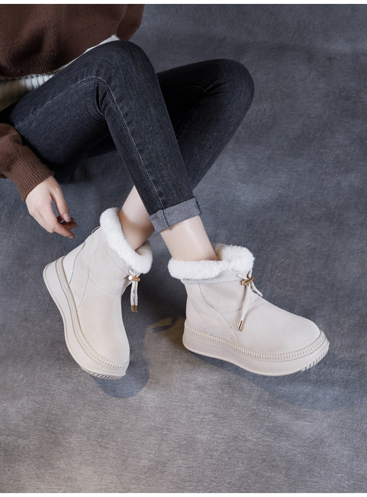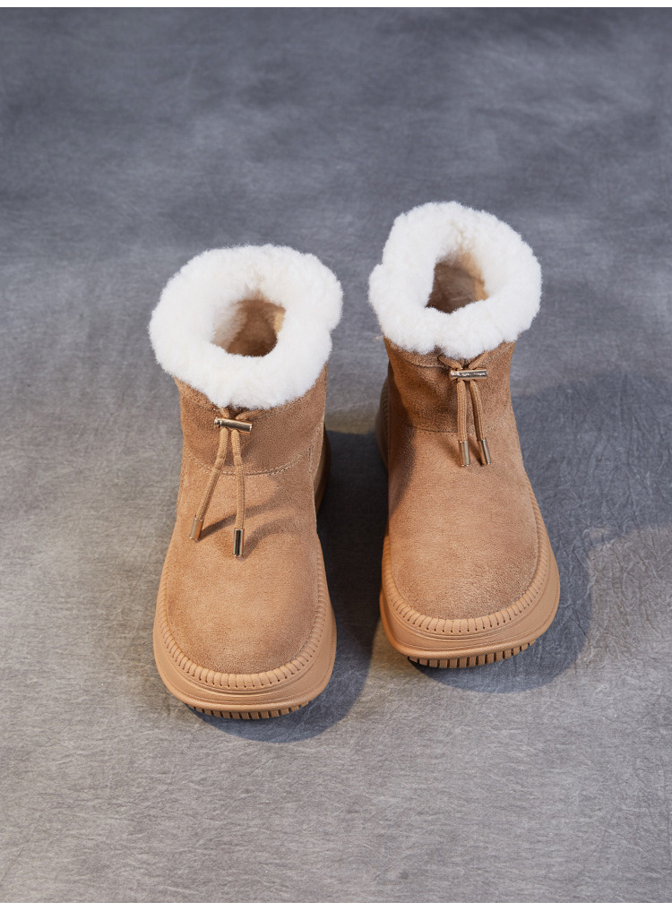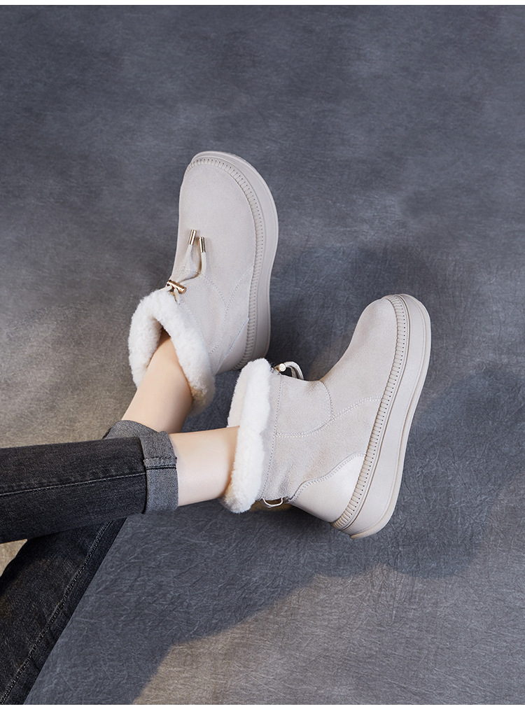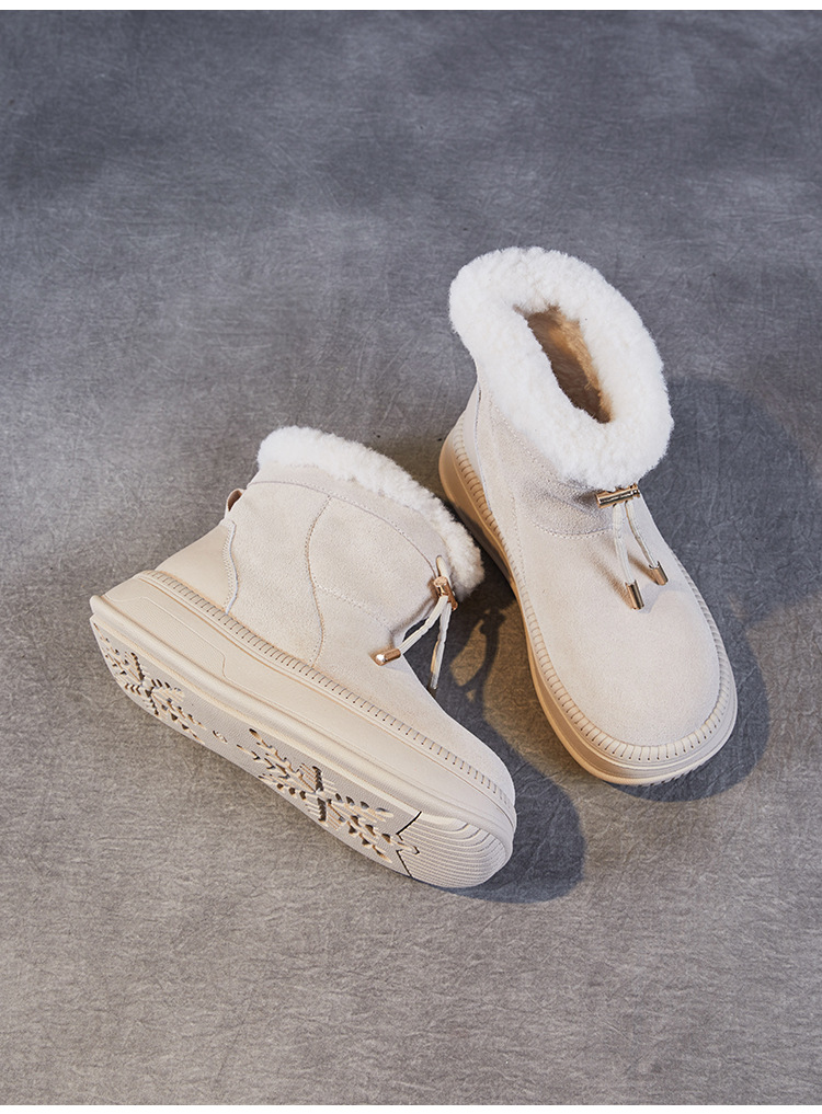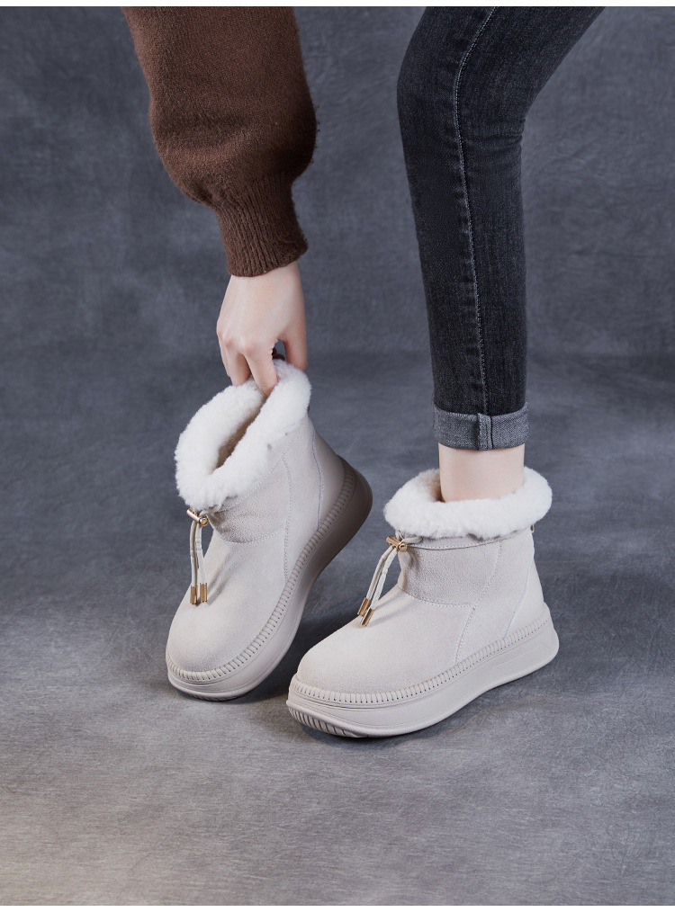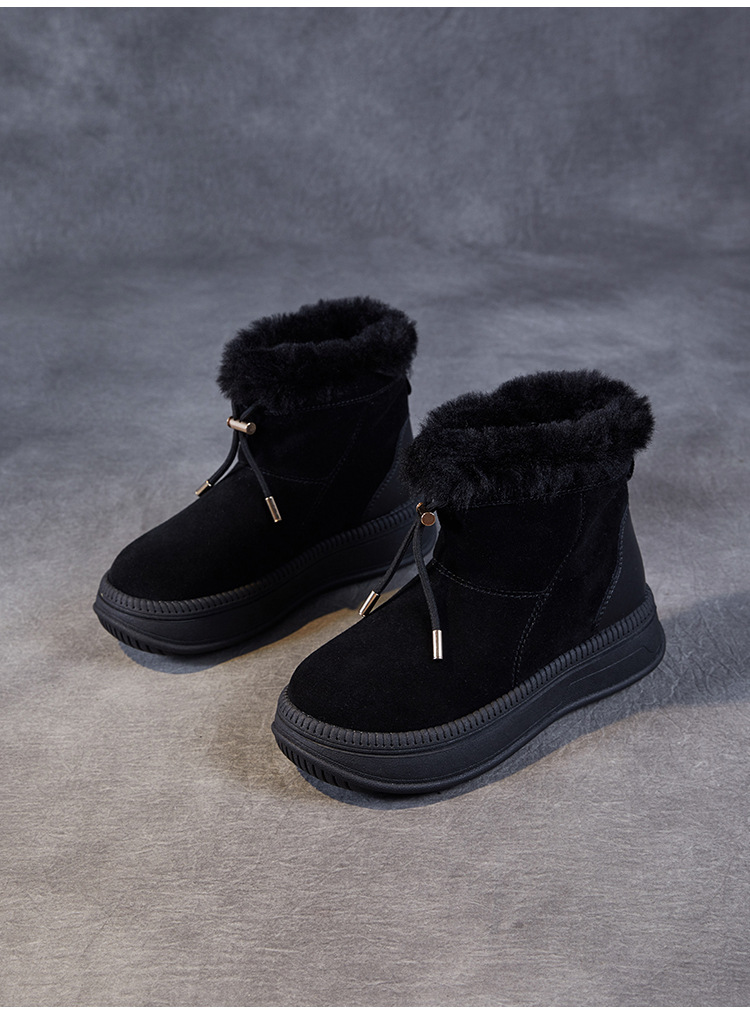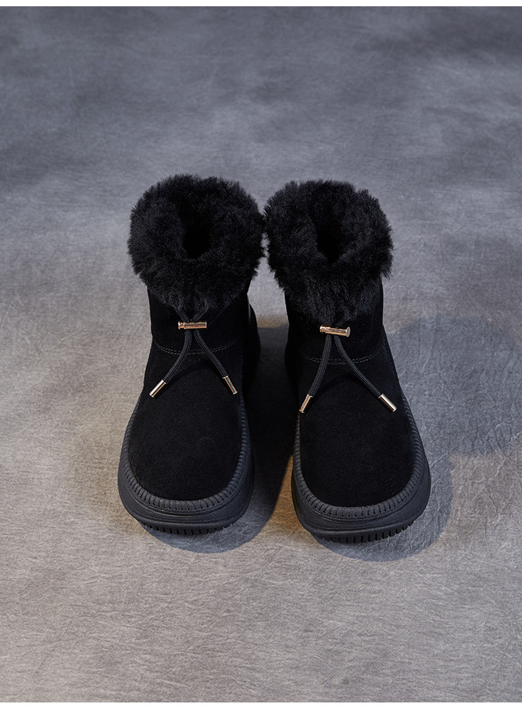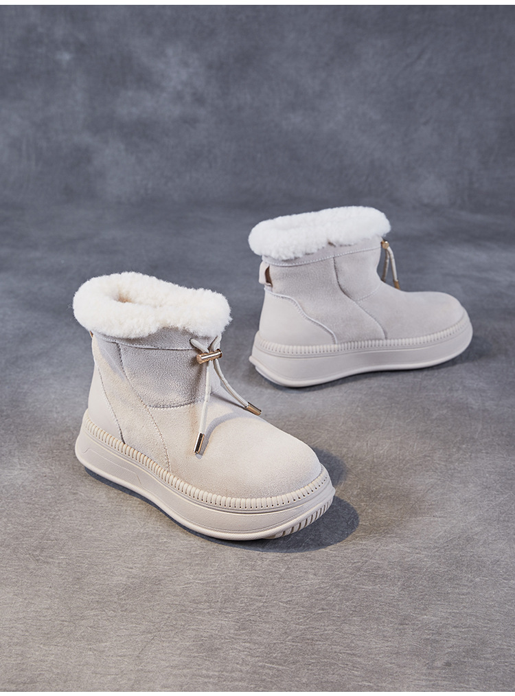 두꺼운 바닥 스노우 부츠 여성의 2024 새로운 겨울 기모 두꺼운 따뜻한 소매면 신발 짧은 튜브 높이 마오 마오 마오 마오 신발