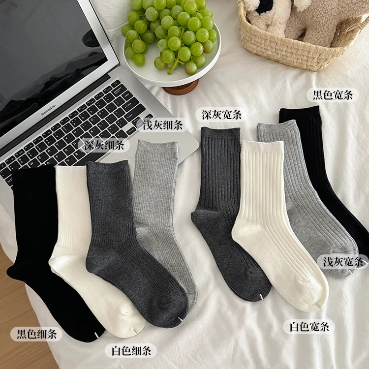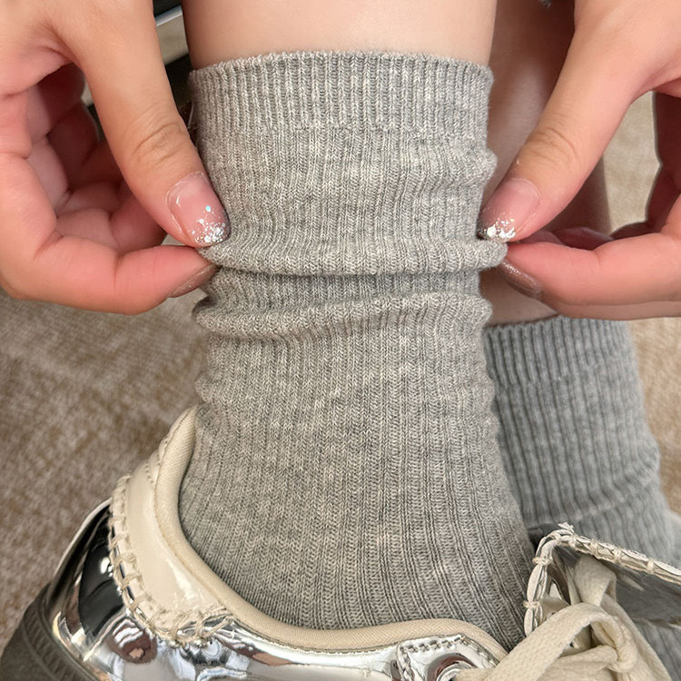 회색 양말 여성용 미드 튜브 양말 봄과 가을 코튼 버켄 본 신발 스타킹 화이트 가을 및 겨울 필 스타킹 여성용 가죽 신발스토어 가기