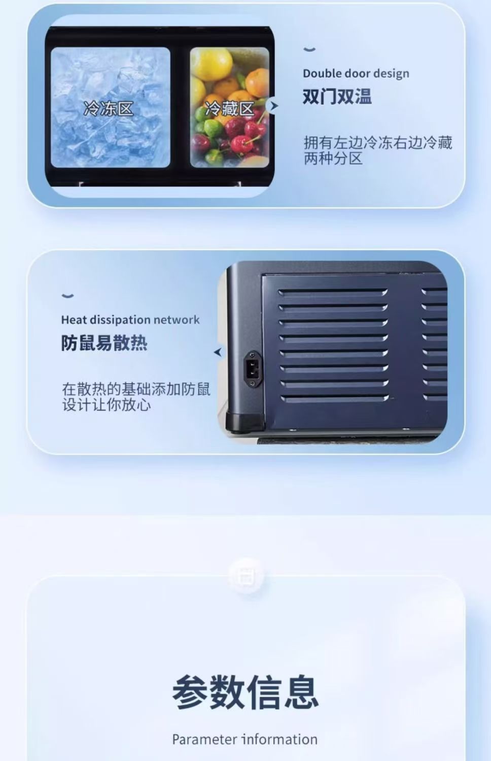 새로운 Feifei 압축기 냉장고 자동차 홈 이중 목적 트럭 냉장고 냉동 Hyperbolic Zone 이중 온도 냉장고 12V2