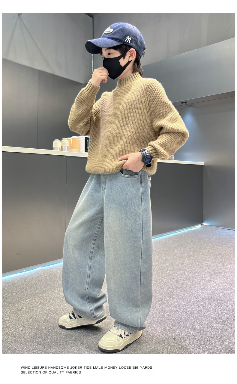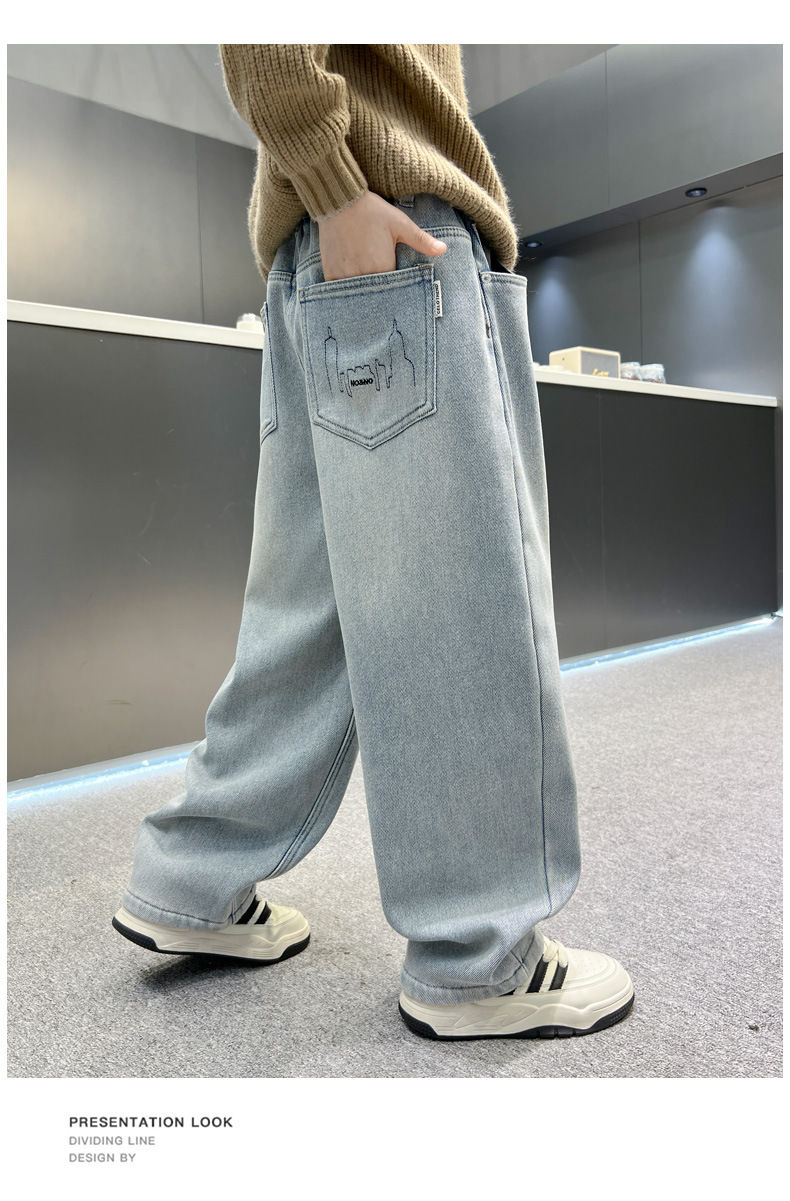 소년의 겨울 기모 청바지 2024 새로운 스타일 중대형 어린이 겨울 바지 어린이 바지 캐주얼 바지 트렌디