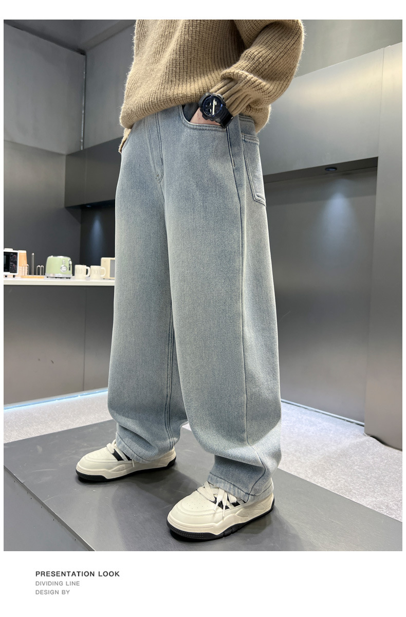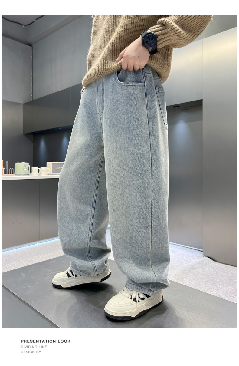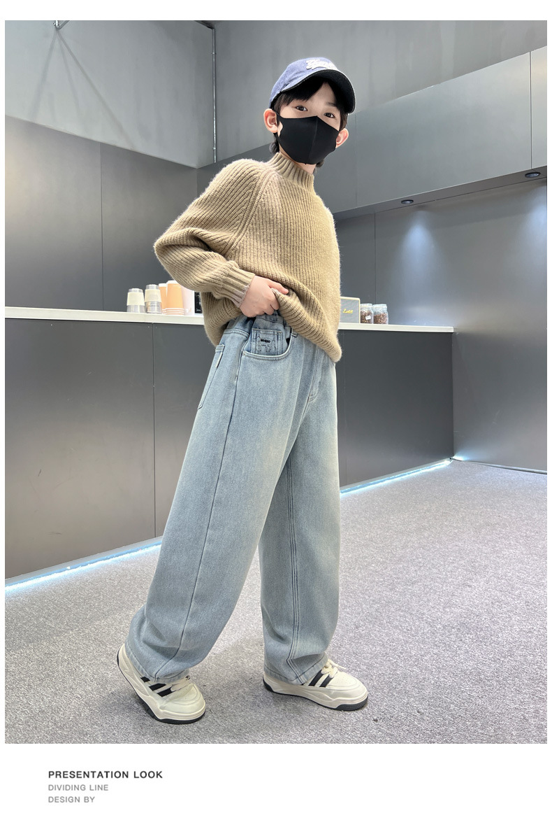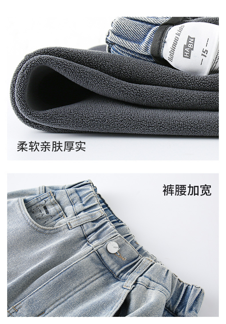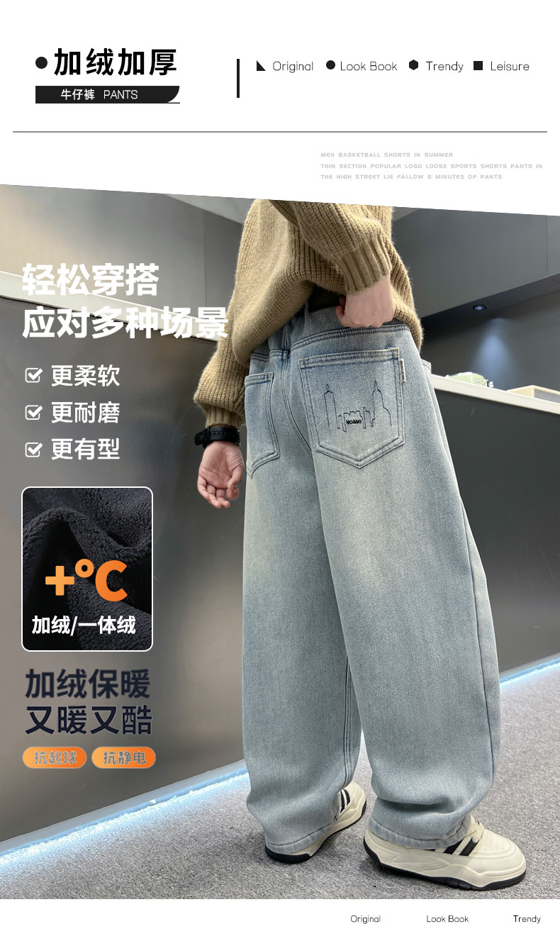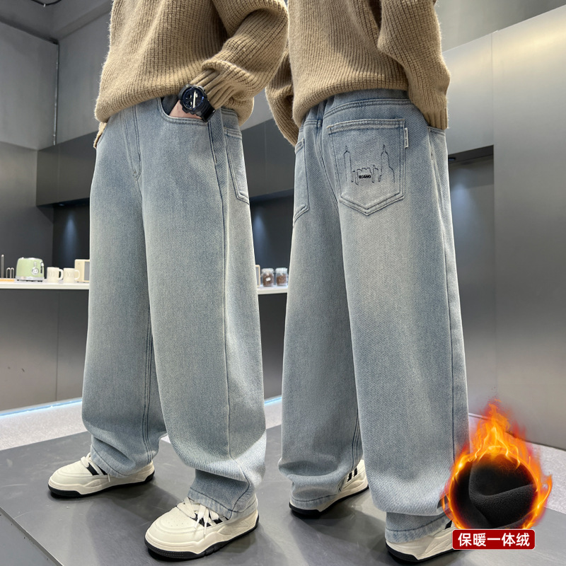 소년의 겨울 기모 청바지 2024 새로운 스타일 중대형 어린이 겨울 바지 어린이 바지 캐주얼 바지 트렌디스토어 가기