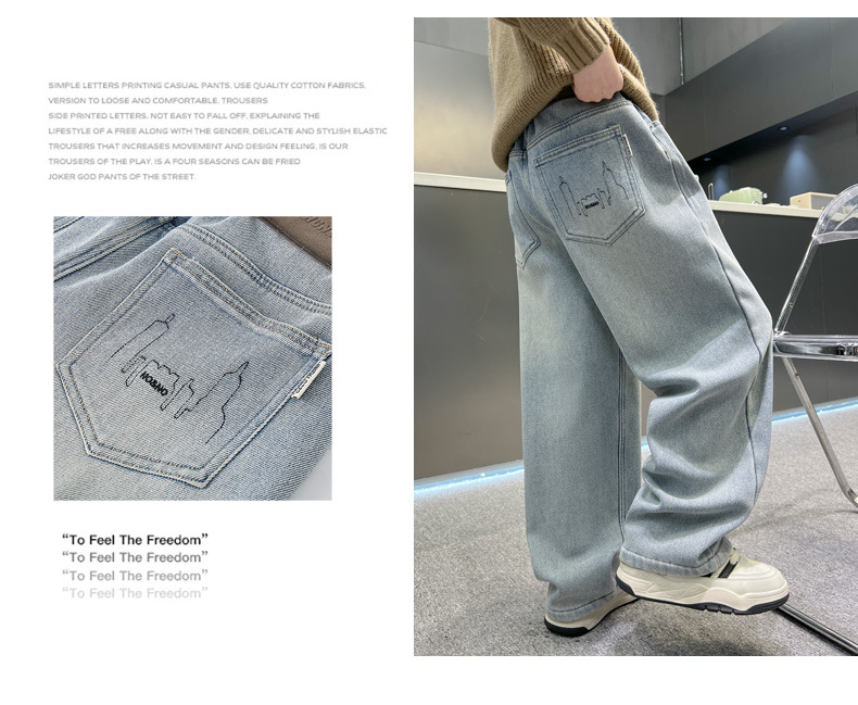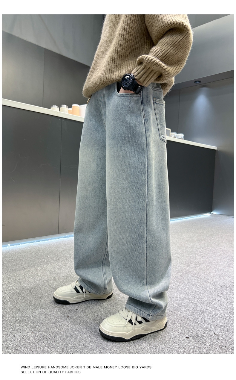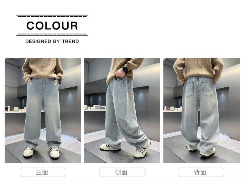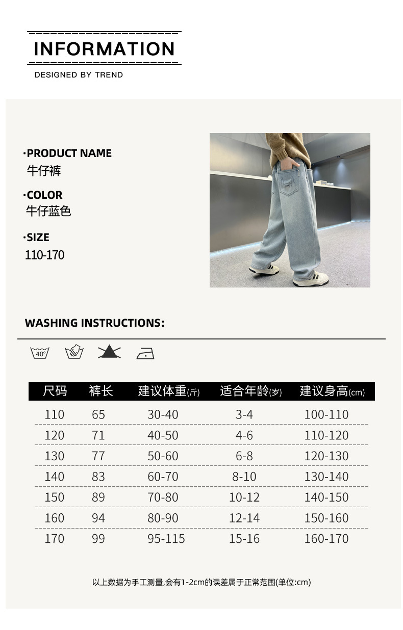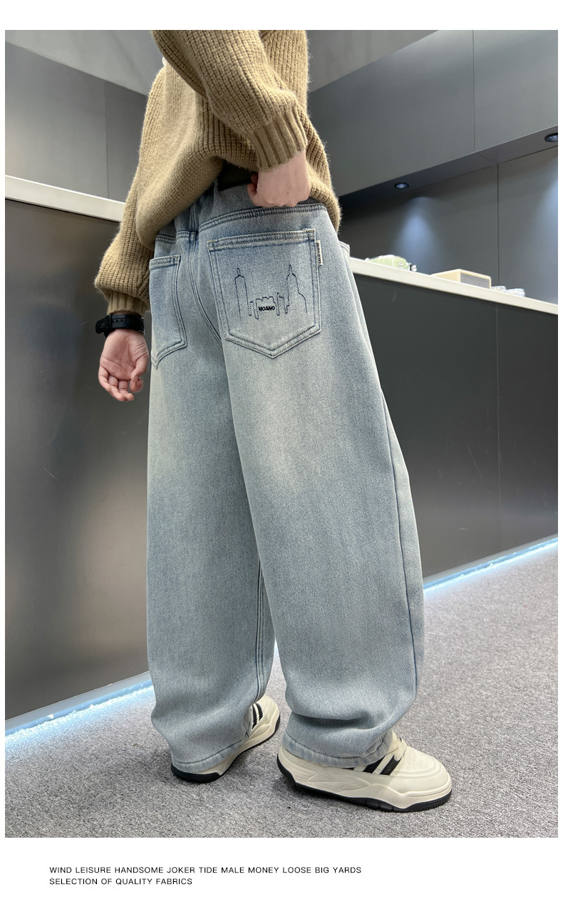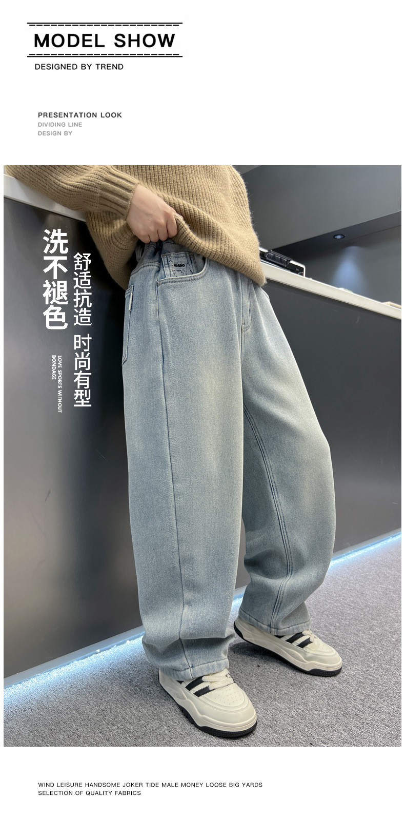 소년의 겨울 기모 청바지 2024 새로운 스타일 중대형 어린이 겨울 바지 어린이 바지 캐주얼 바지 트렌디스토어 가기