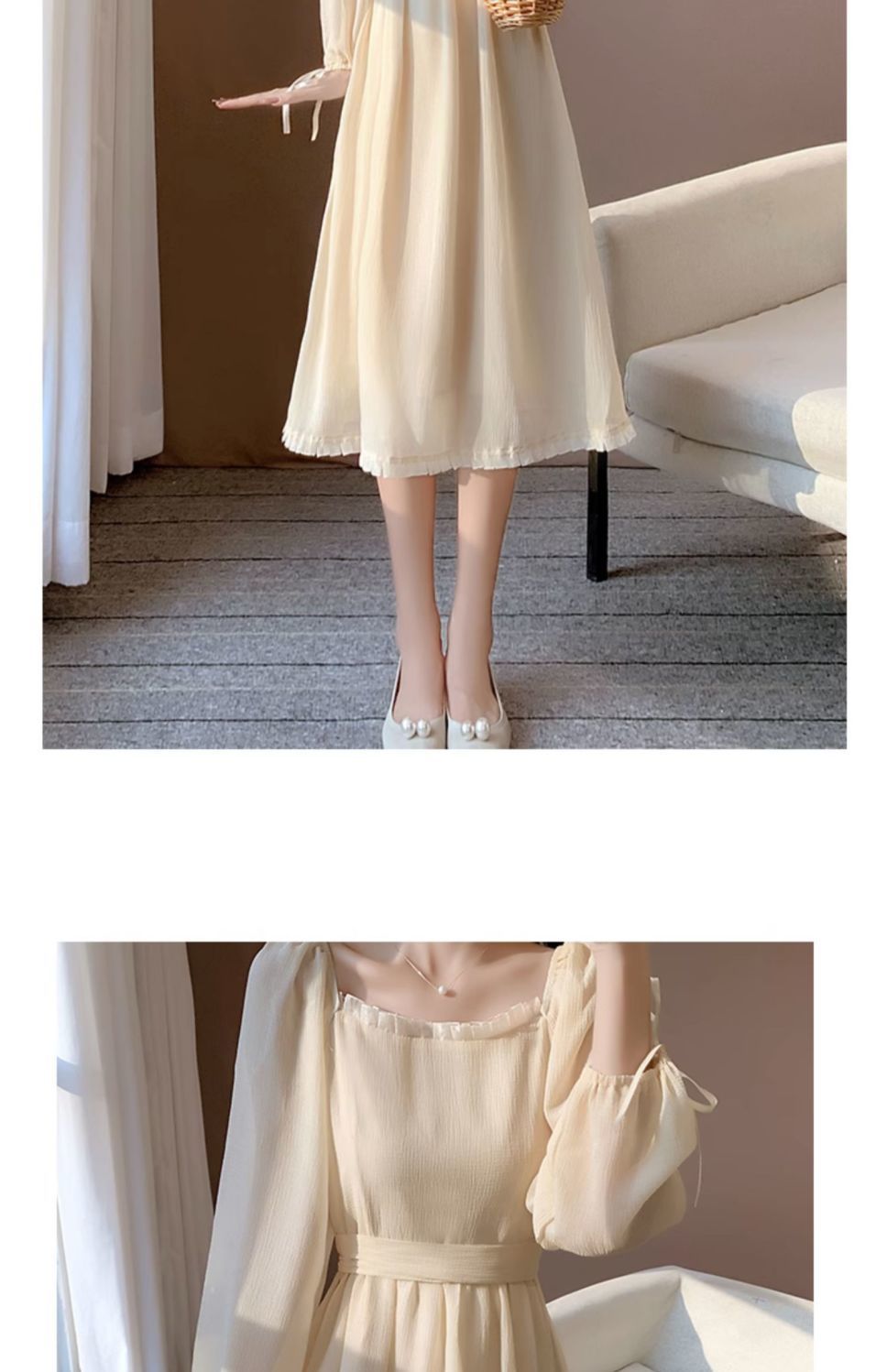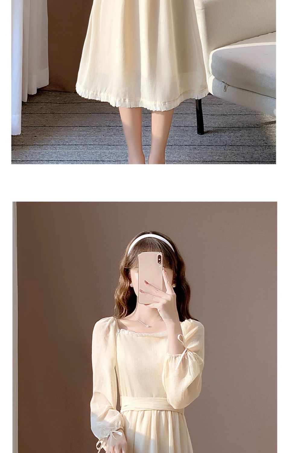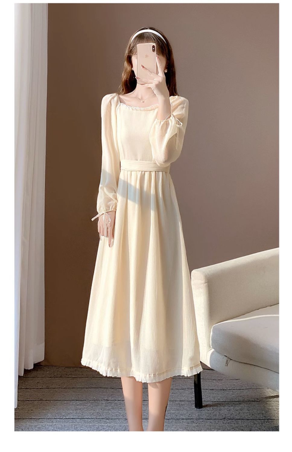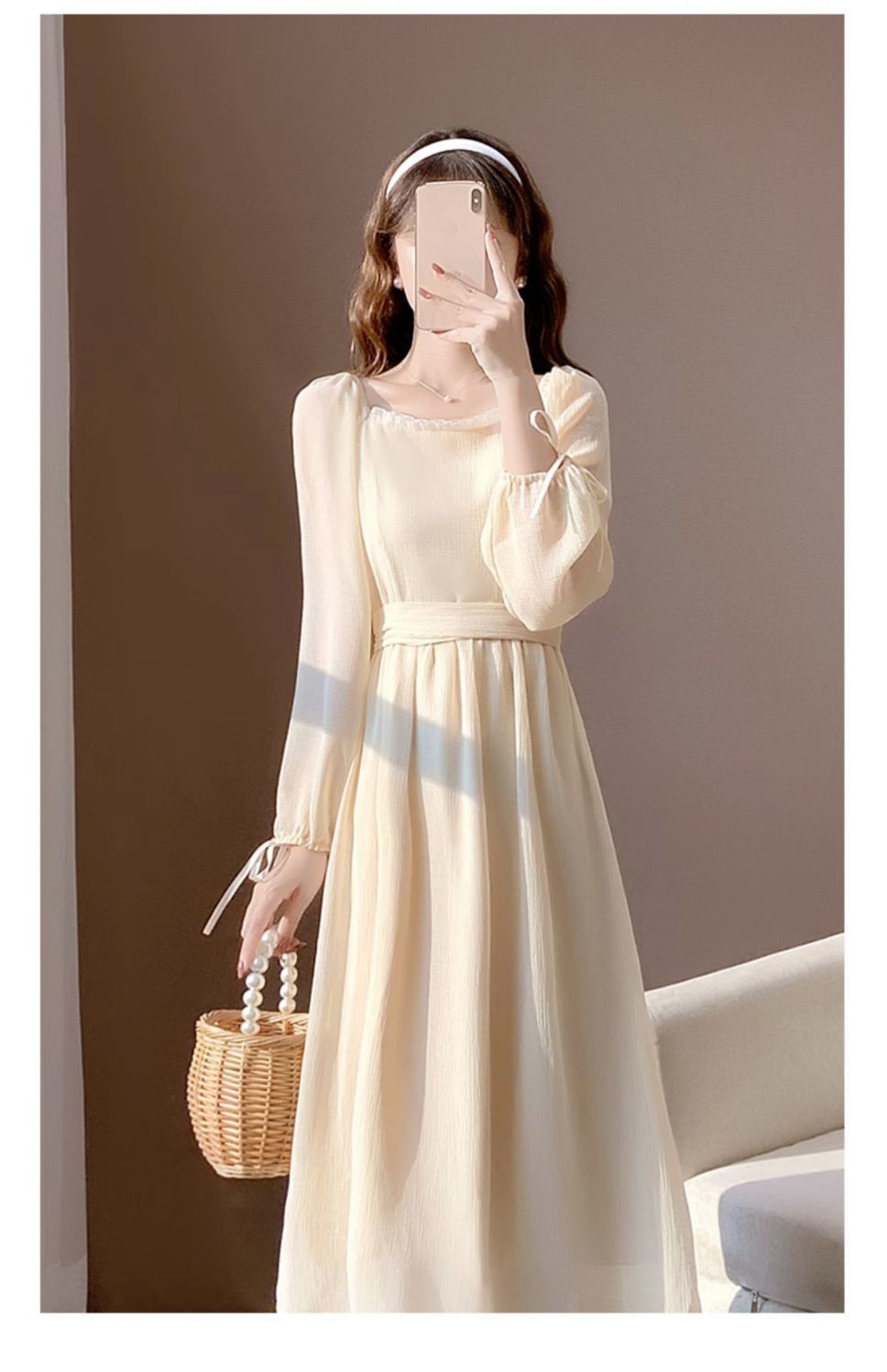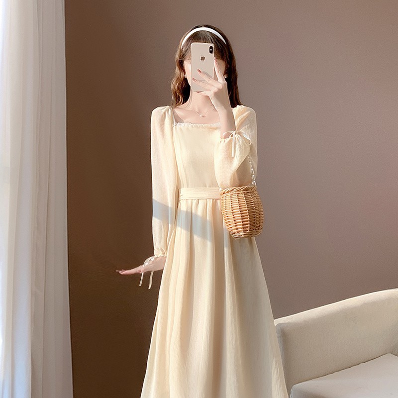 가을 새로운 빈티지 기질 부드러운 간단한 달콤한 레이디 샤넬 스타일 슬리밍 쉬폰 긴 원피스 긴 소매 원피스스토어 가기