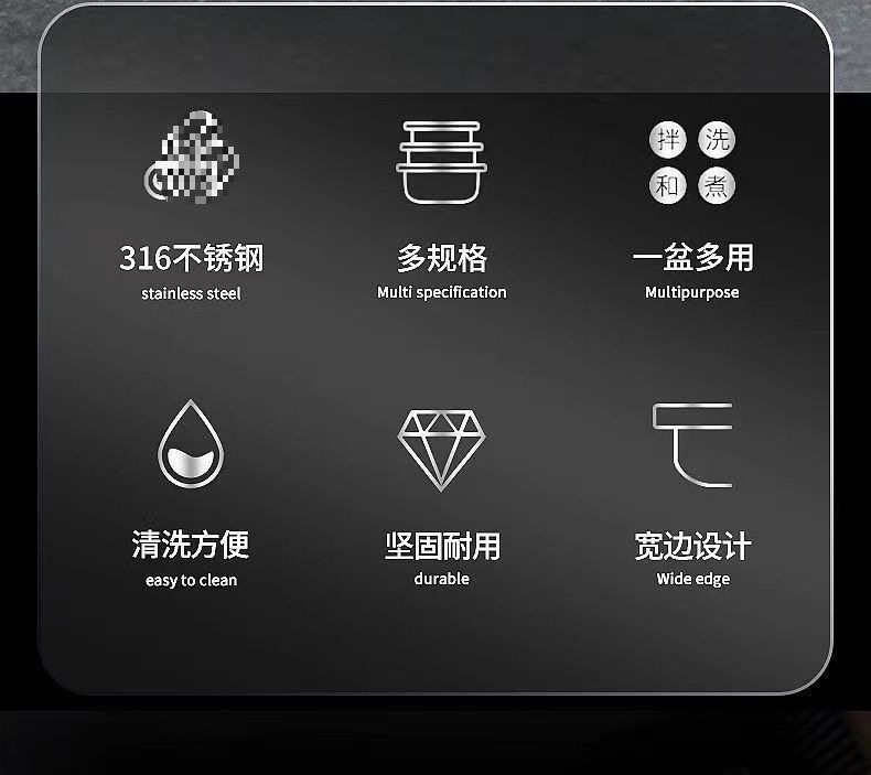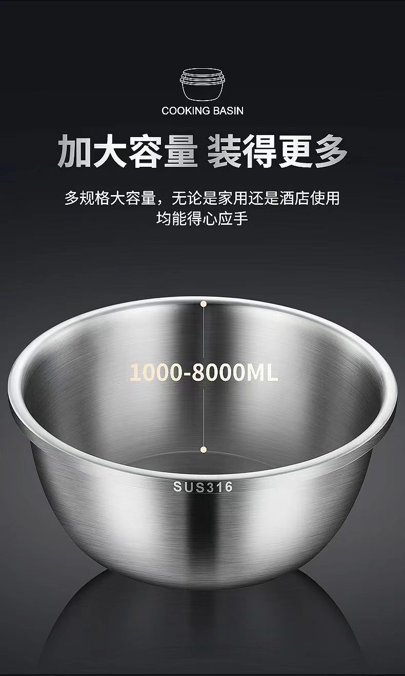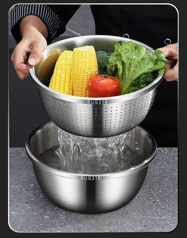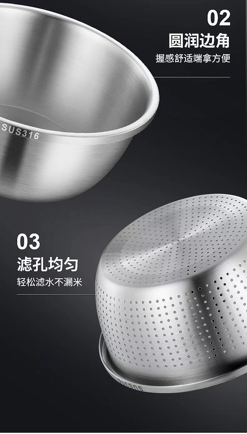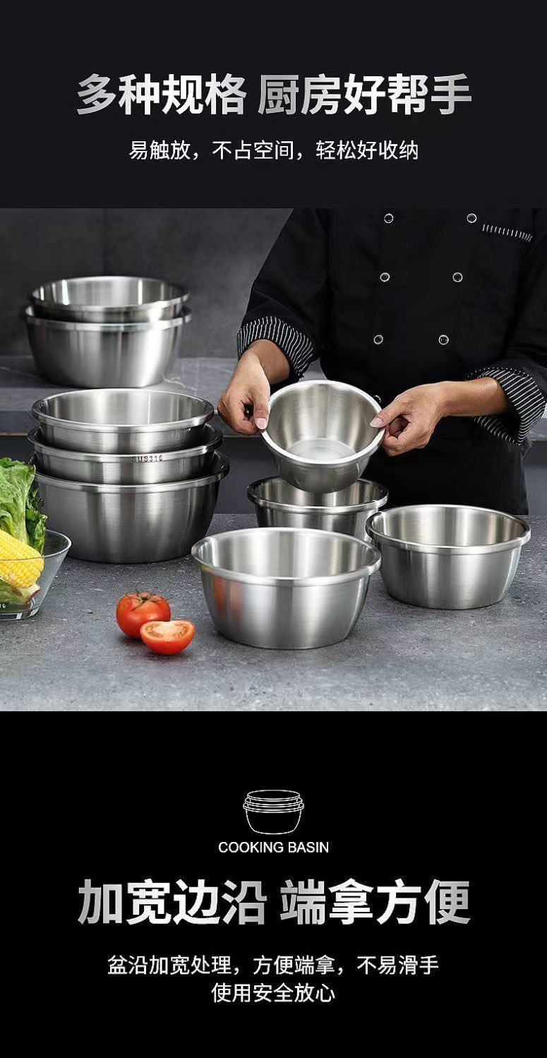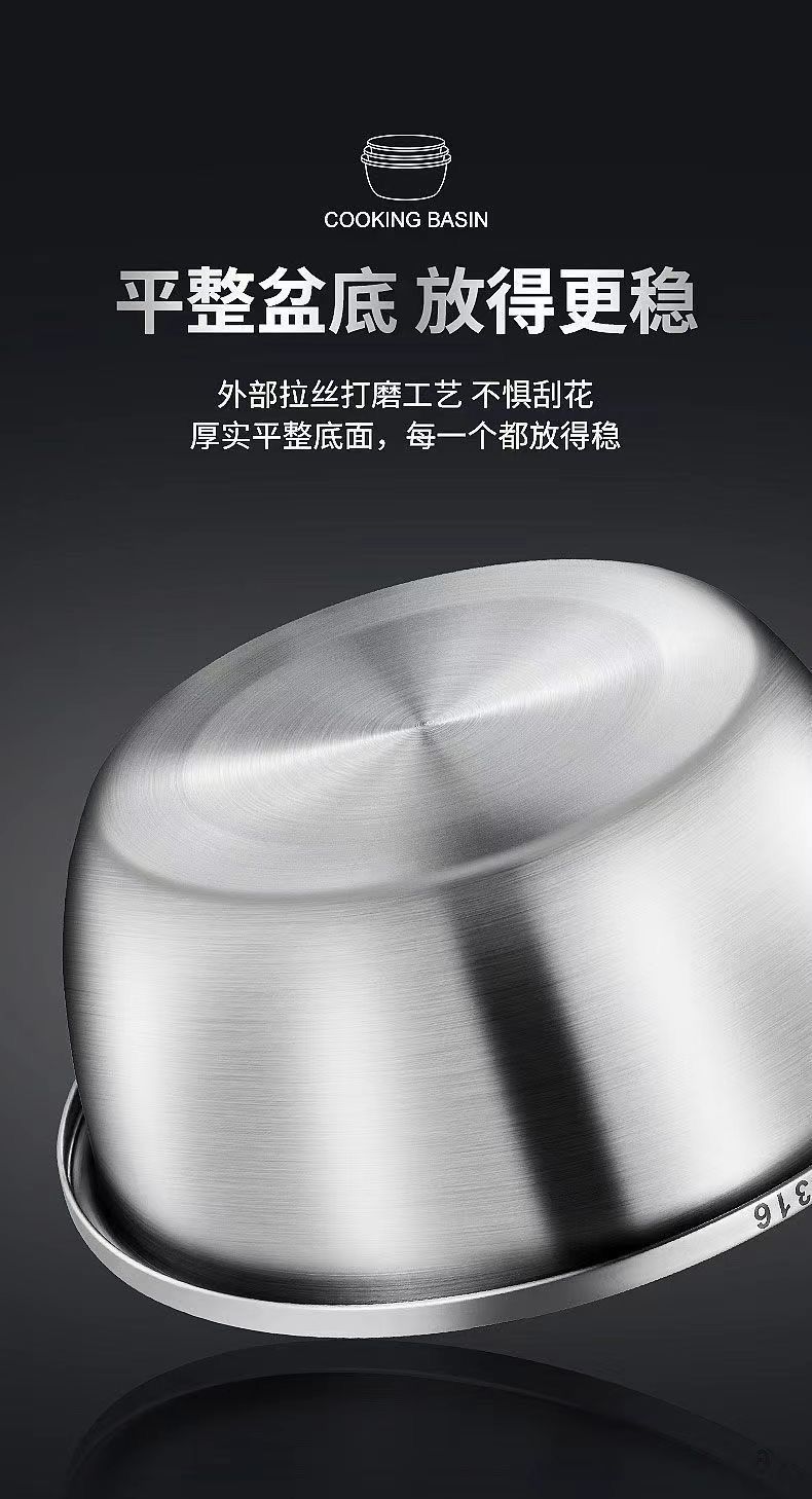 독일 식품 등급 316 스테인레스 스틸 분지 세트 야채 세척 분지 가정용 오일 분지 주방 계란 구타 및 국수 요리 수프 분지