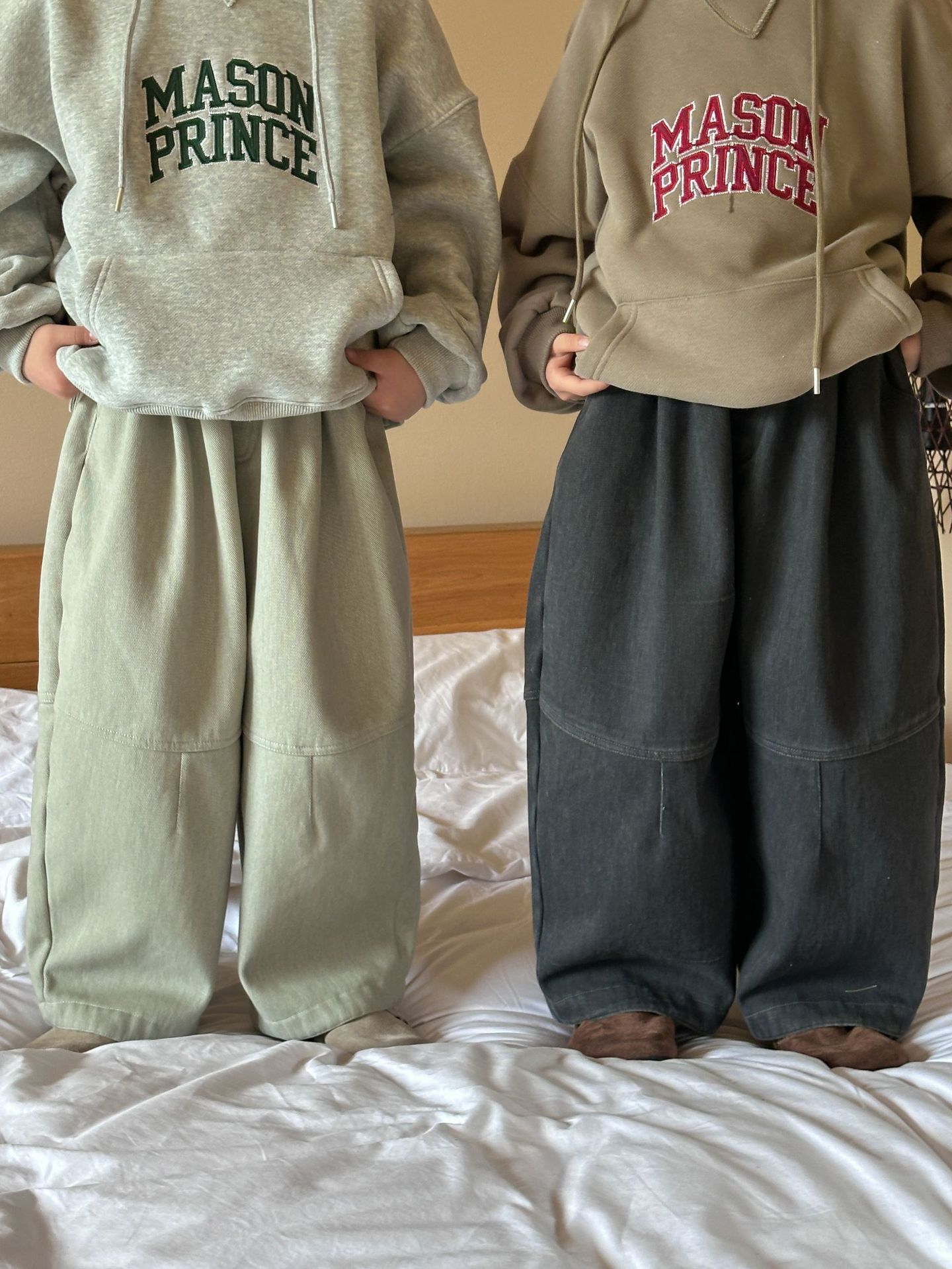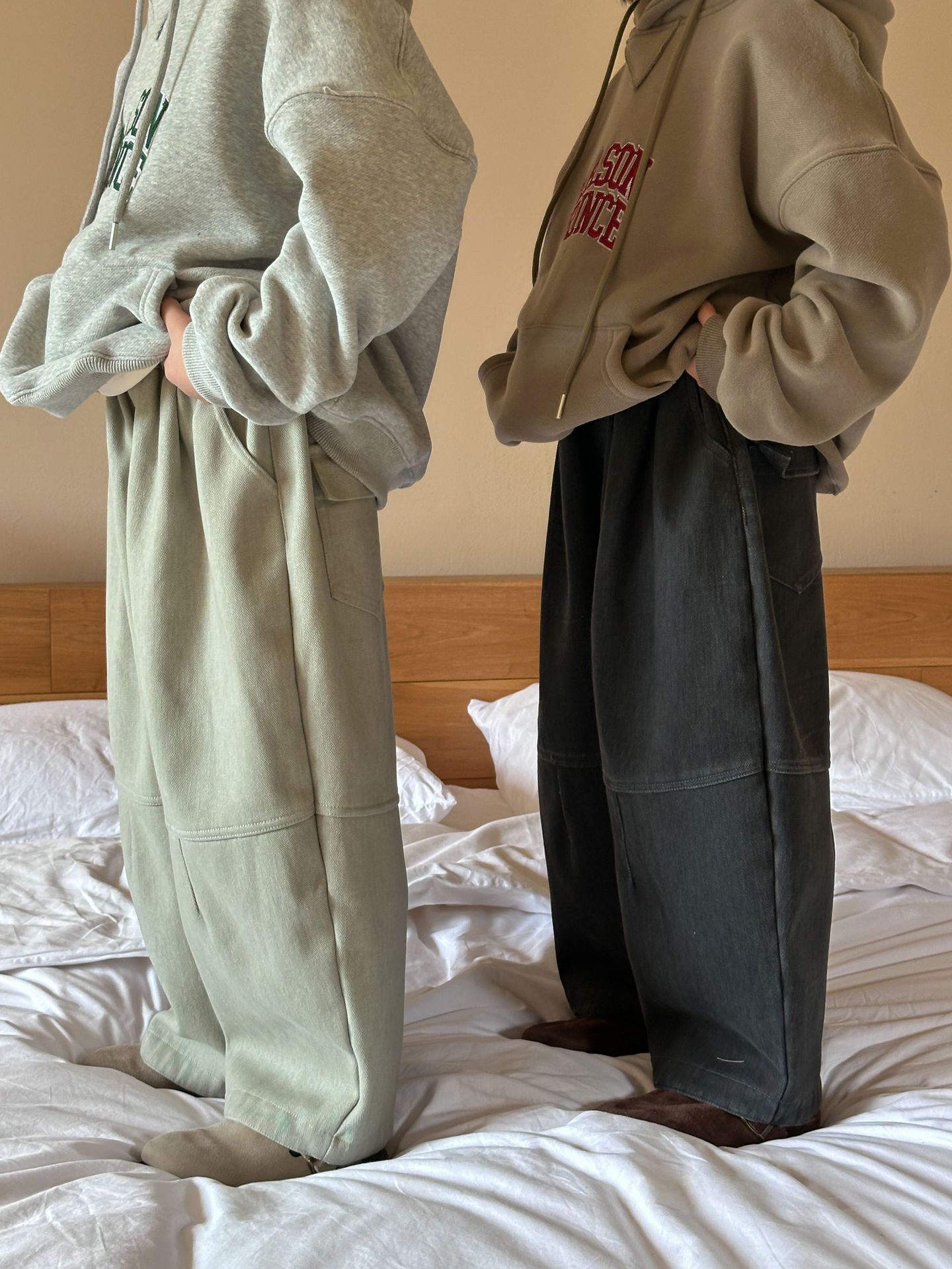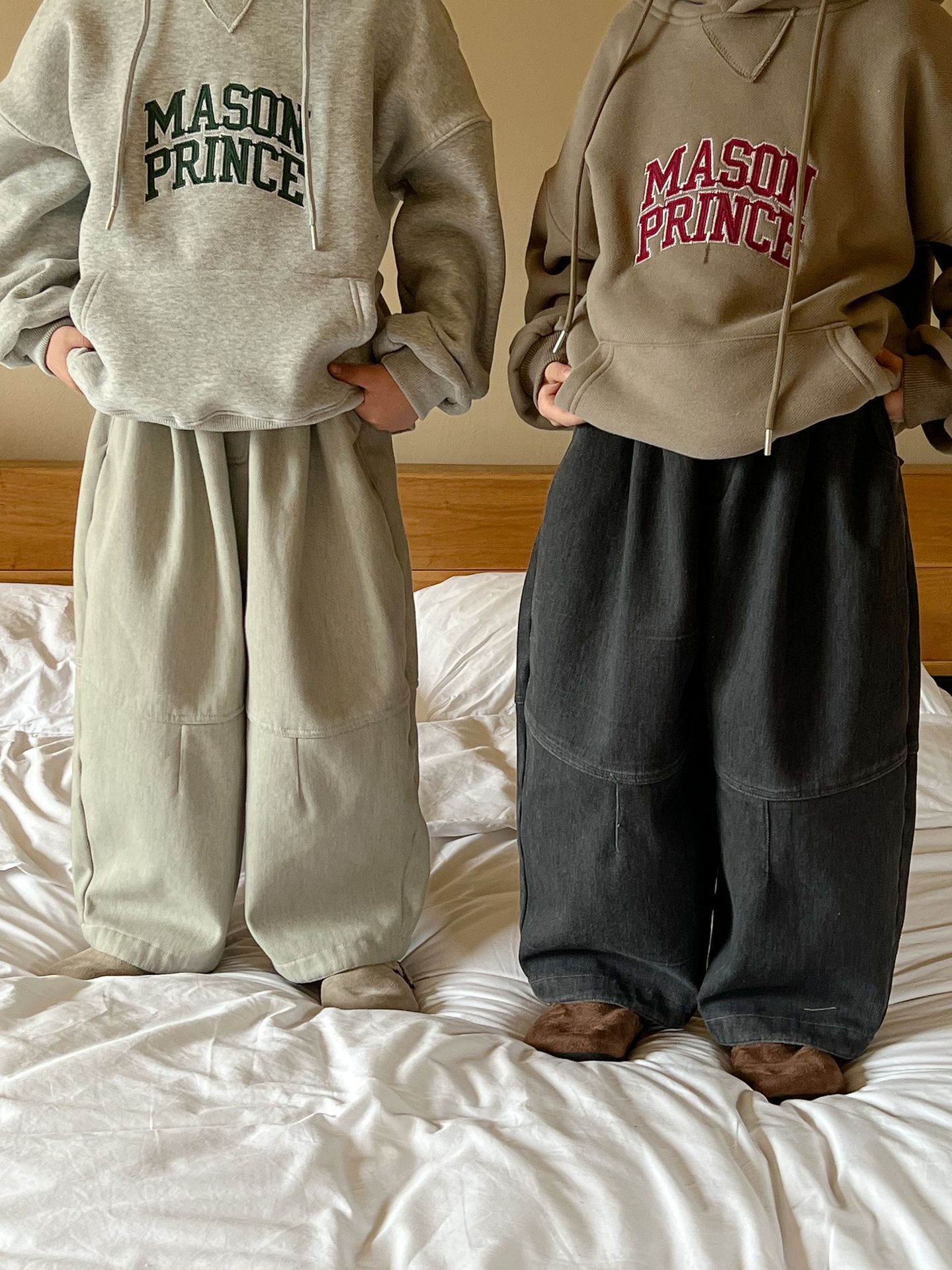 [특가 클리어런스] 겨울 신상 아동용 플리스 배색 캐주얼 팬츠 남녀공용 다용도 루즈핏 따뜻한 긴바지