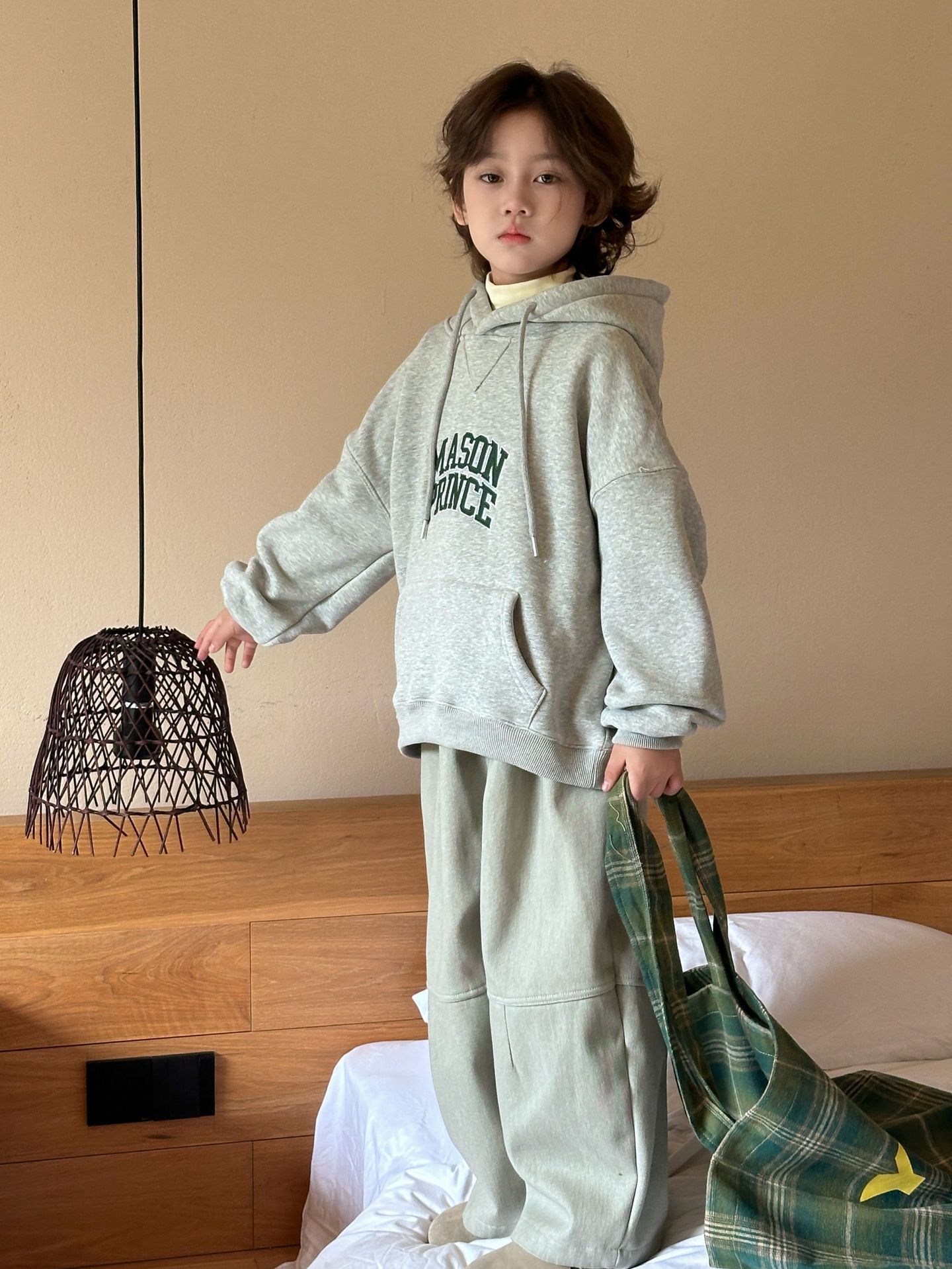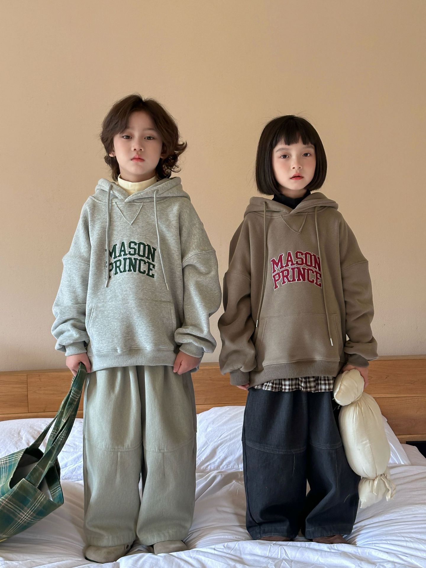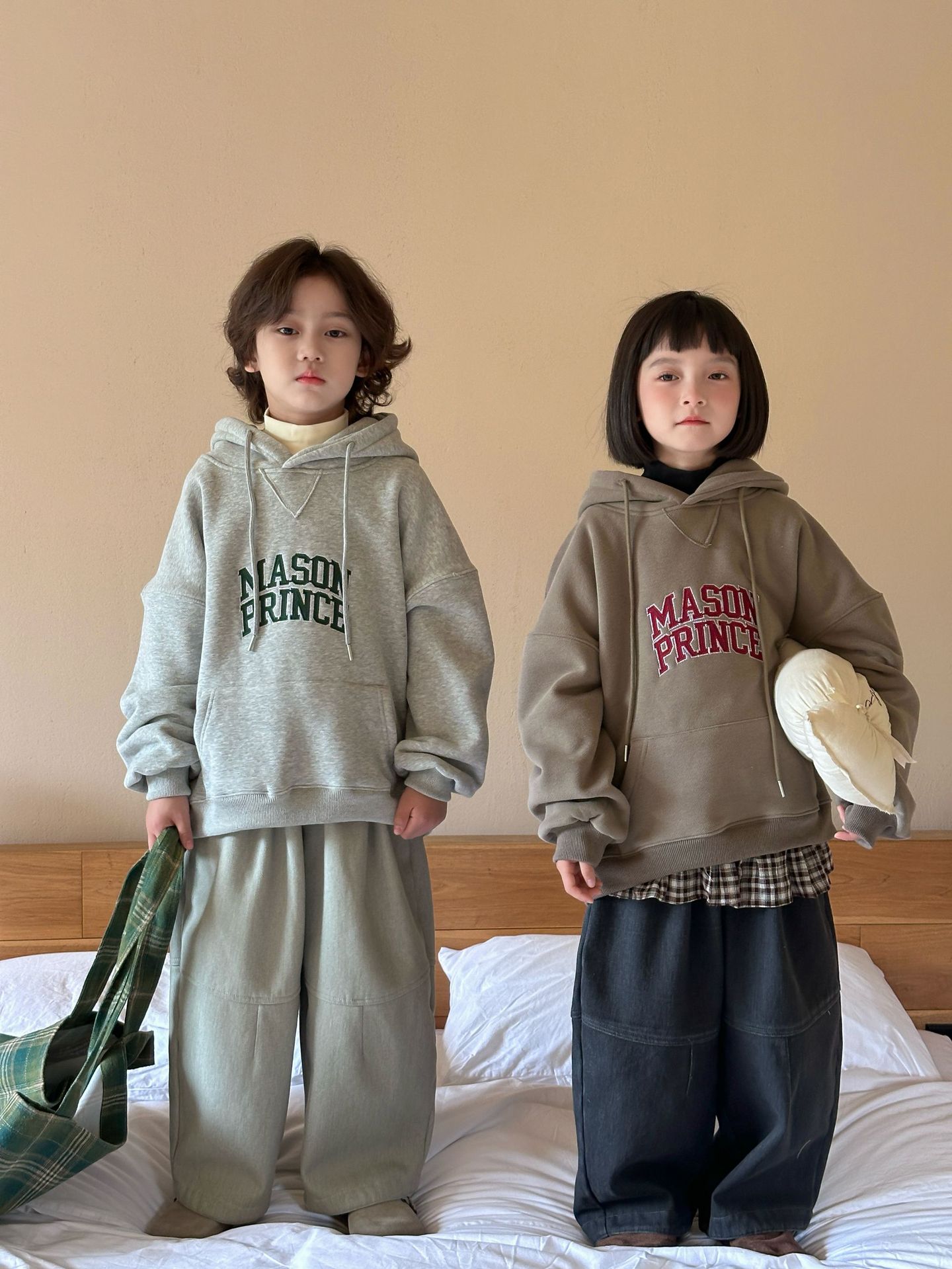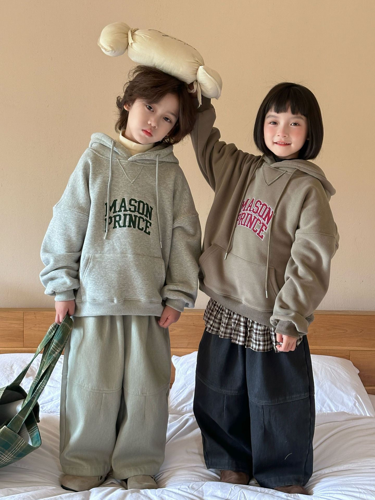 [특가 클리어런스] 겨울 신상 아동용 플리스 배색 캐주얼 팬츠 남녀공용 다용도 루즈핏 따뜻한 긴바지