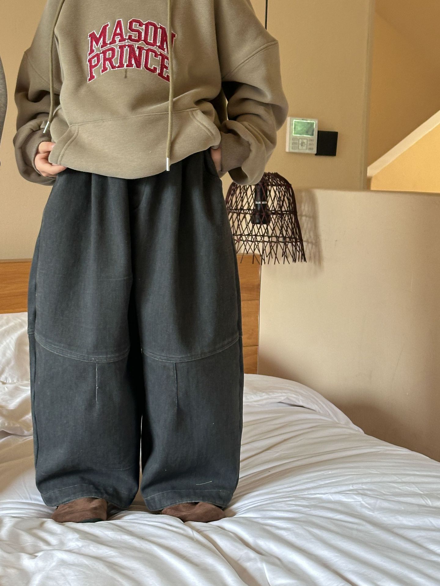 [특가 클리어런스] 겨울 신상 아동용 플리스 배색 캐주얼 팬츠 남녀공용 다용도 루즈핏 따뜻한 긴바지스토어 가기