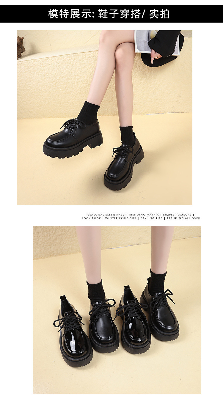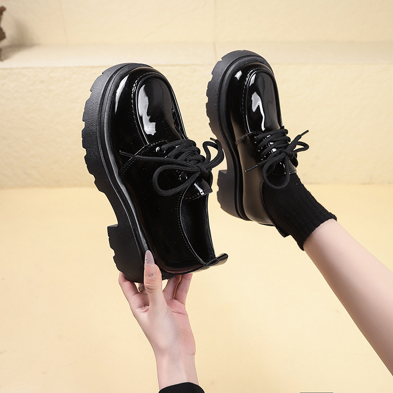 두꺼운 밑창 강화 레이스 업 작은 가죽 신발 여성의 2024 가을 새로운 학술 스타일 유니폼 싱글 레이어 신발 올 매치 패션 로퍼