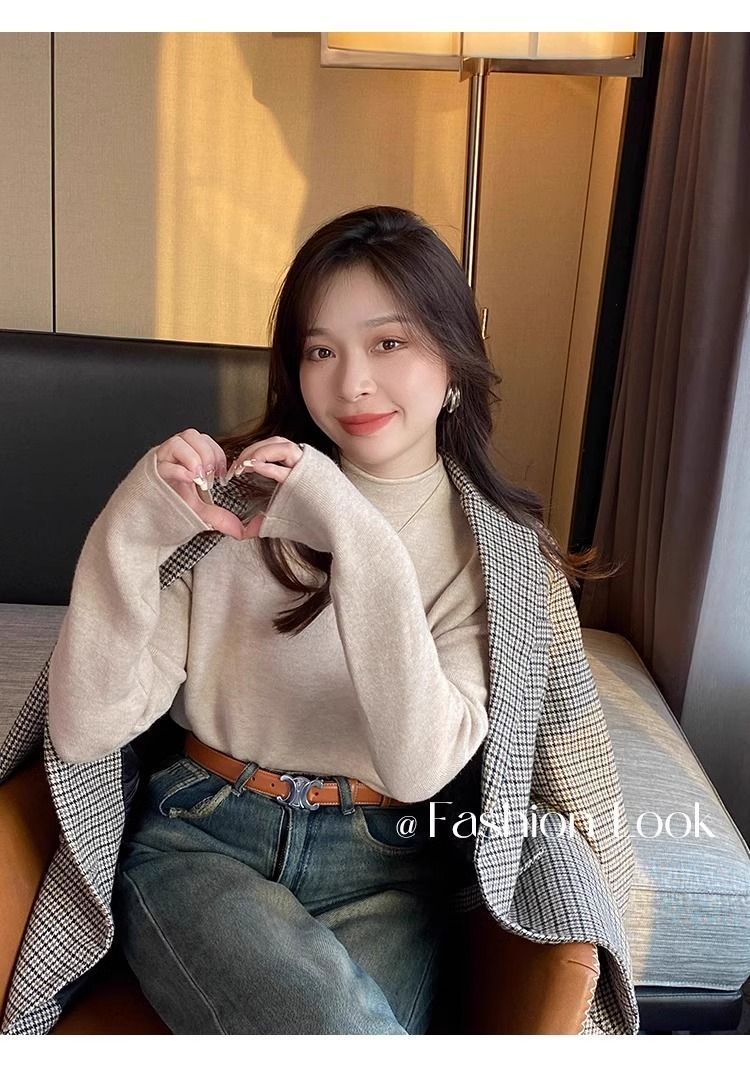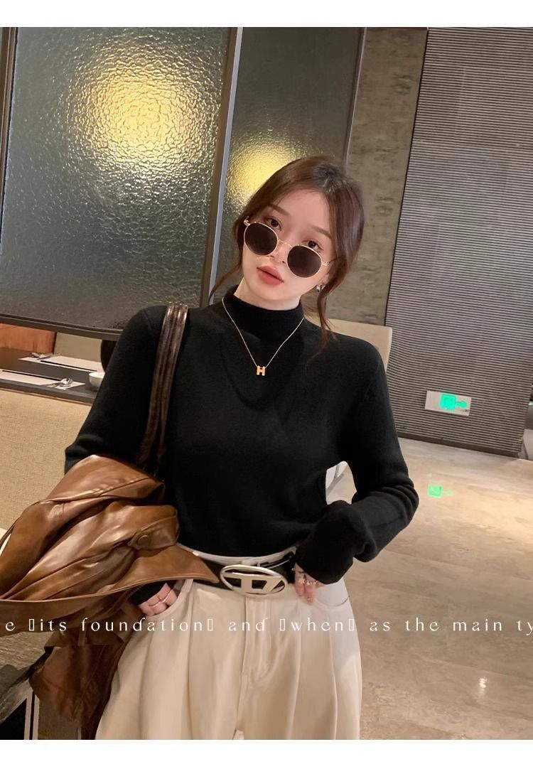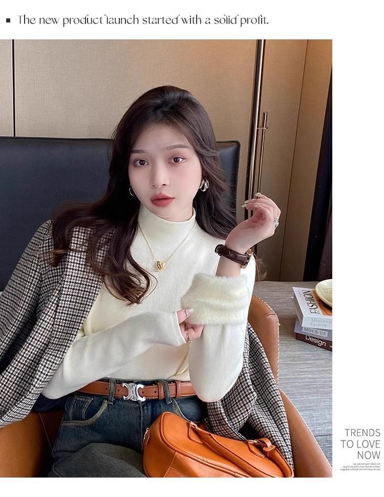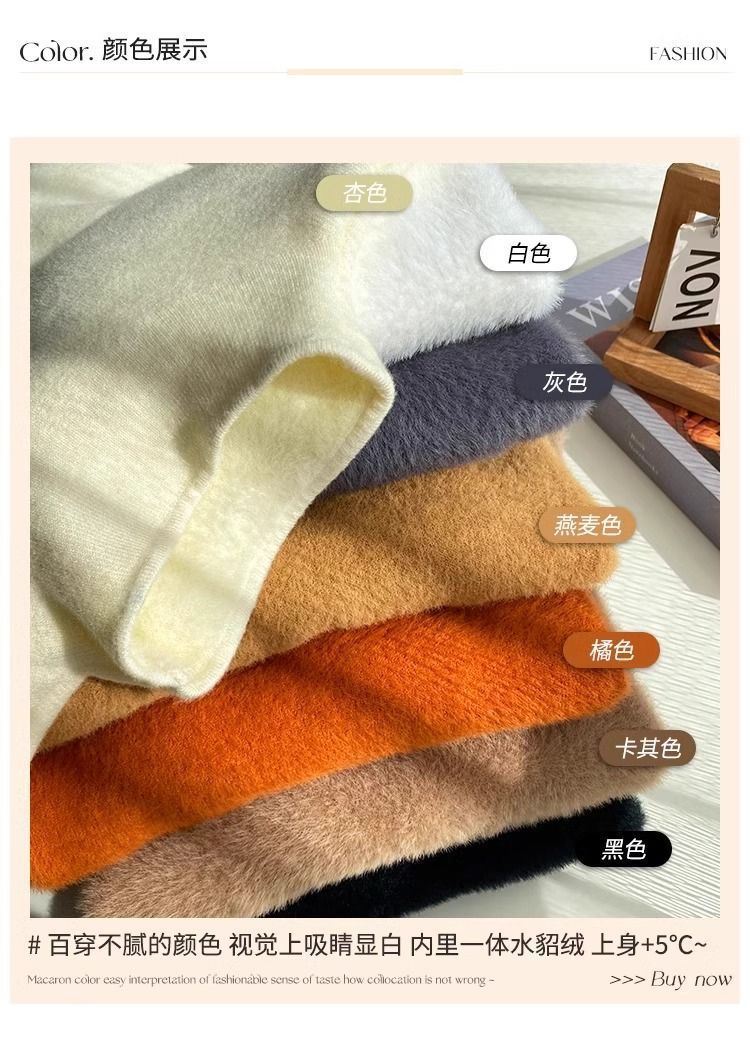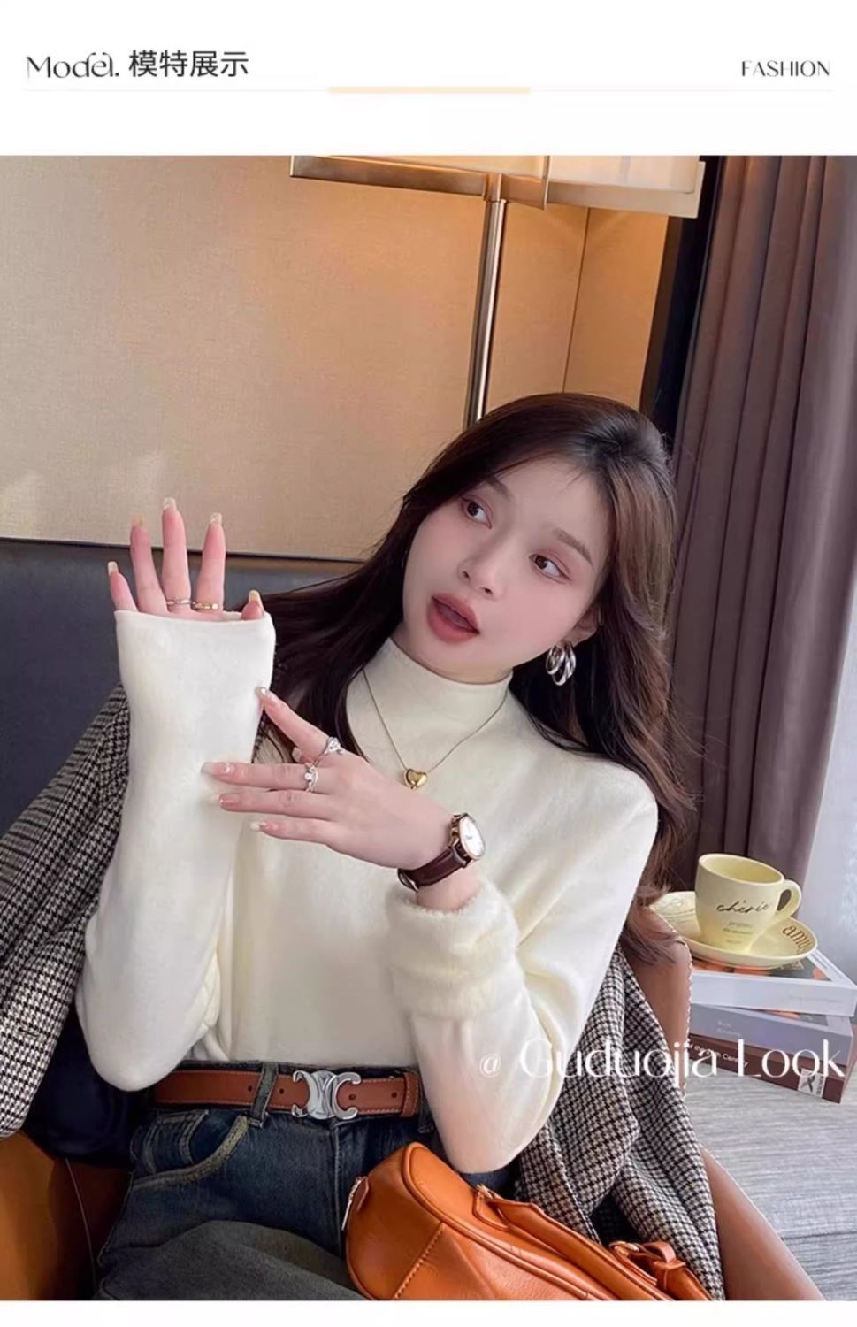 아시 미 가을과 겨울 반 터틀넥 원피스 밍크 벨벳 기모 두꺼운 스웨터 여성 올 매치 따뜻한 솔리드 컬러베이스 셔츠스토어 가기