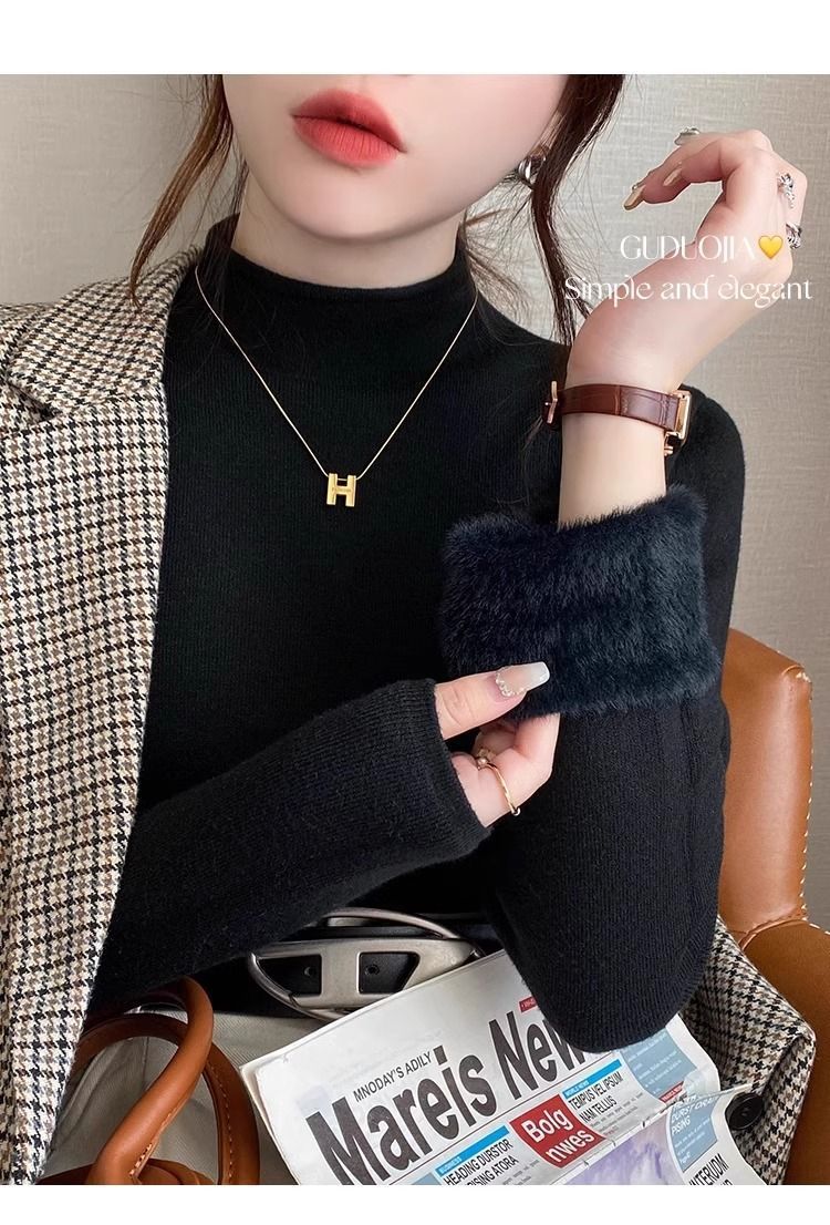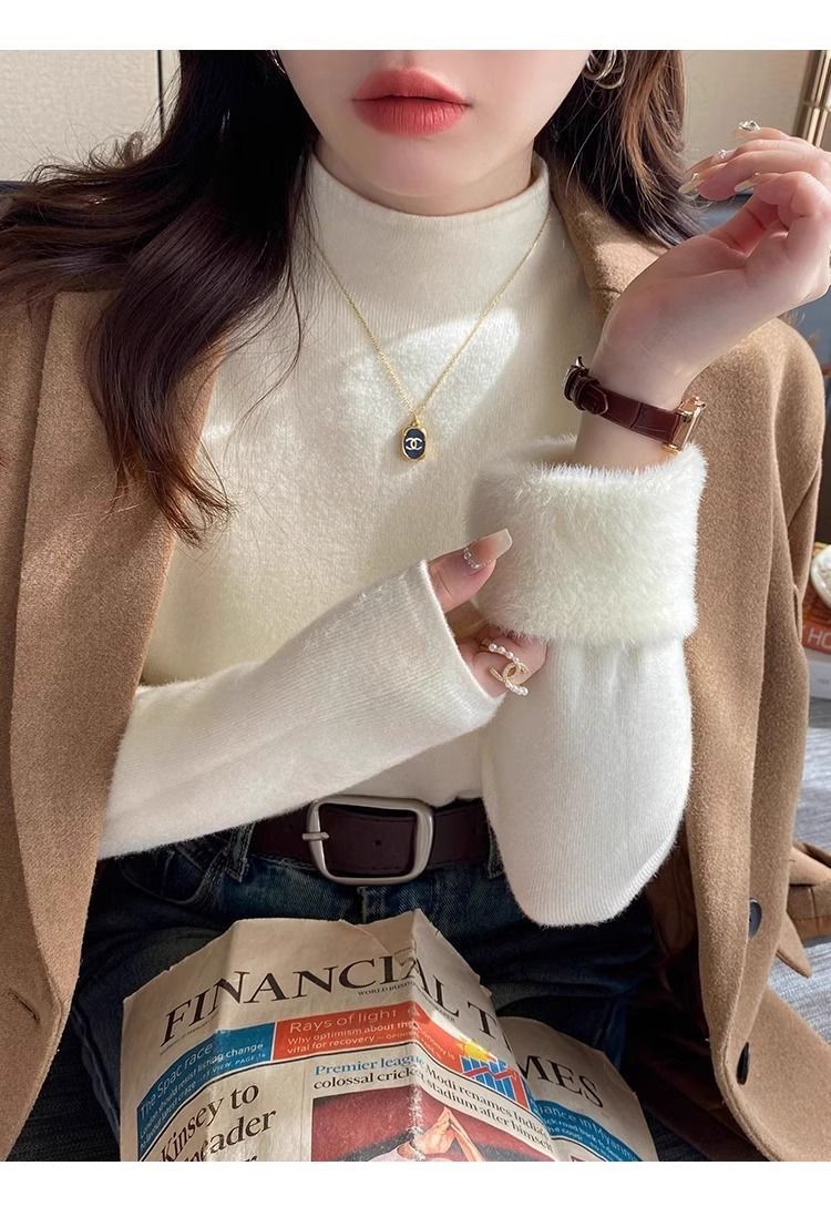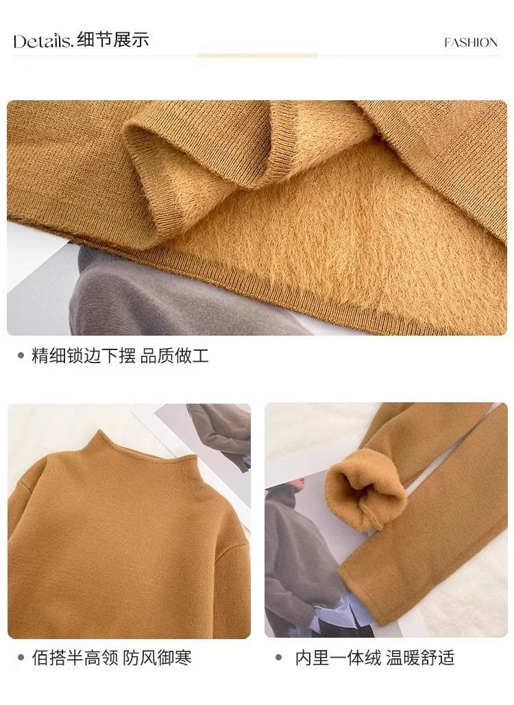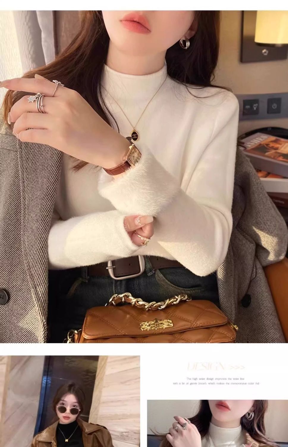 아시 미 가을과 겨울 반 터틀넥 원피스 밍크 벨벳 기모 두꺼운 스웨터 여성 올 매치 따뜻한 솔리드 컬러베이스 셔츠