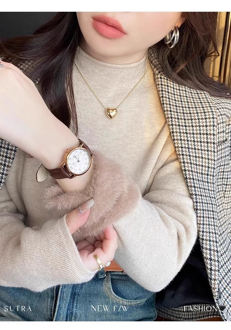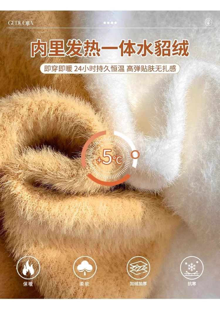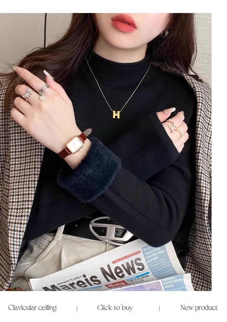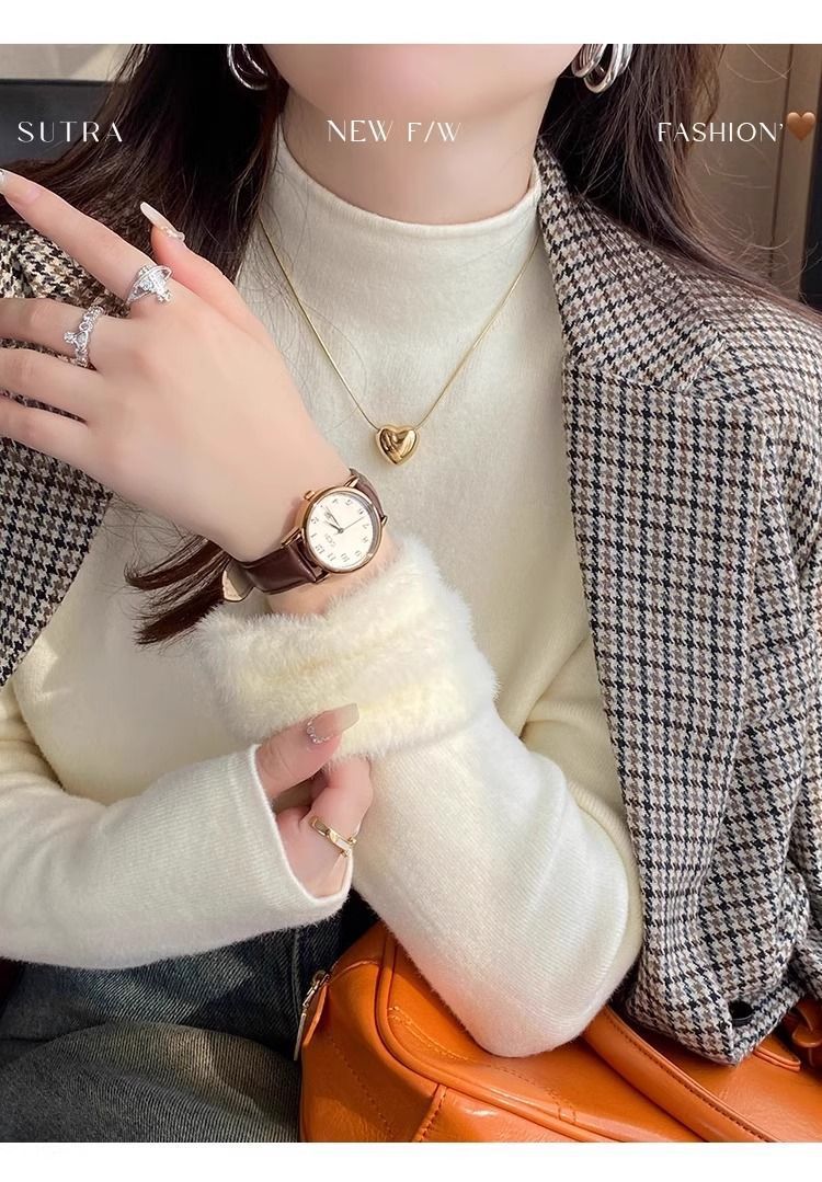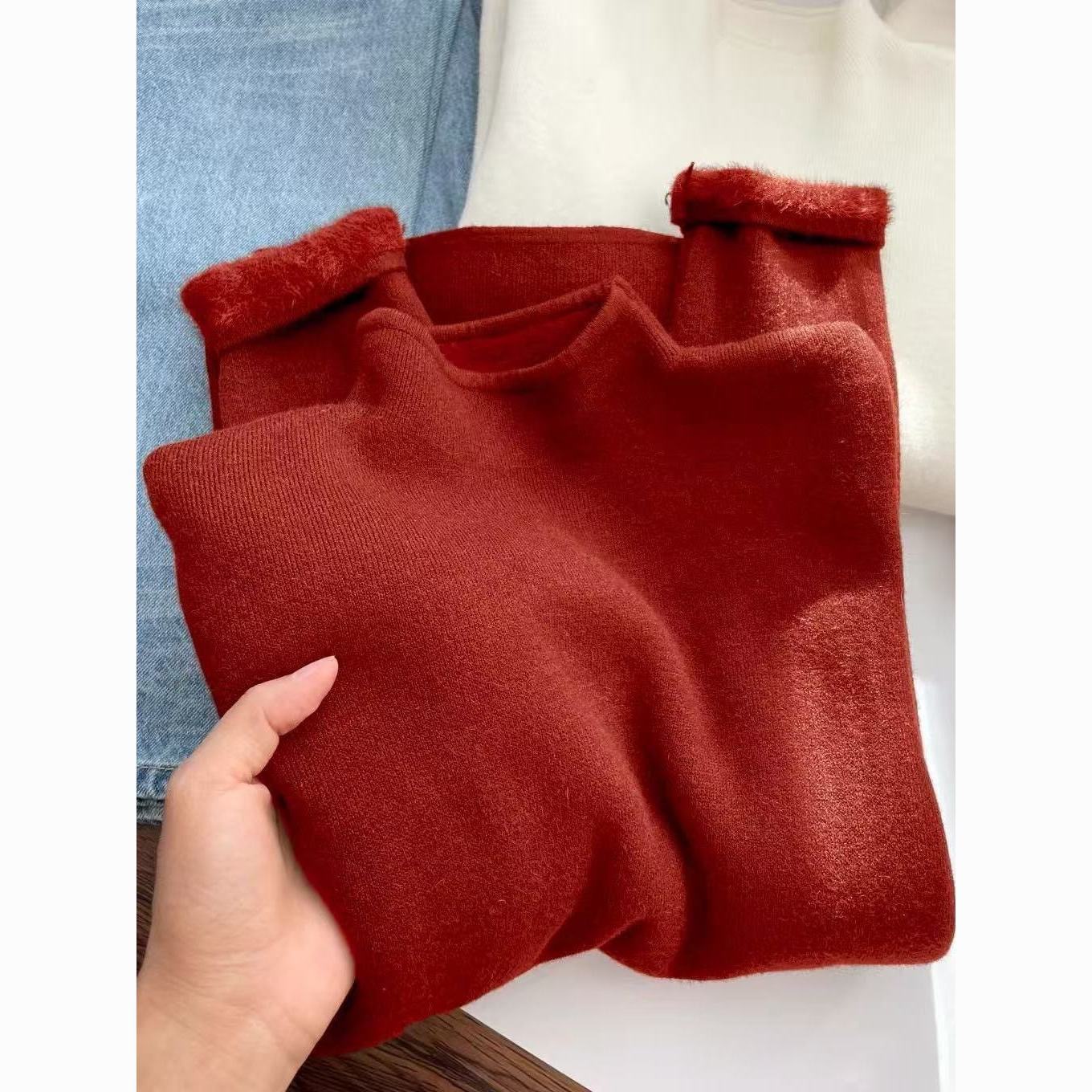 아시 미 가을과 겨울 반 터틀넥 원피스 밍크 벨벳 기모 두꺼운 스웨터 여성 올 매치 따뜻한 솔리드 컬러베이스 셔츠