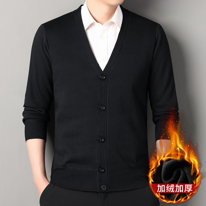 니트 가디건 남성용 2025 가을 겨울 신상품 플러스 벨벳 두꺼운 캐주얼 다용도 브이넥 트렌디 브랜드 남성용 자켓스토어 가기