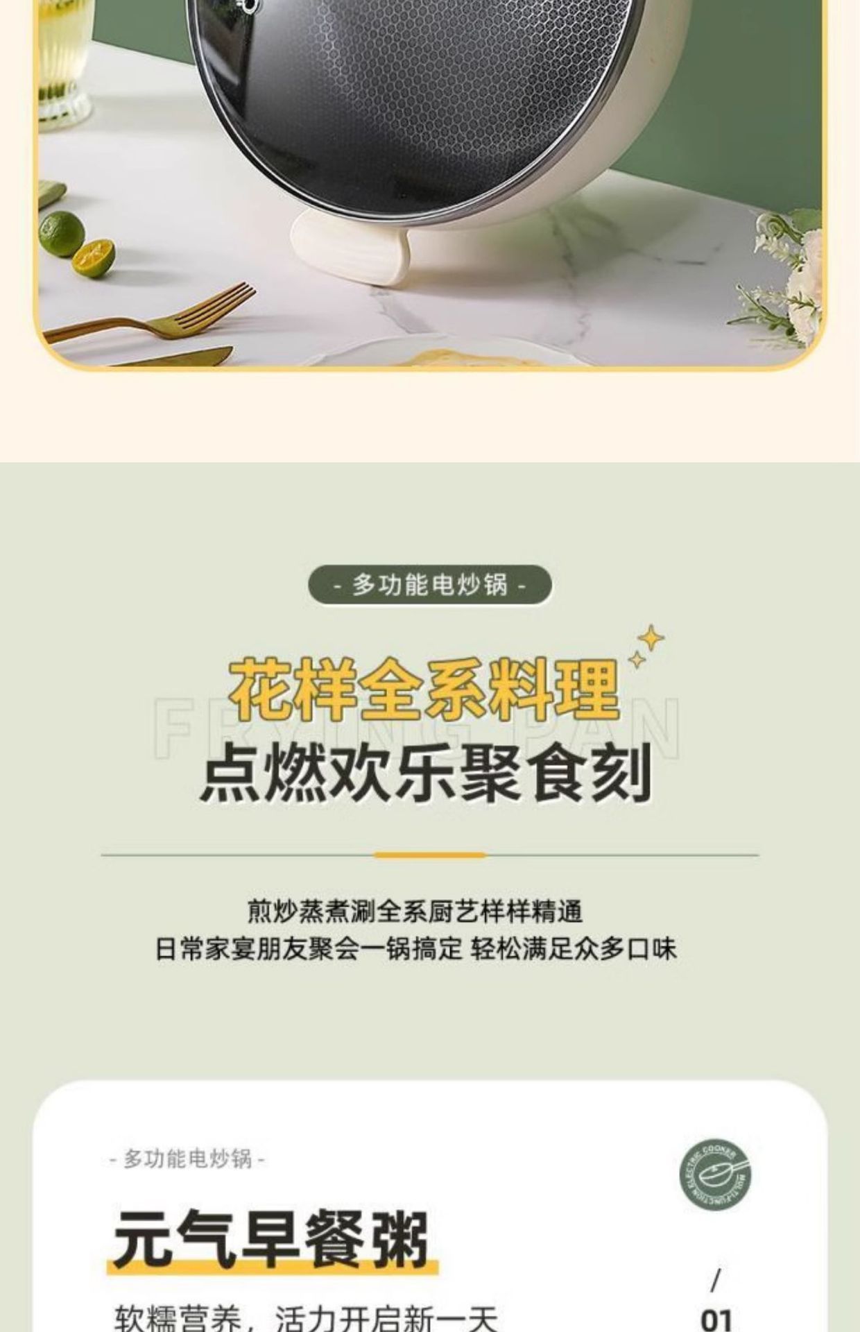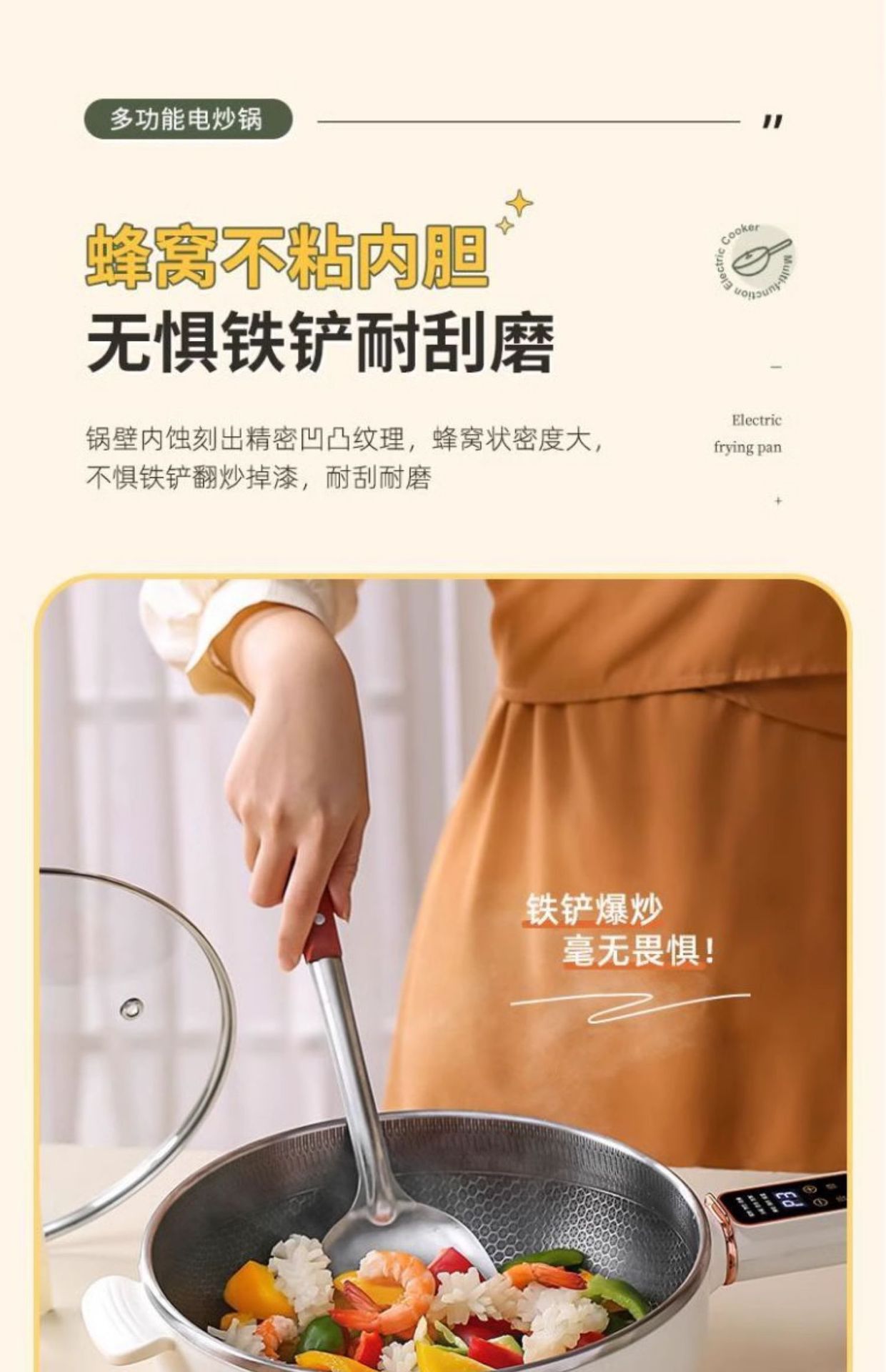 전기 볶음 팬 다기능 통합 전기 냄비 찜 및 튀긴 가정용 벌집 비 스틱 냄비 전기 뜨거운 냄비 이중 사용