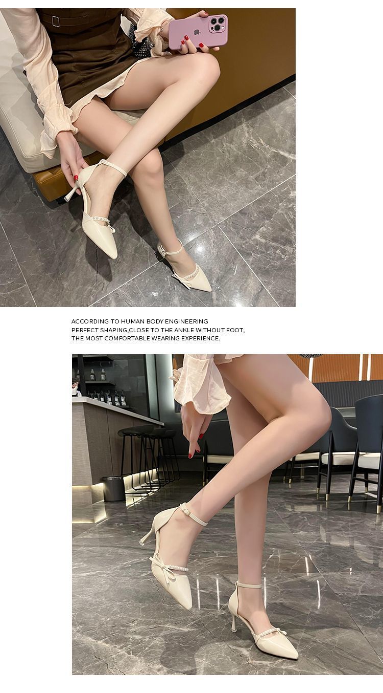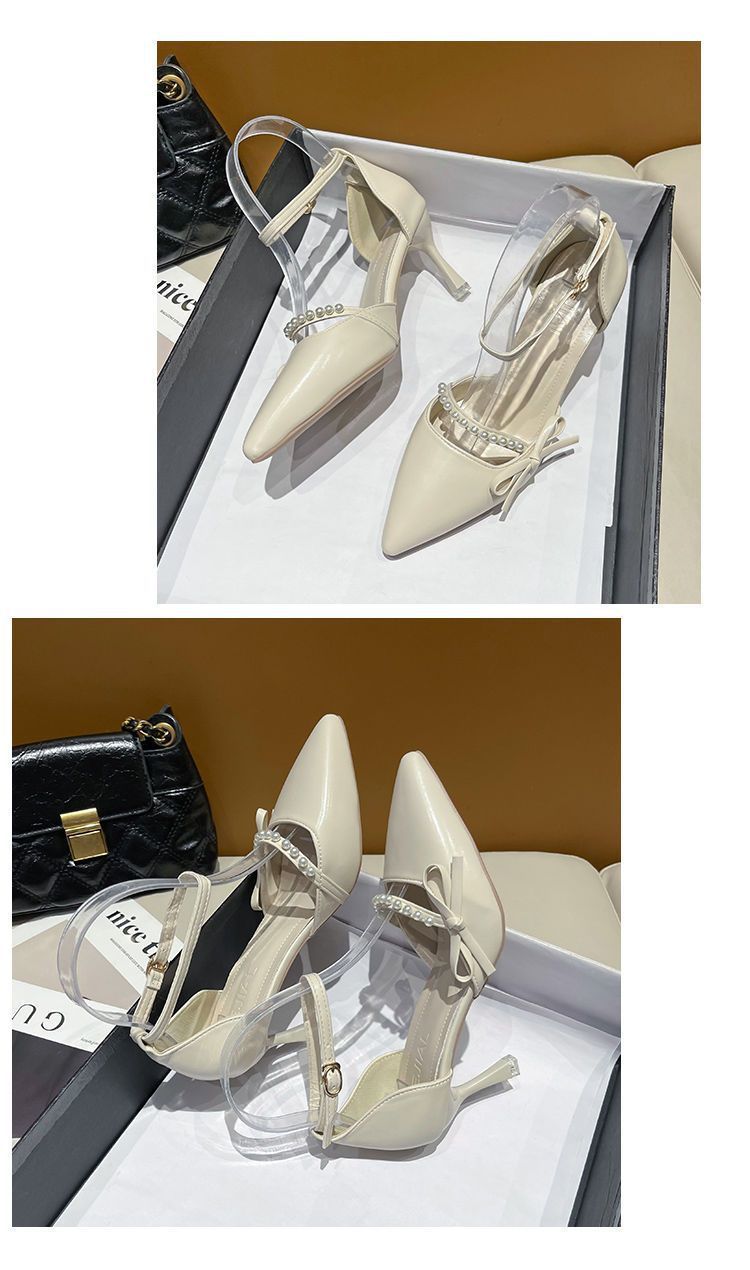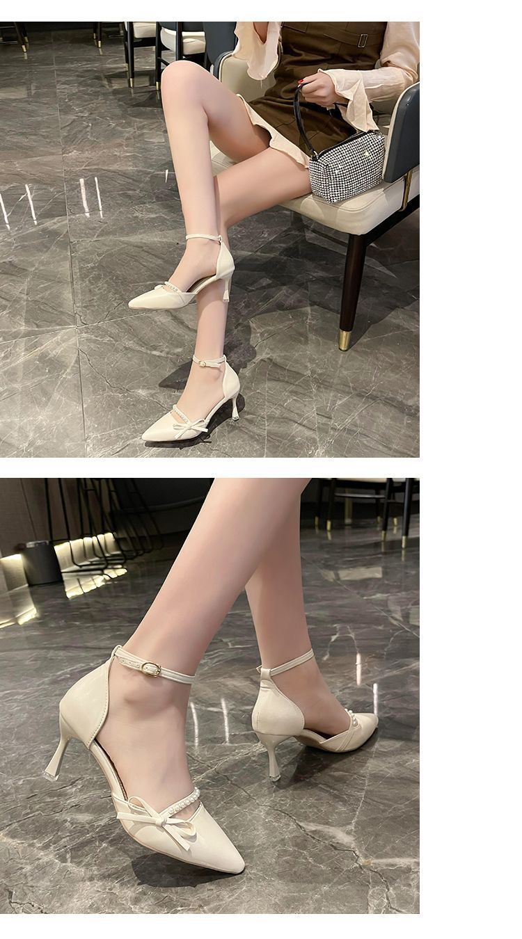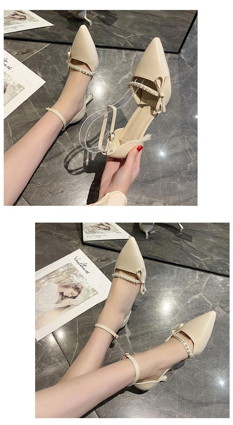 중공 뾰족한 발가락 2024 여름 새로운 프랑스 스타일 진주 발가락 샌들 스커트 하이힐스토어 가기