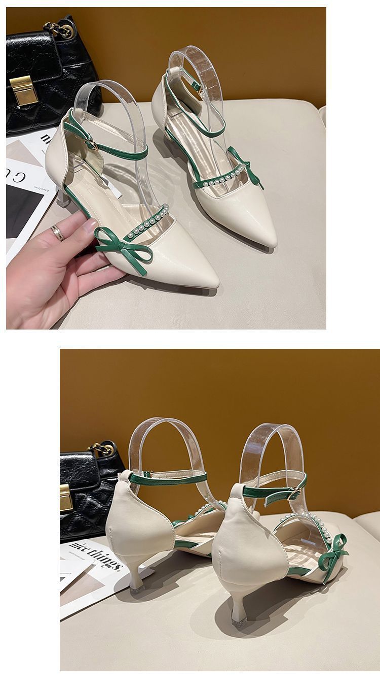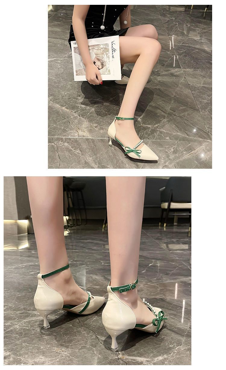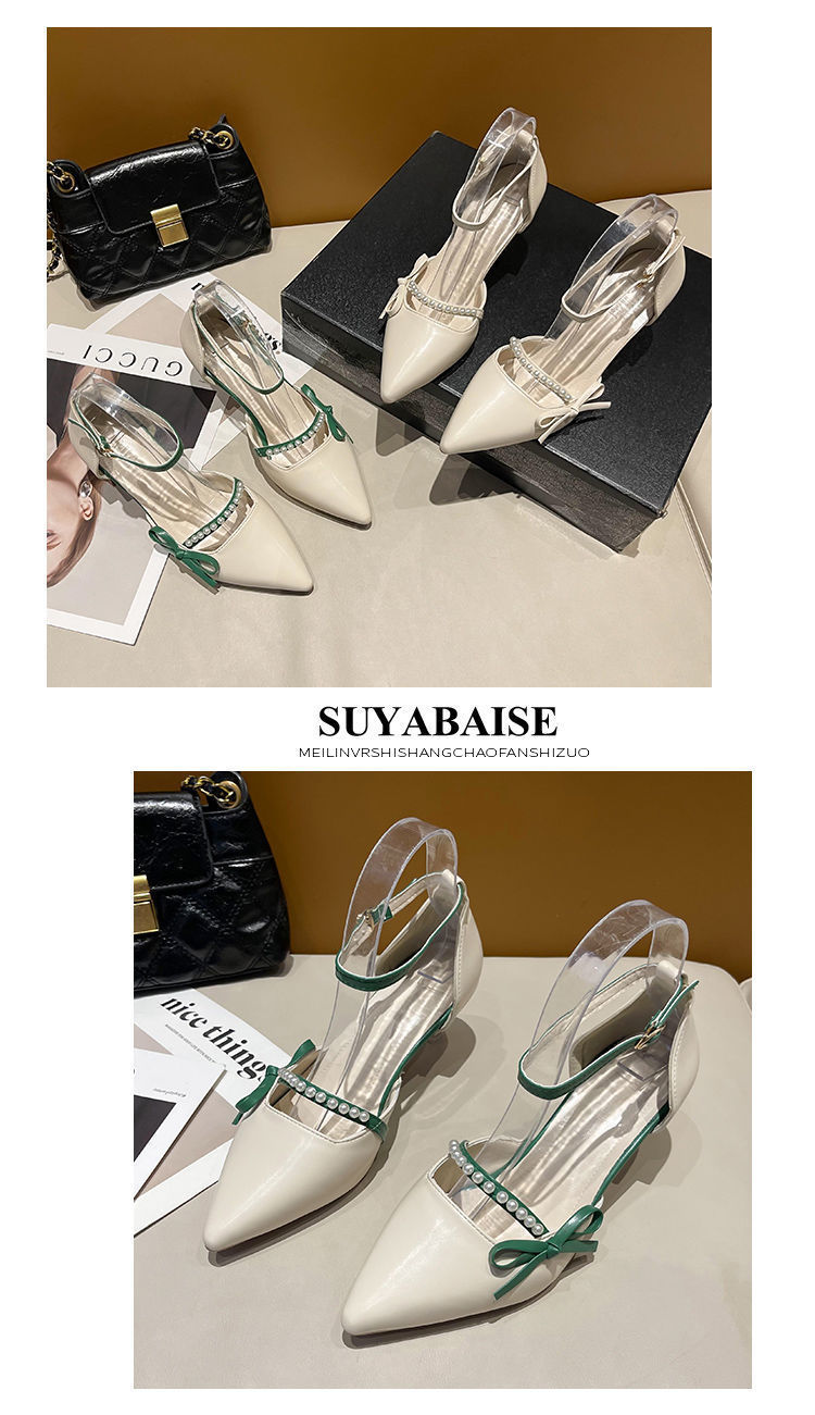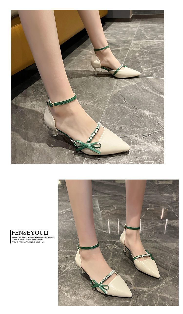 중공 뾰족한 발가락 2024 여름 새로운 프랑스 스타일 진주 발가락 샌들 스커트 하이힐스토어 가기