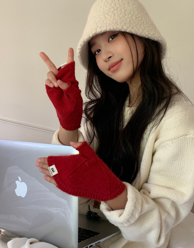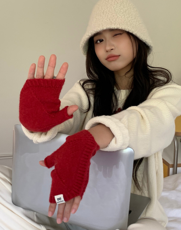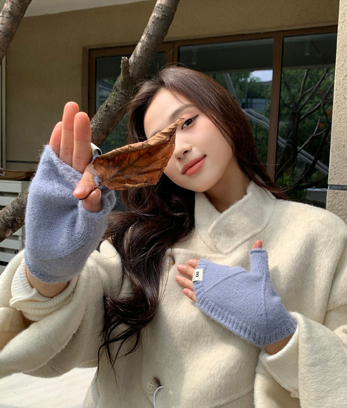 한국식 올매치 가을 · 겨울 양모 장갑 여성 반쪽 손가락 따뜻한 팔 니트 오픈 핑거 타이핑 학생 맞춤형 슬리브스토어 가기